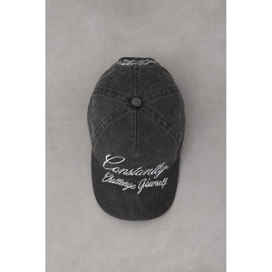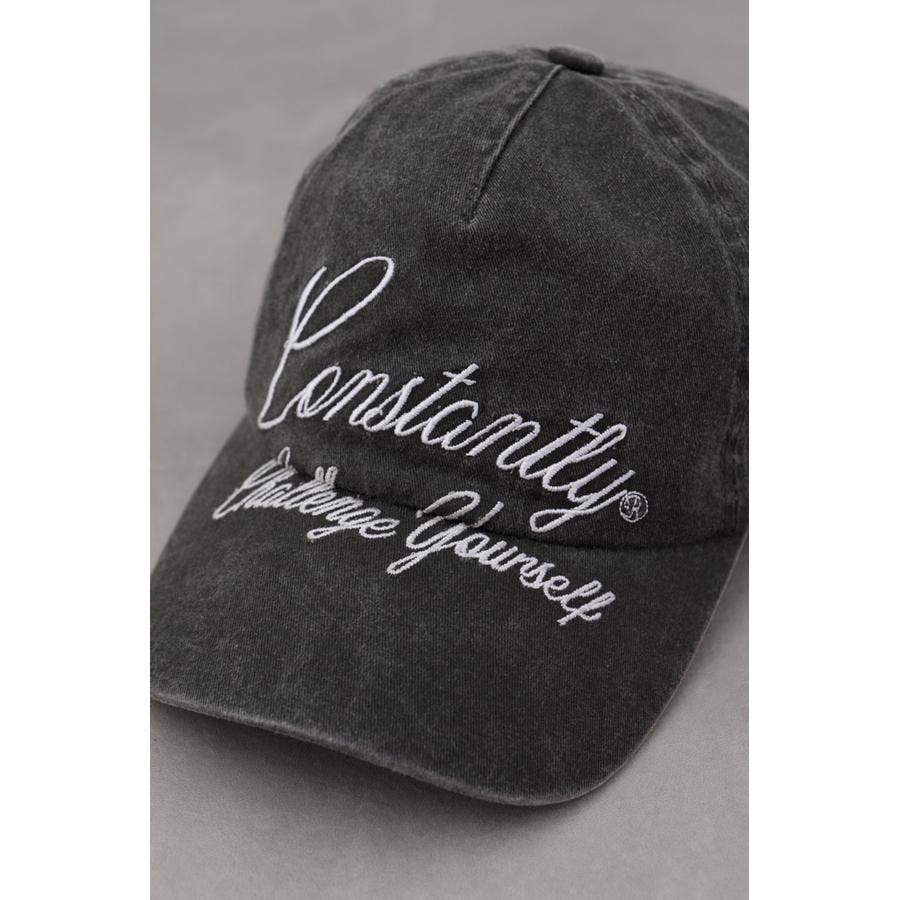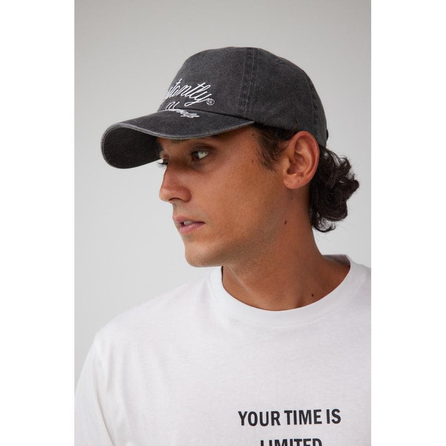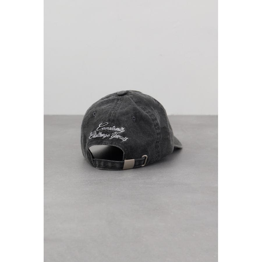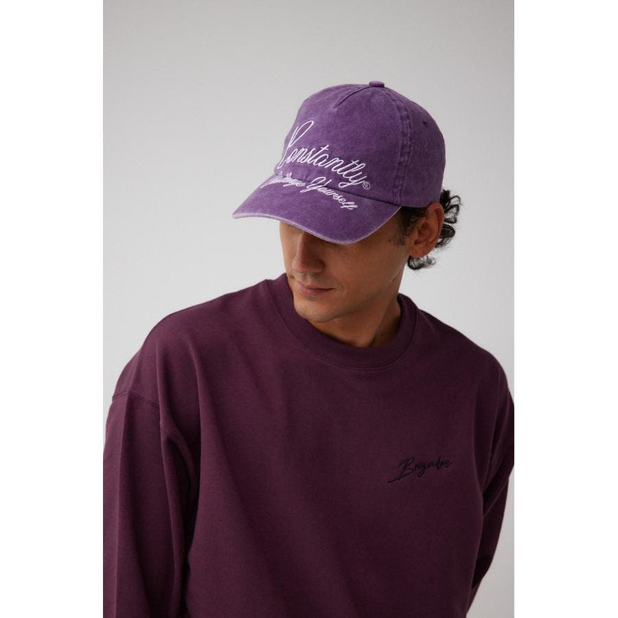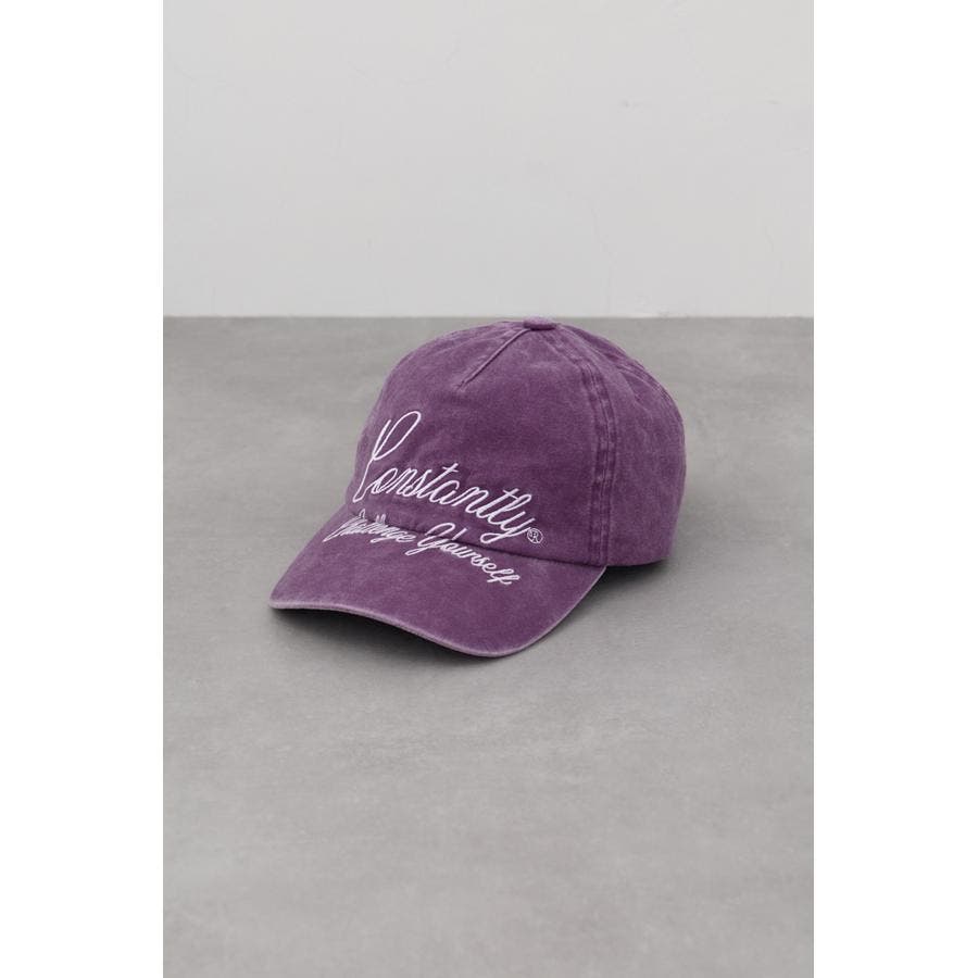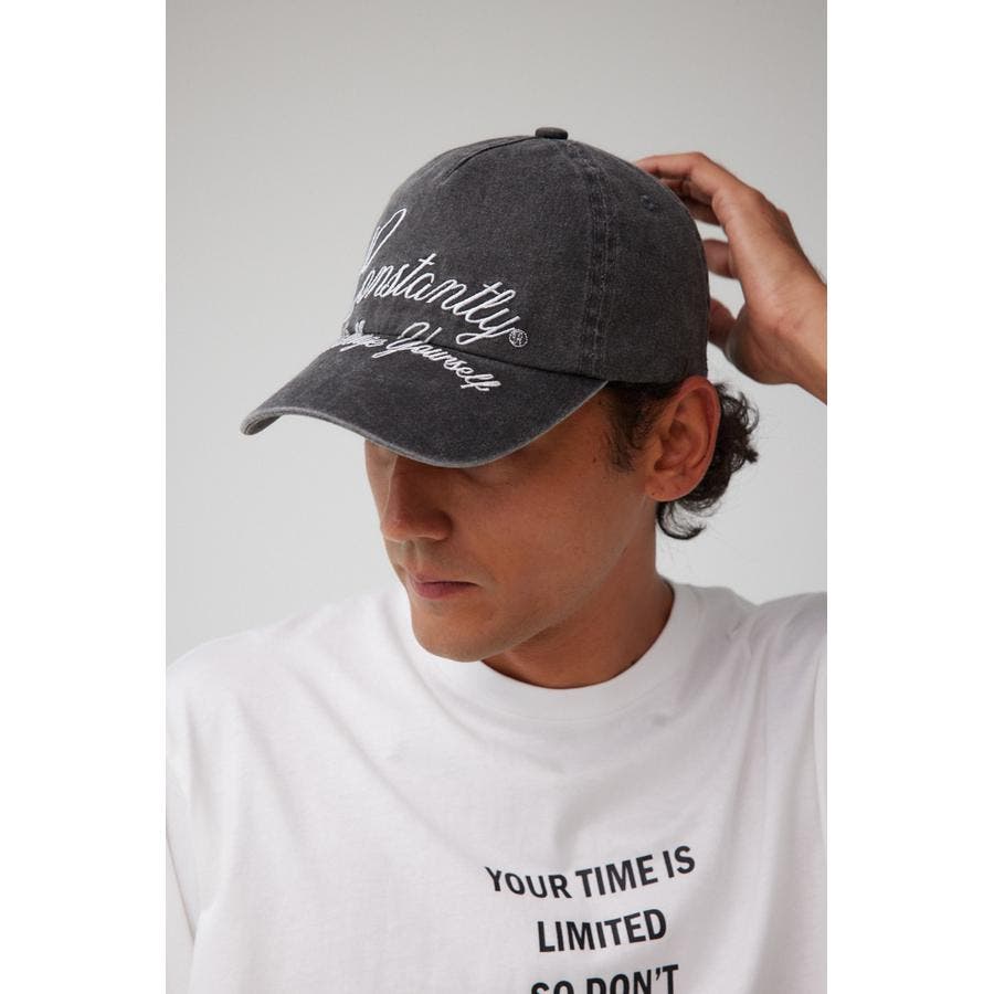 ■商品(デザイン)ポイント:ピグメント加工を施したロゴ刺繍キャップ。