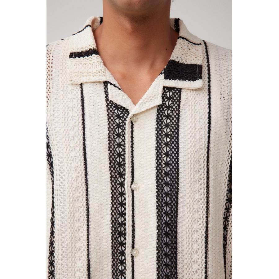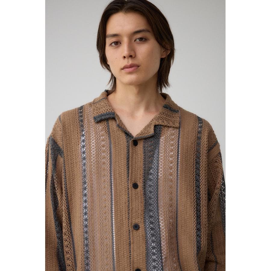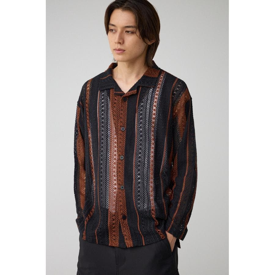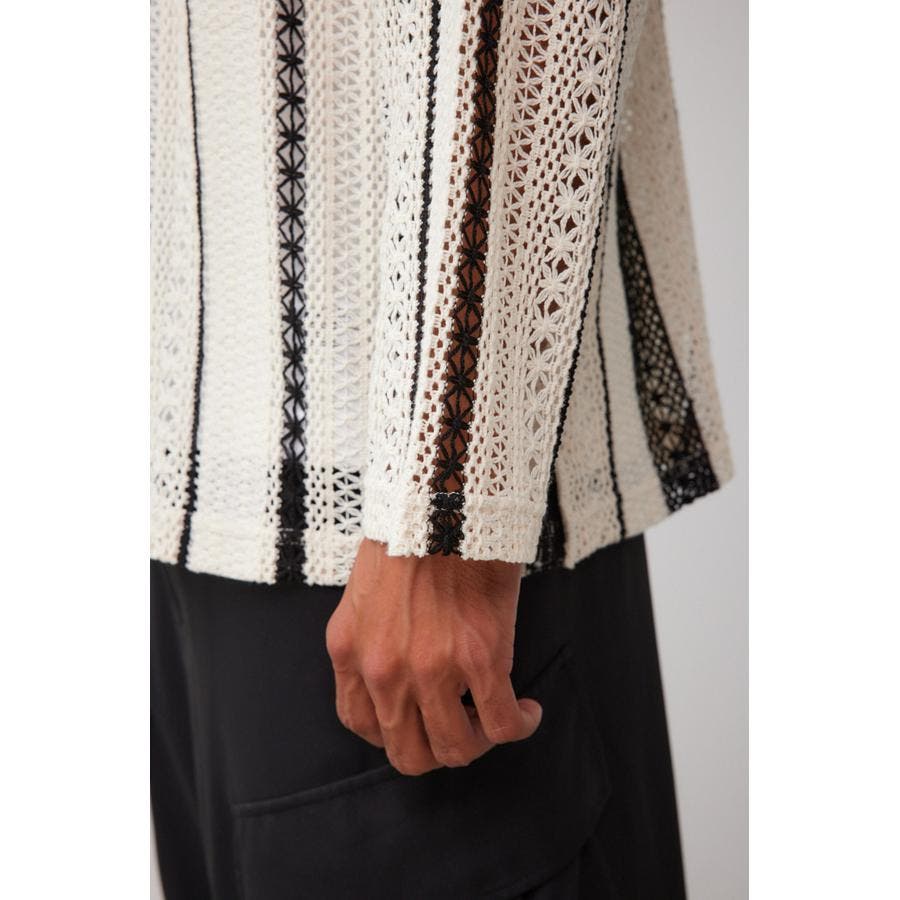 ■商品(デザイン)ポイント:複数の柄を組み合わせたレースジャガードのシャツ。