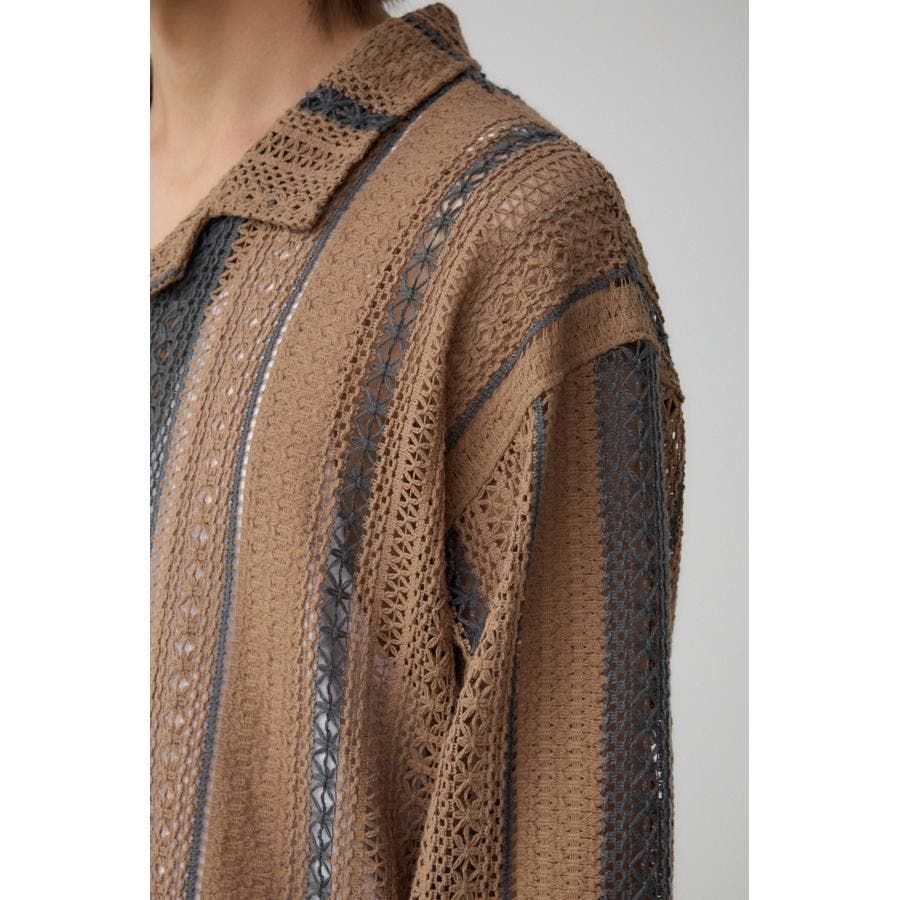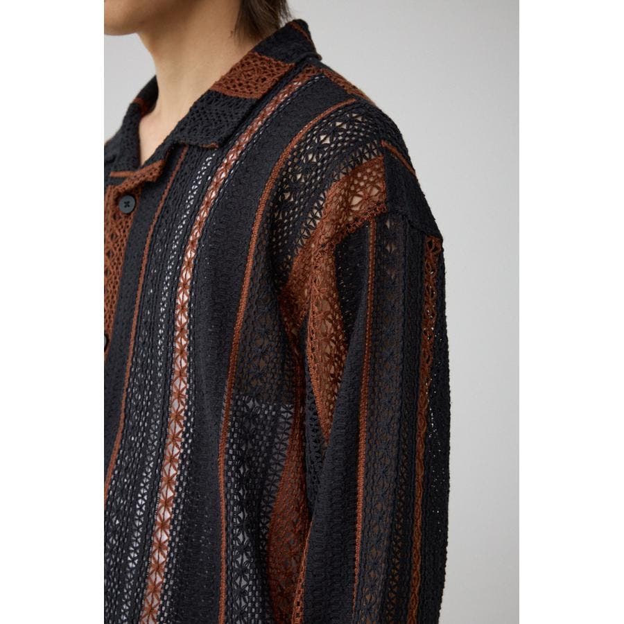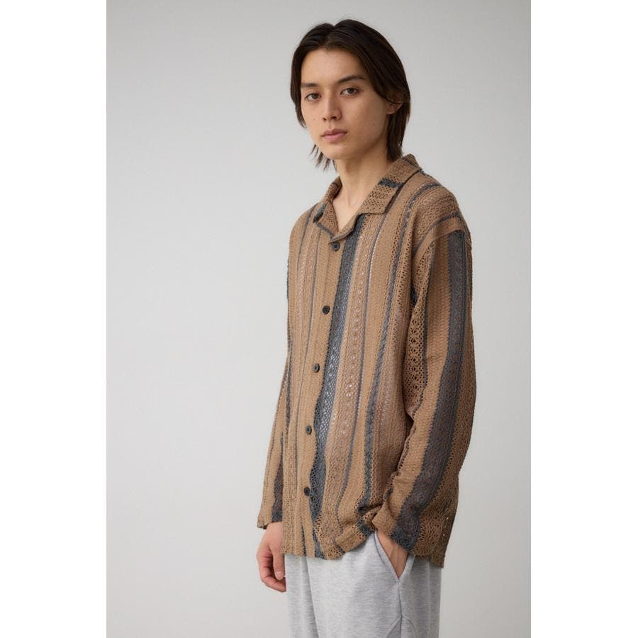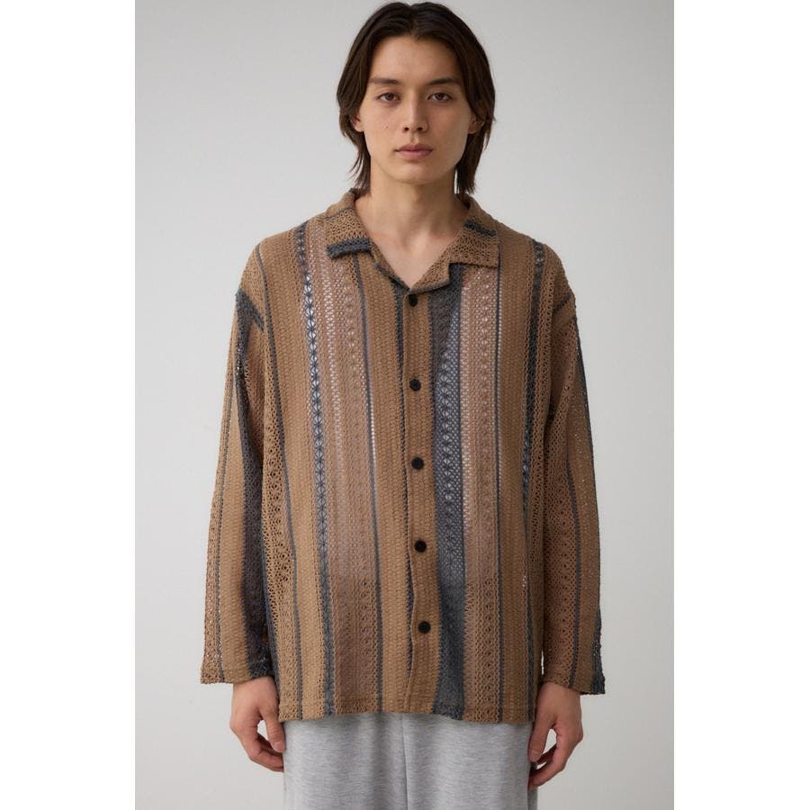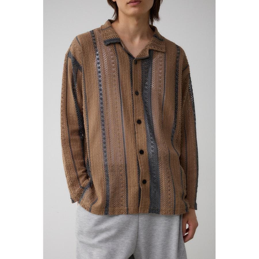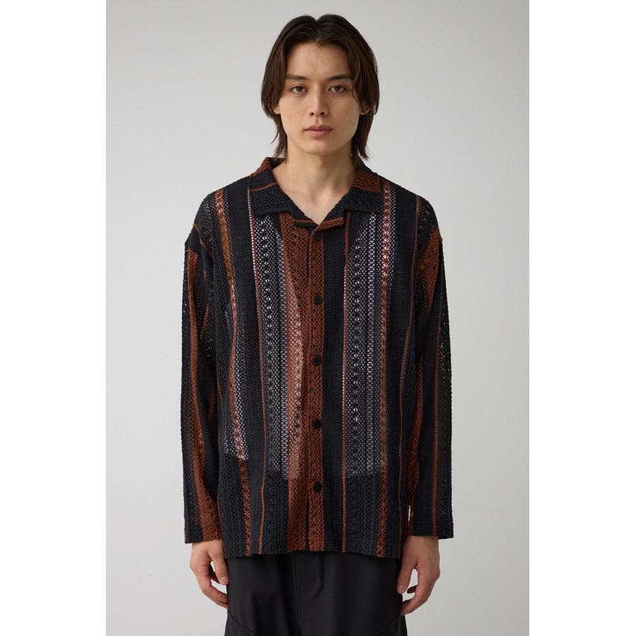 メッシュ開襟長袖シャツ