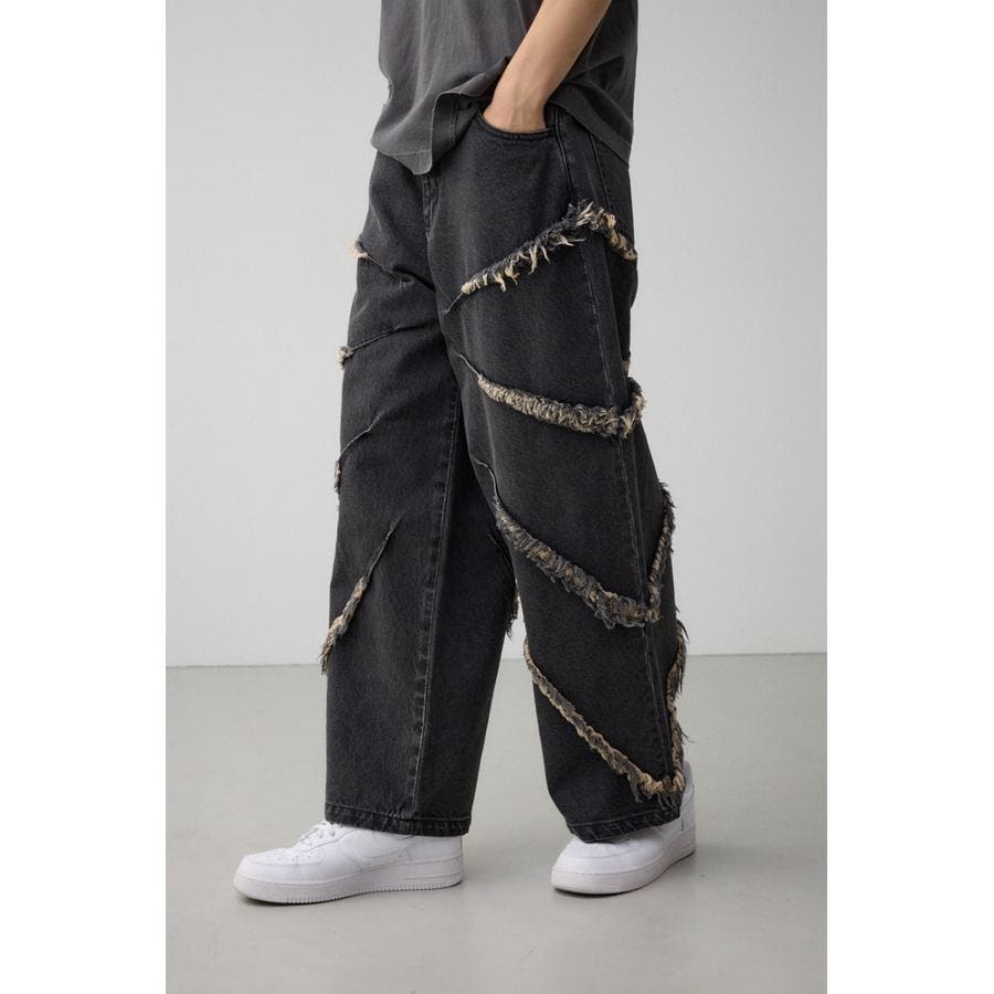 ■商品(デザイン)ポイント:トレンドのフリンジがポイントのワイドデニム。