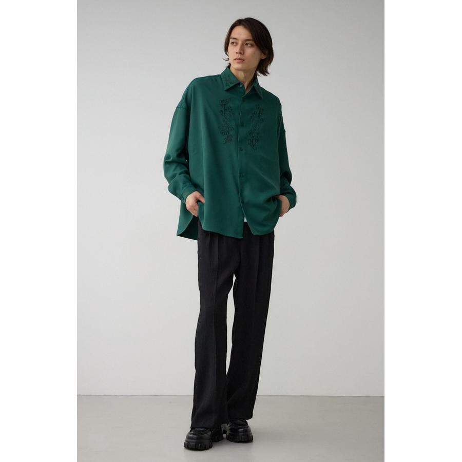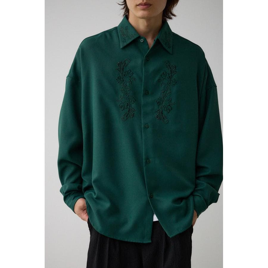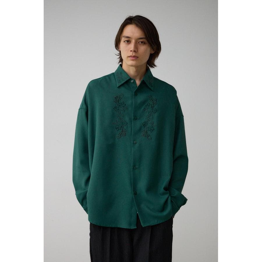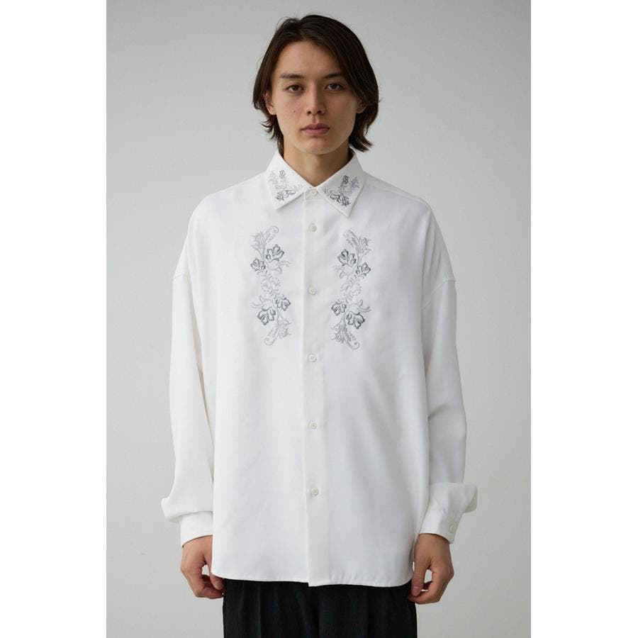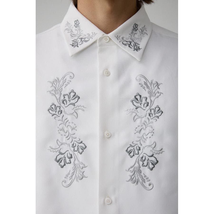 ■商品(デザイン)ポイント:襟と身頃に刺繍を施したシャツ。