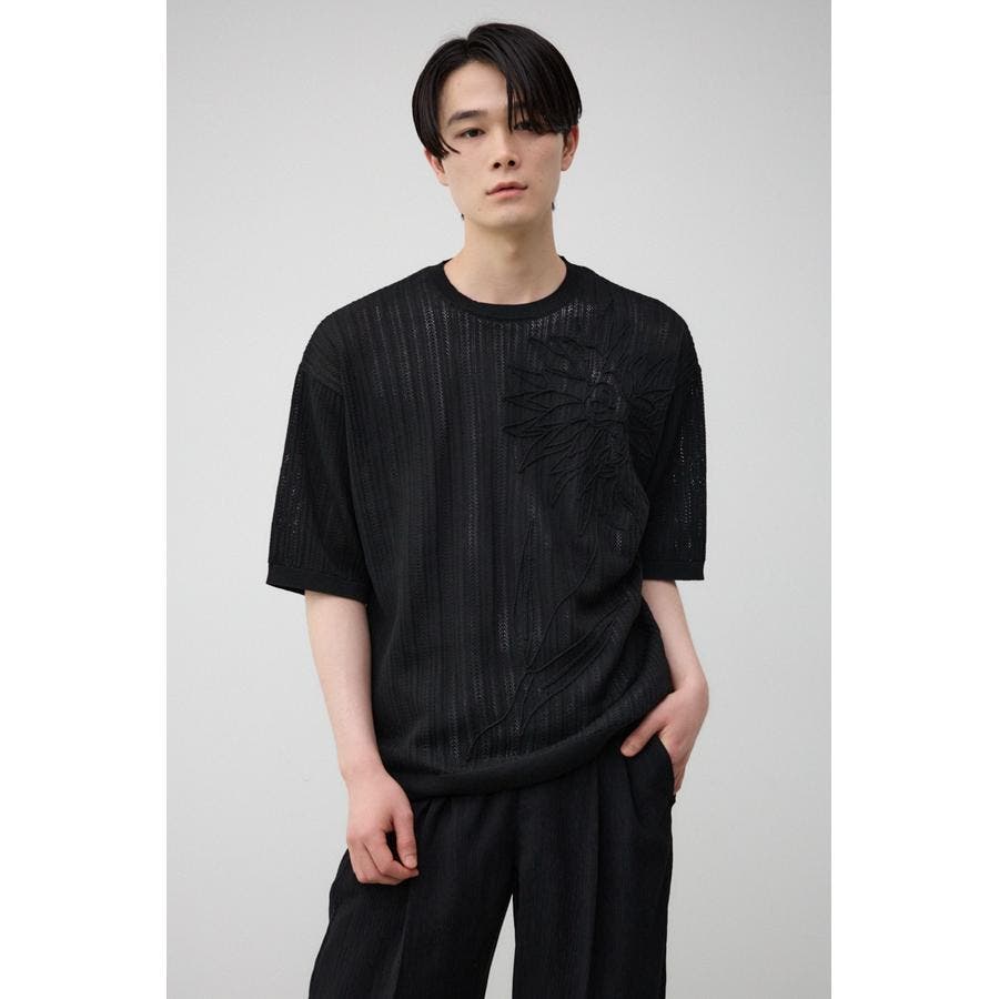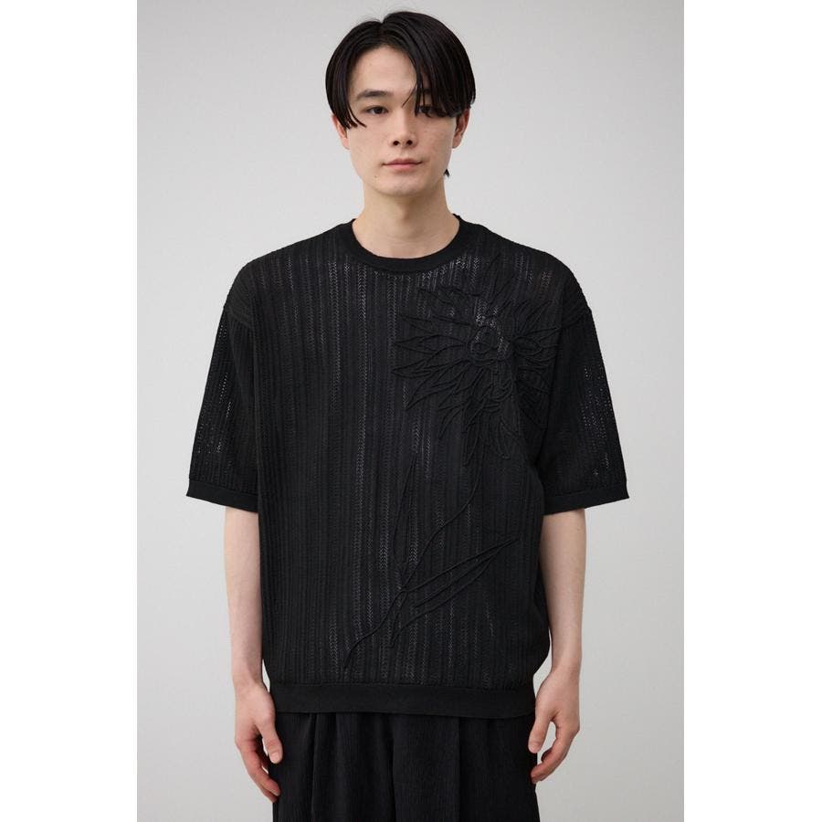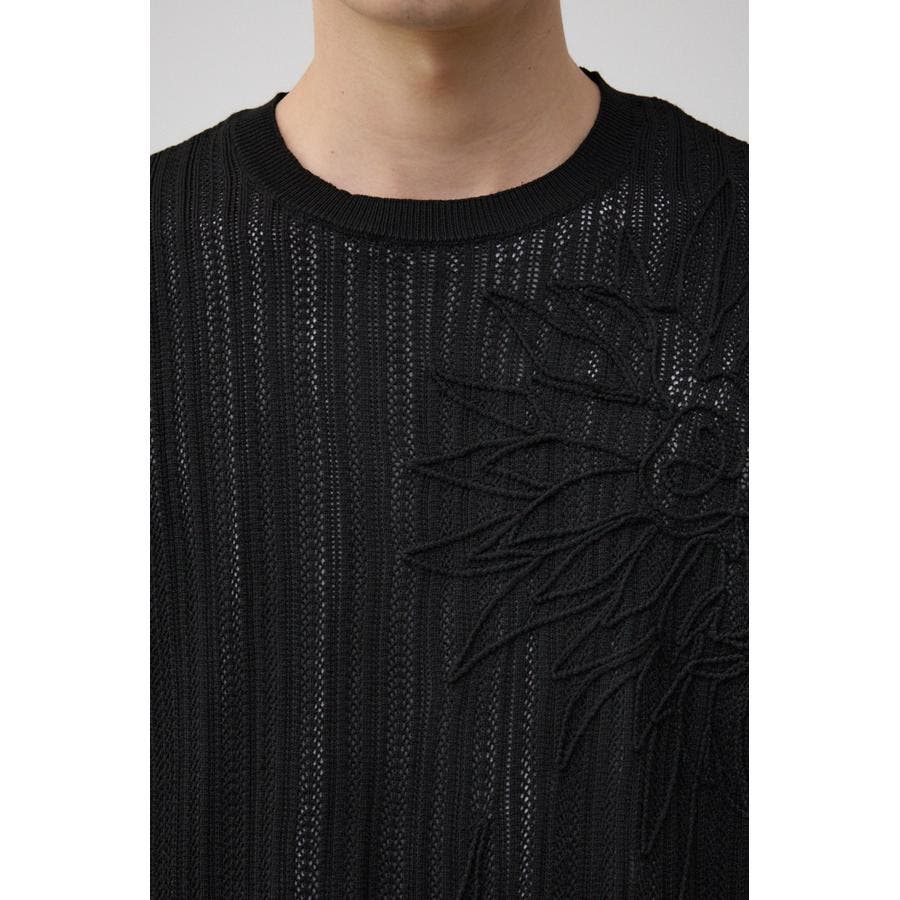 ■商品(デザイン)ポイント:フラワー刺繍がポイントのニットトップス。