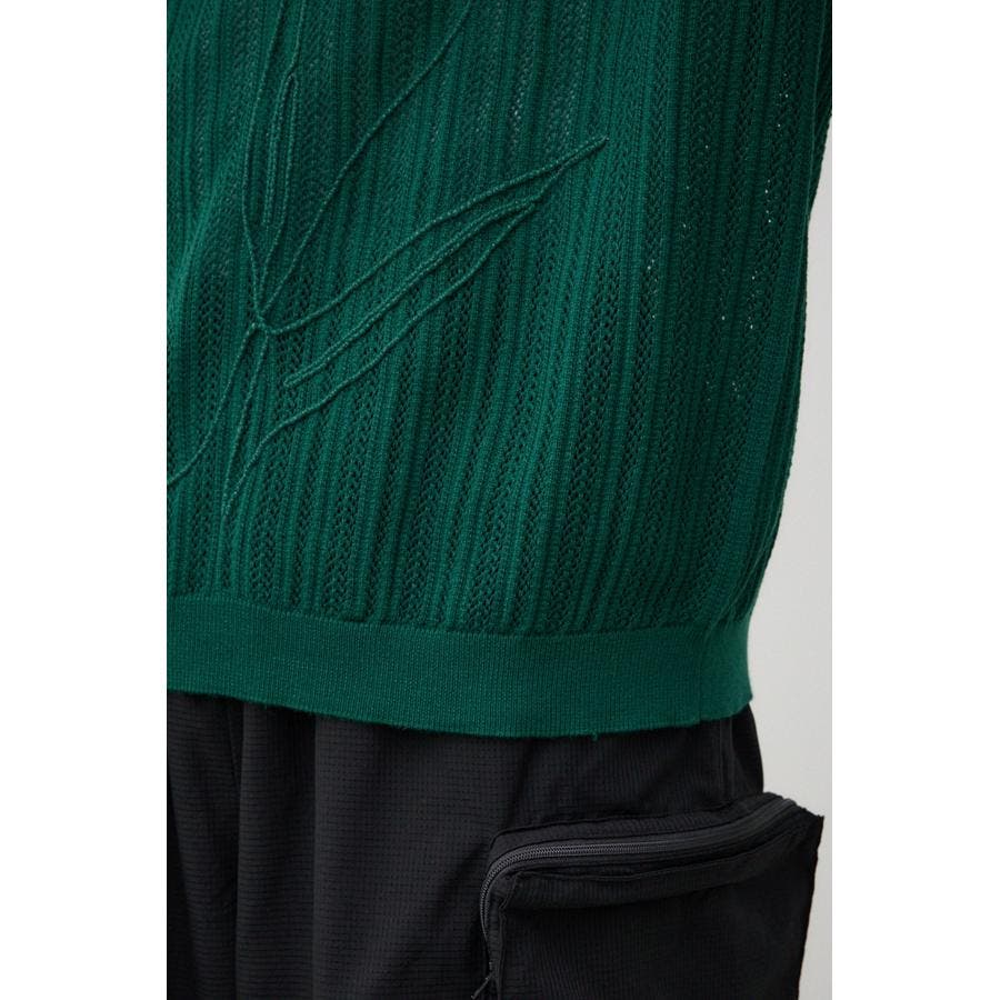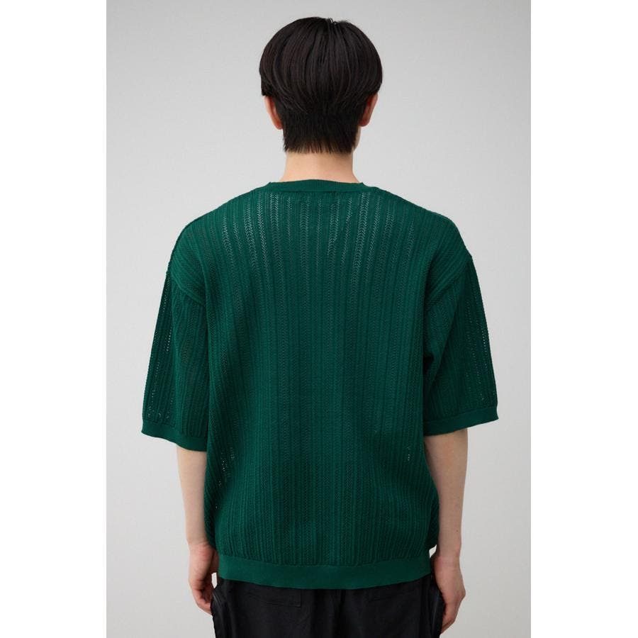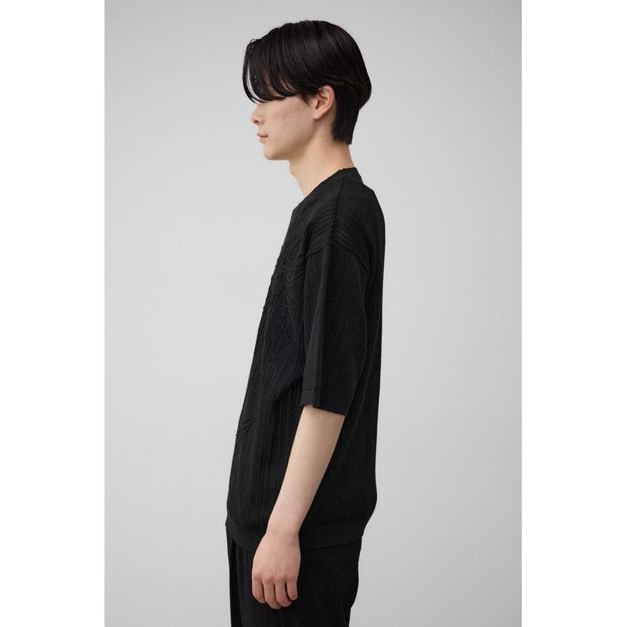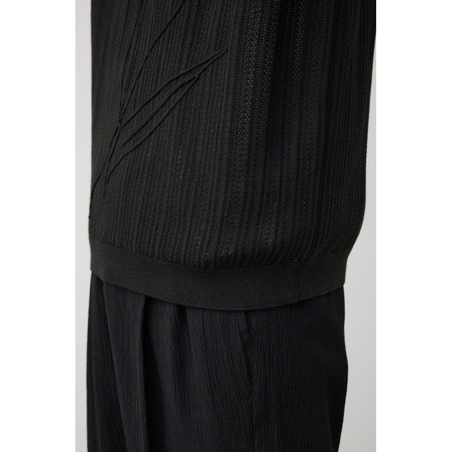 ■素 材:綿ライクな素材を使用し、透かし柄に編み立てた素材です。ストレッチ糸と一緒に編むことで、適度な肉感を演出。