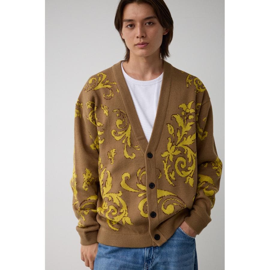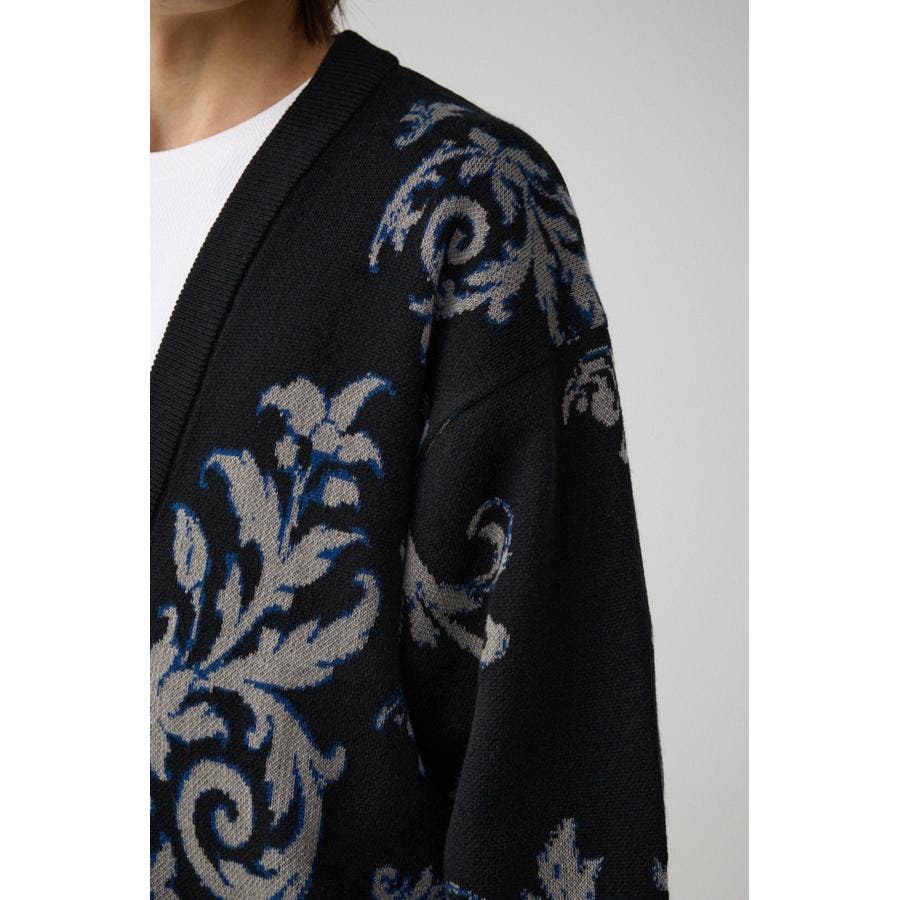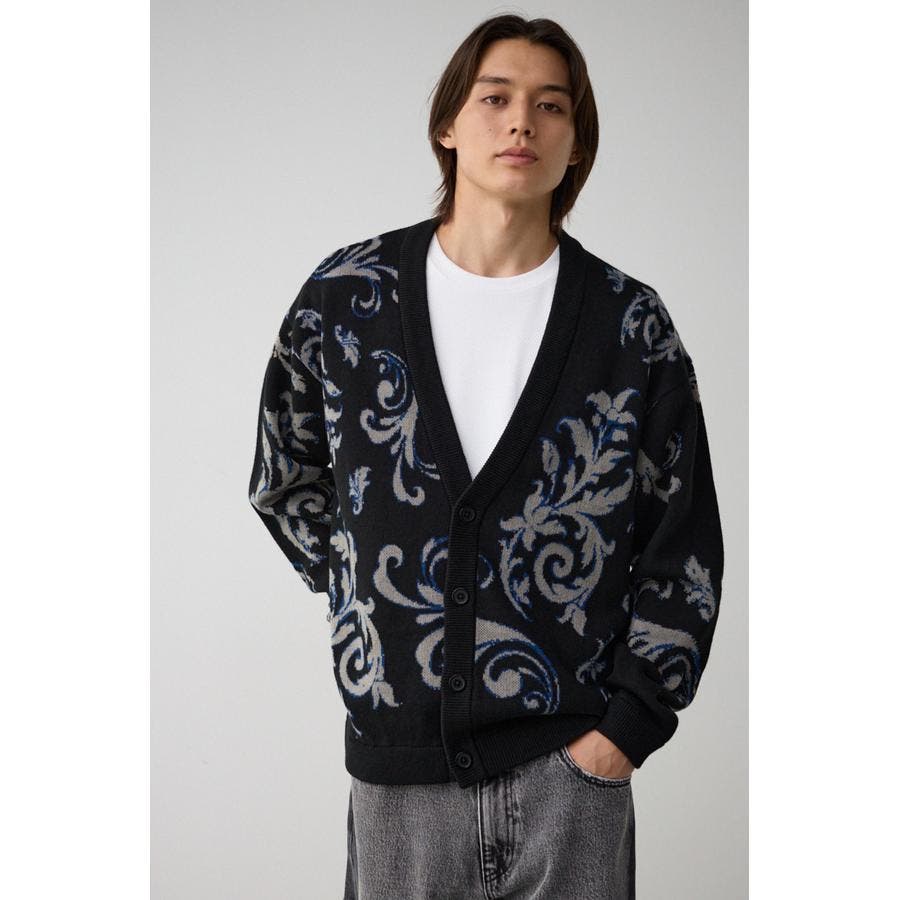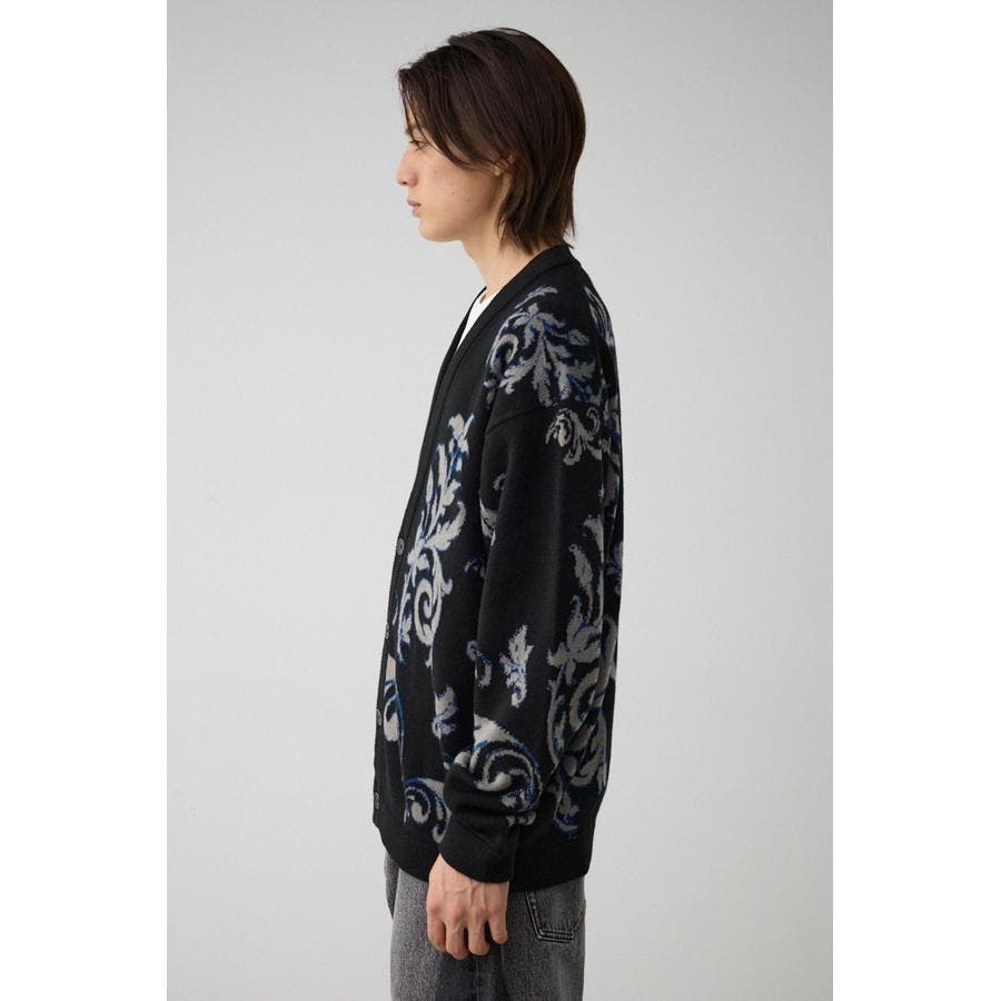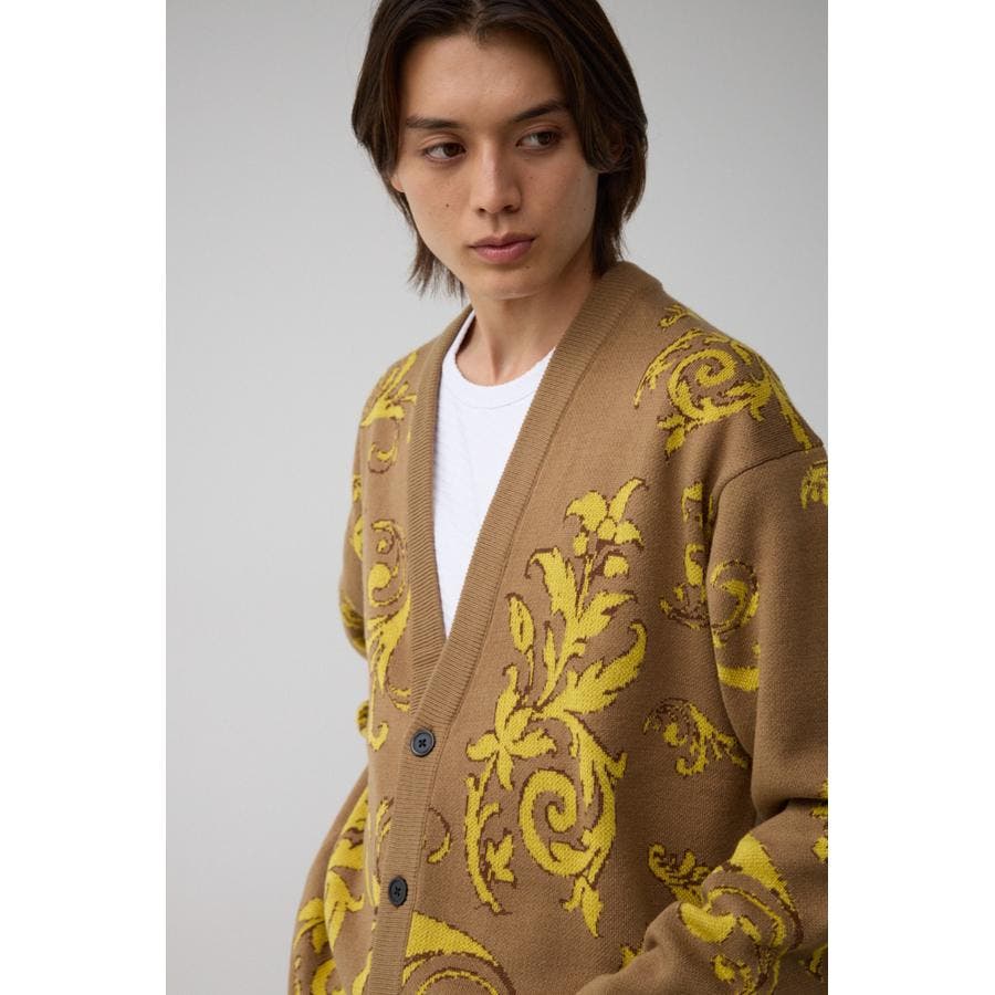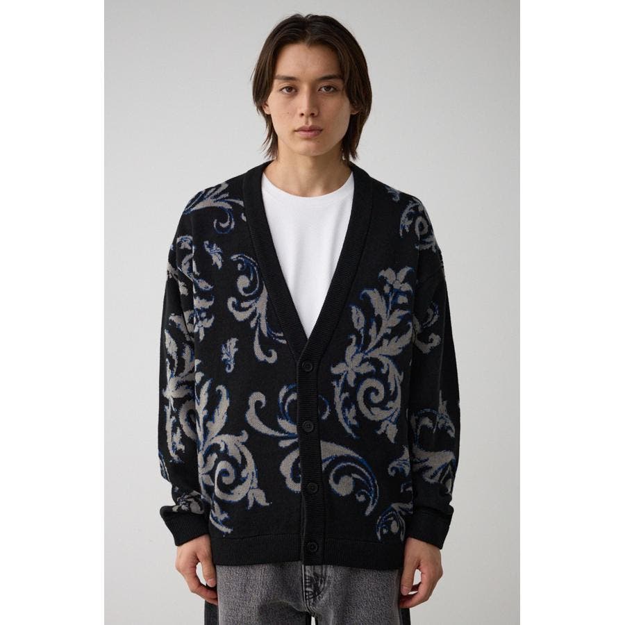 レトロなフラワー柄が特徴的なジャガードカーディガンです。