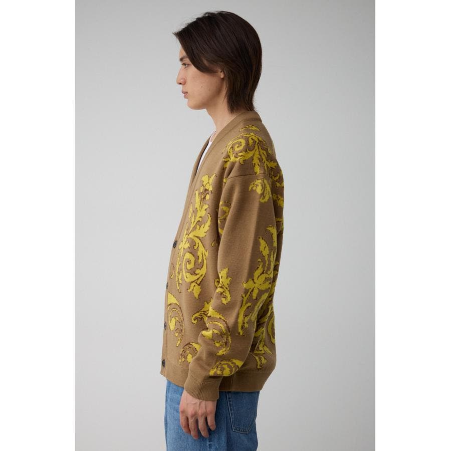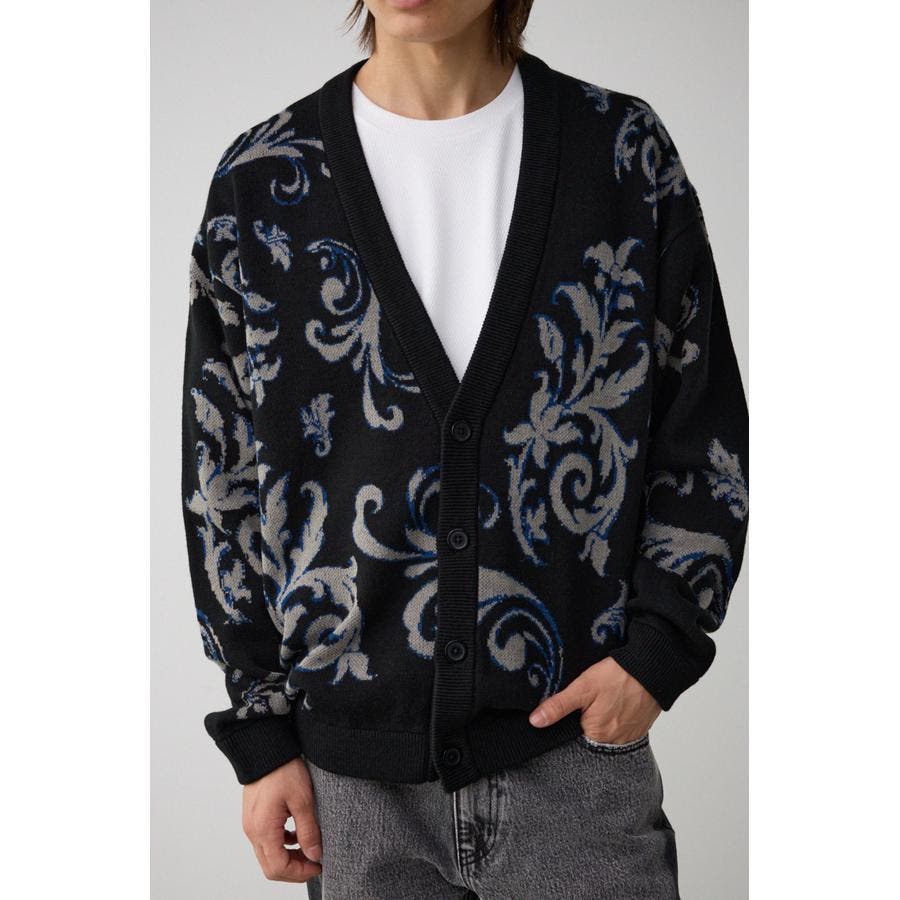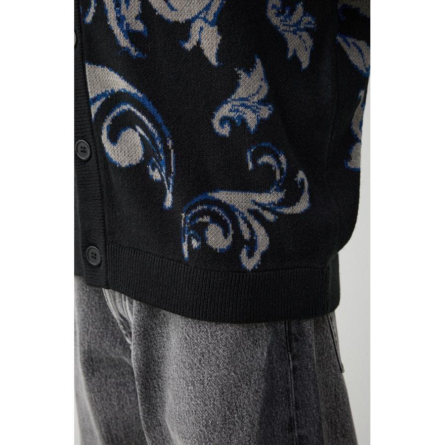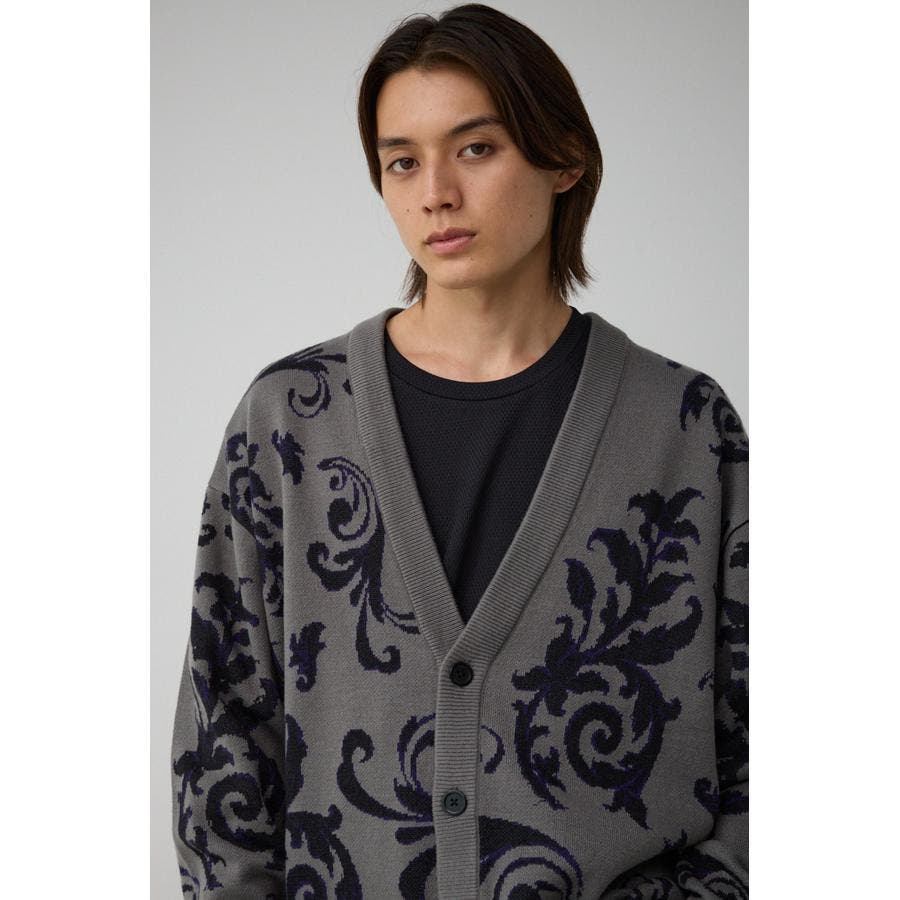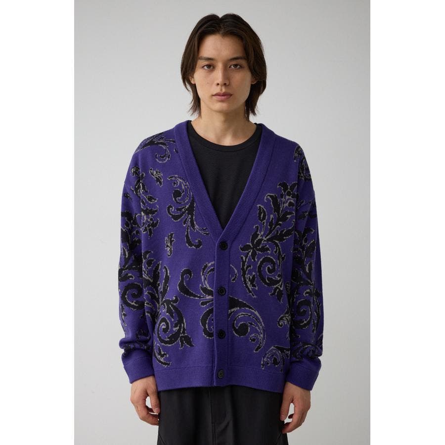 レトロなフラワー柄が特徴的なジャガードカーディガンです。