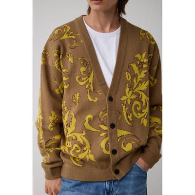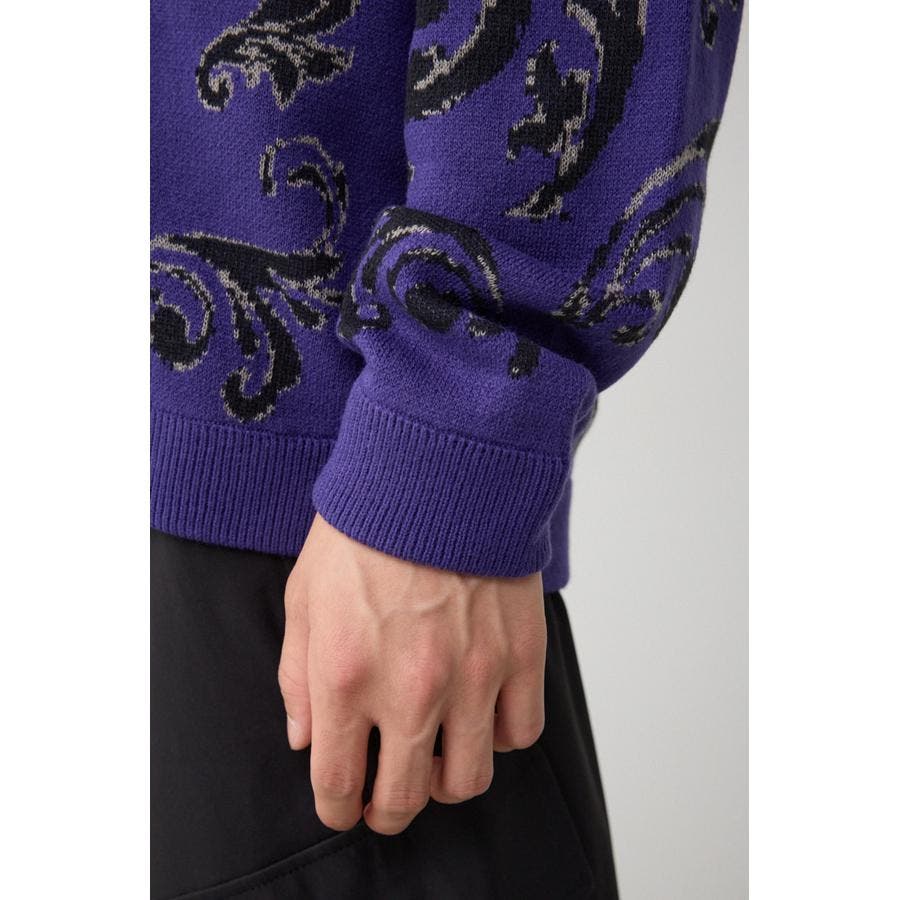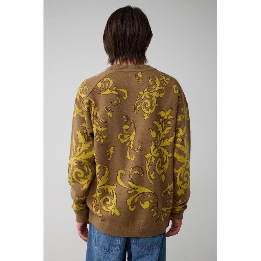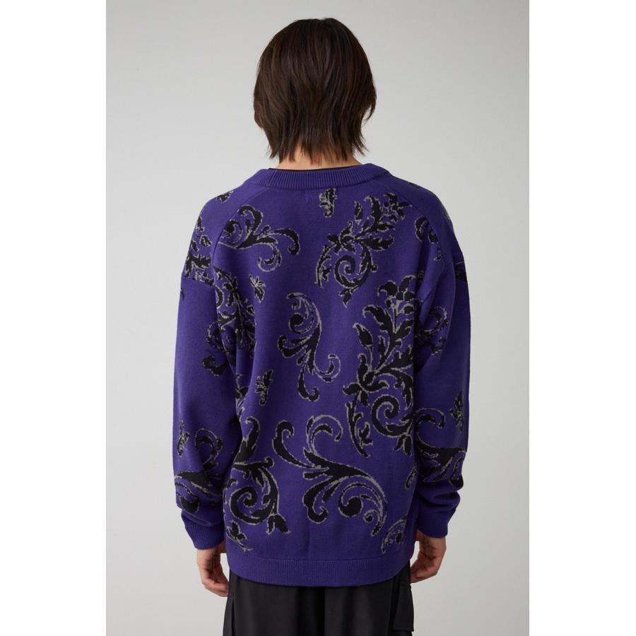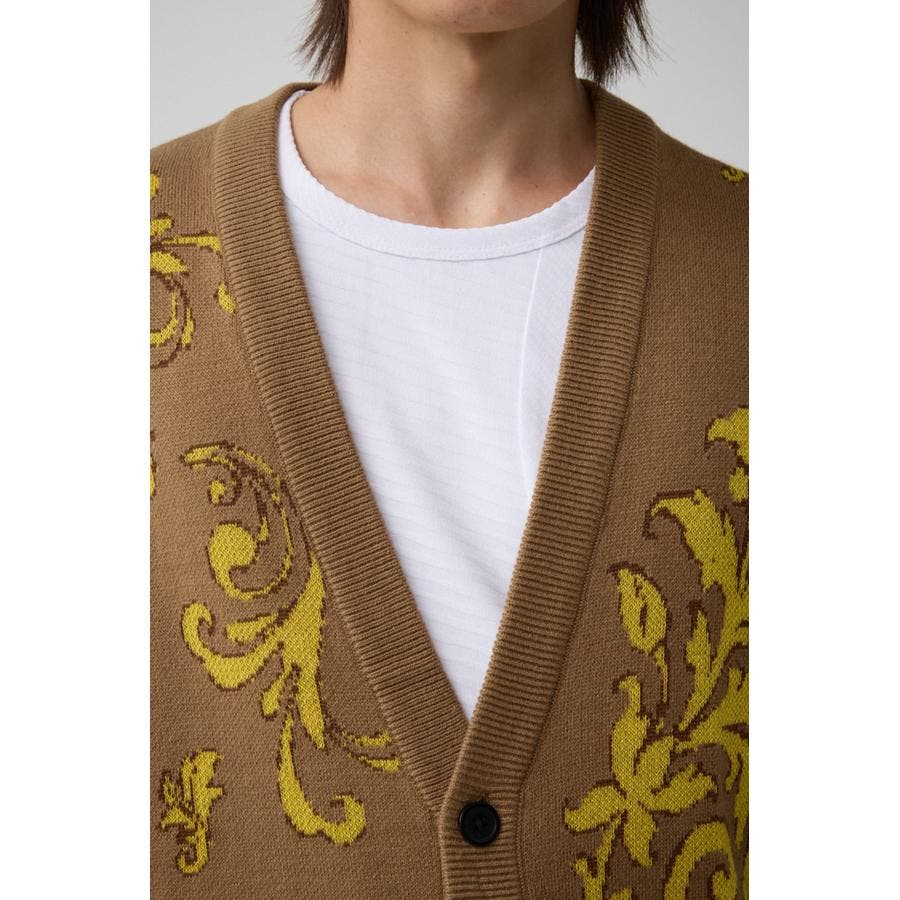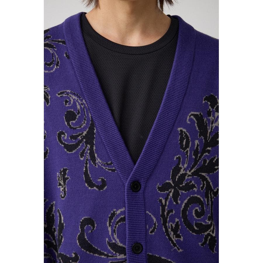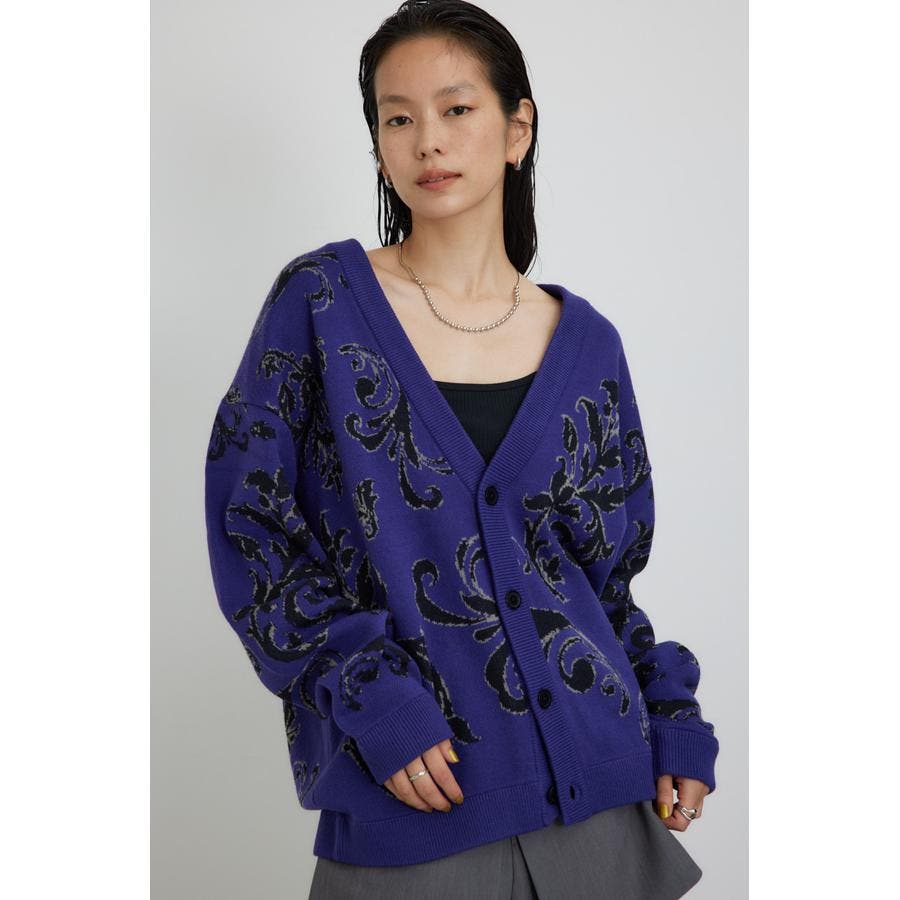レトロなフラワー柄が特徴的なジャガードカーディガンです。
