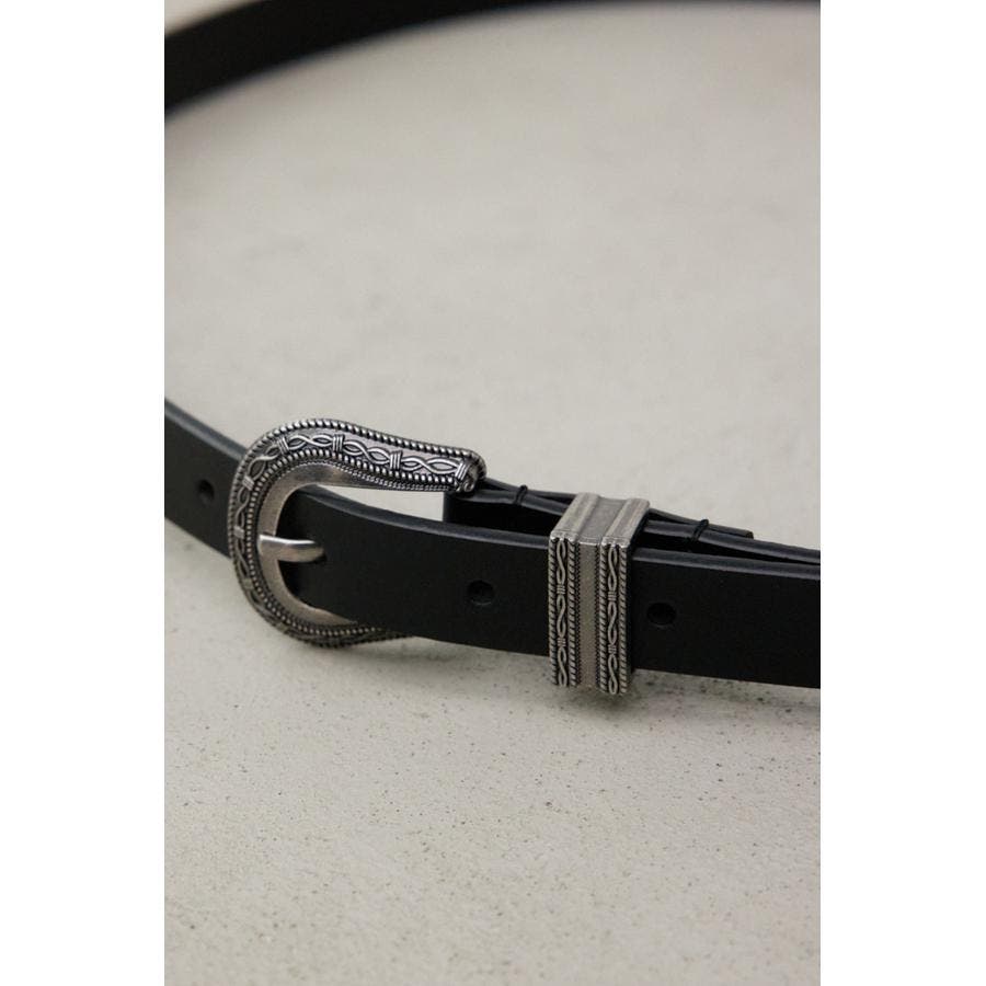 ・本革のベルトに存在感のあるバックルがポイントのアイテム。