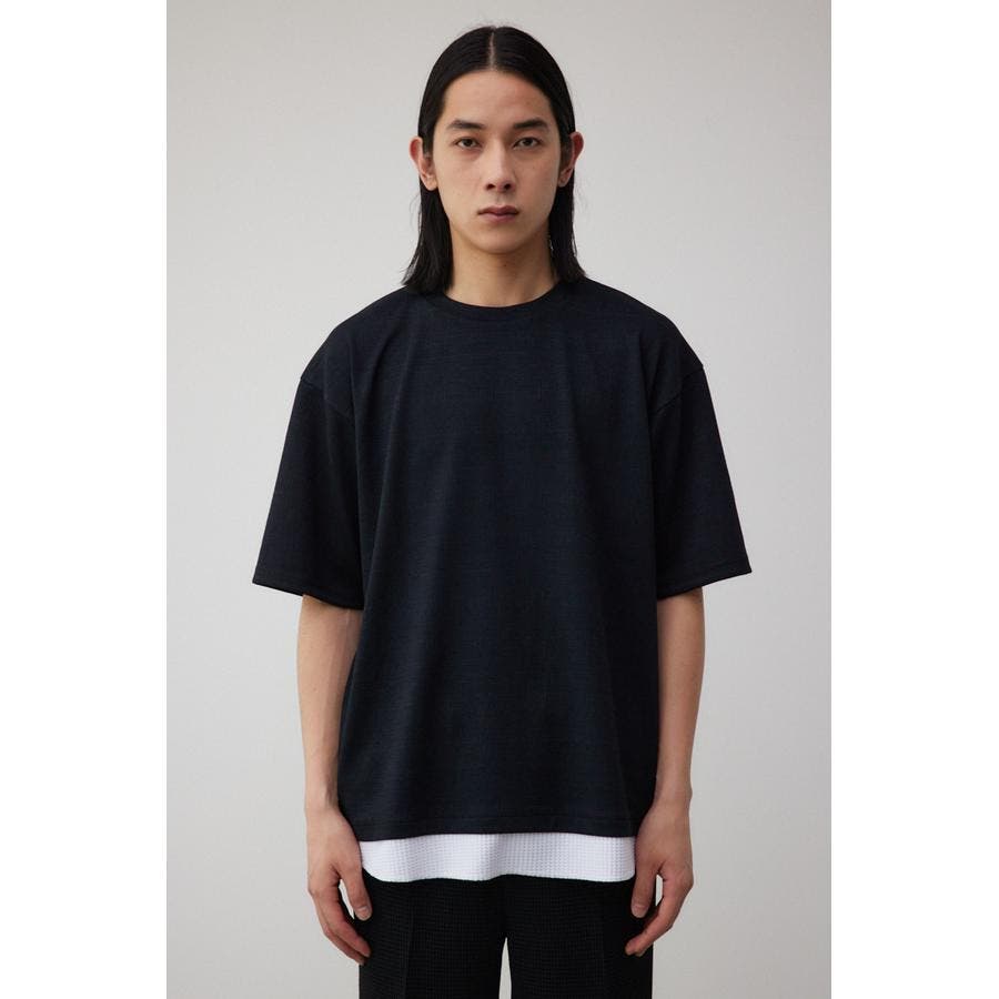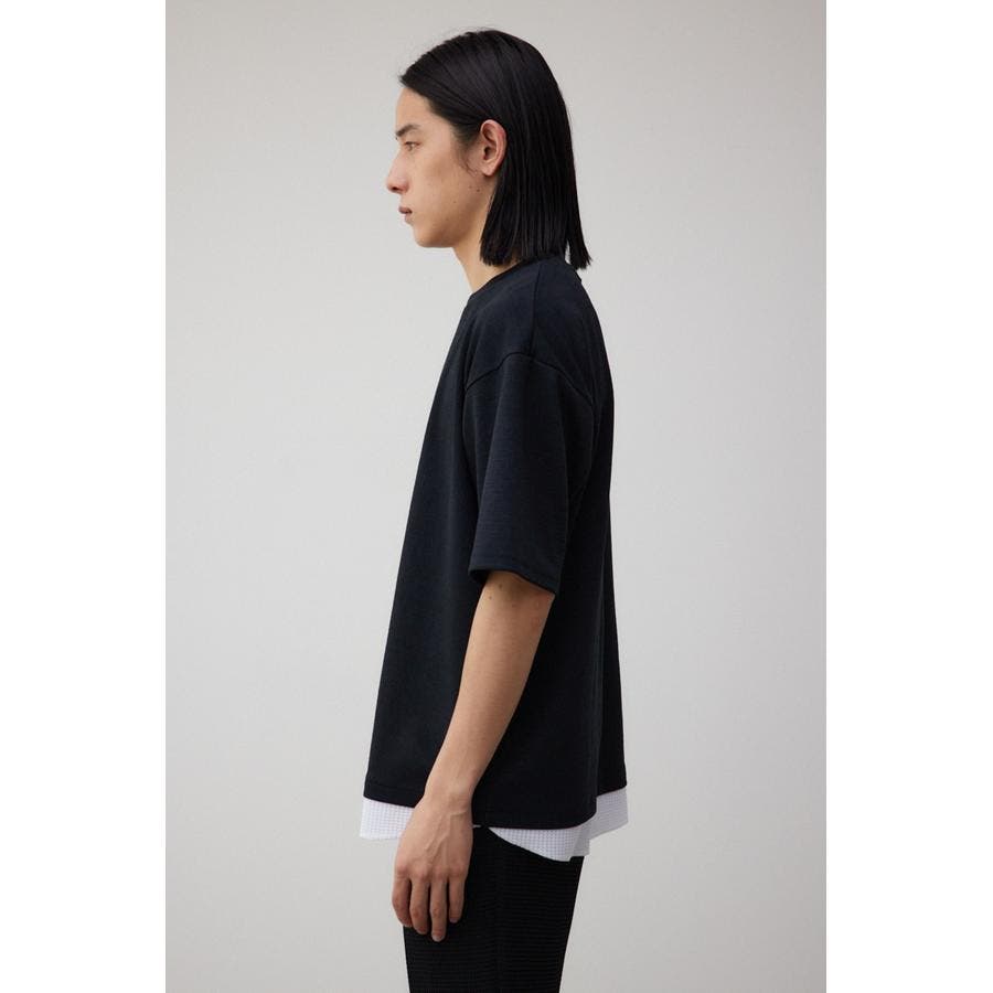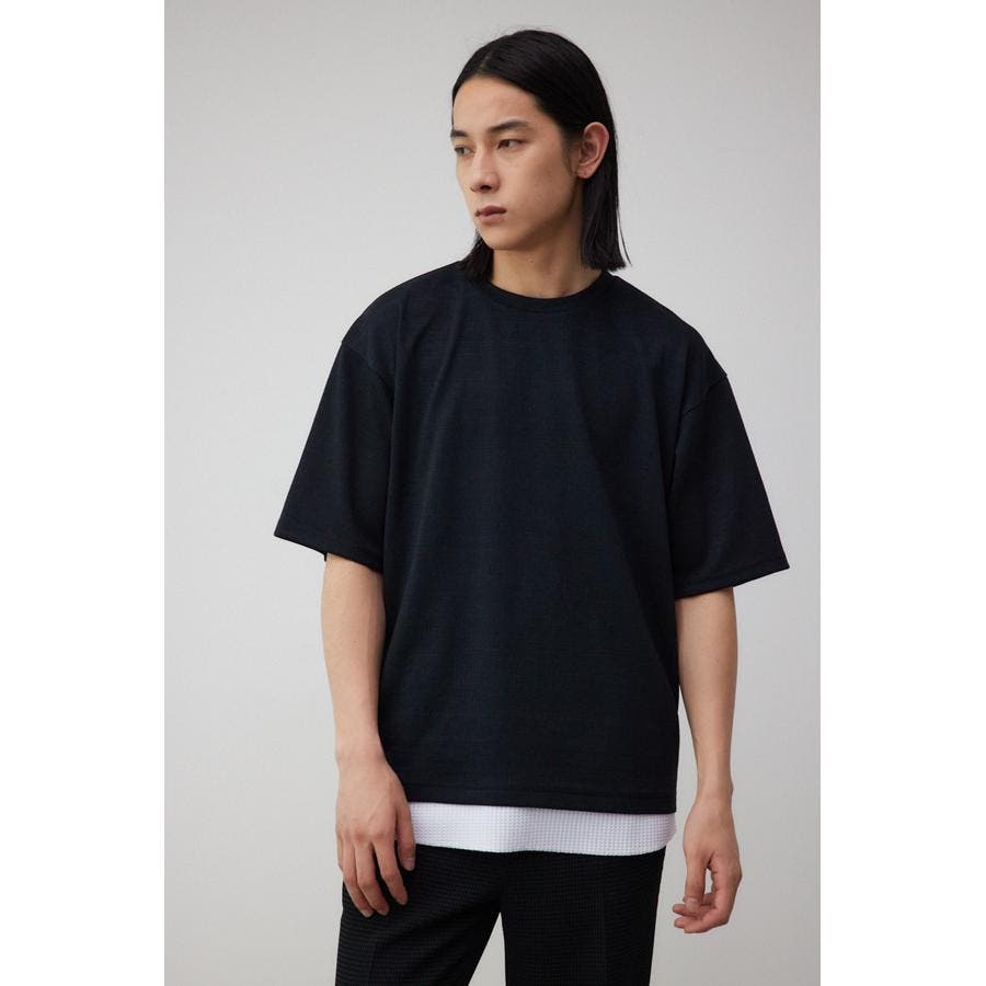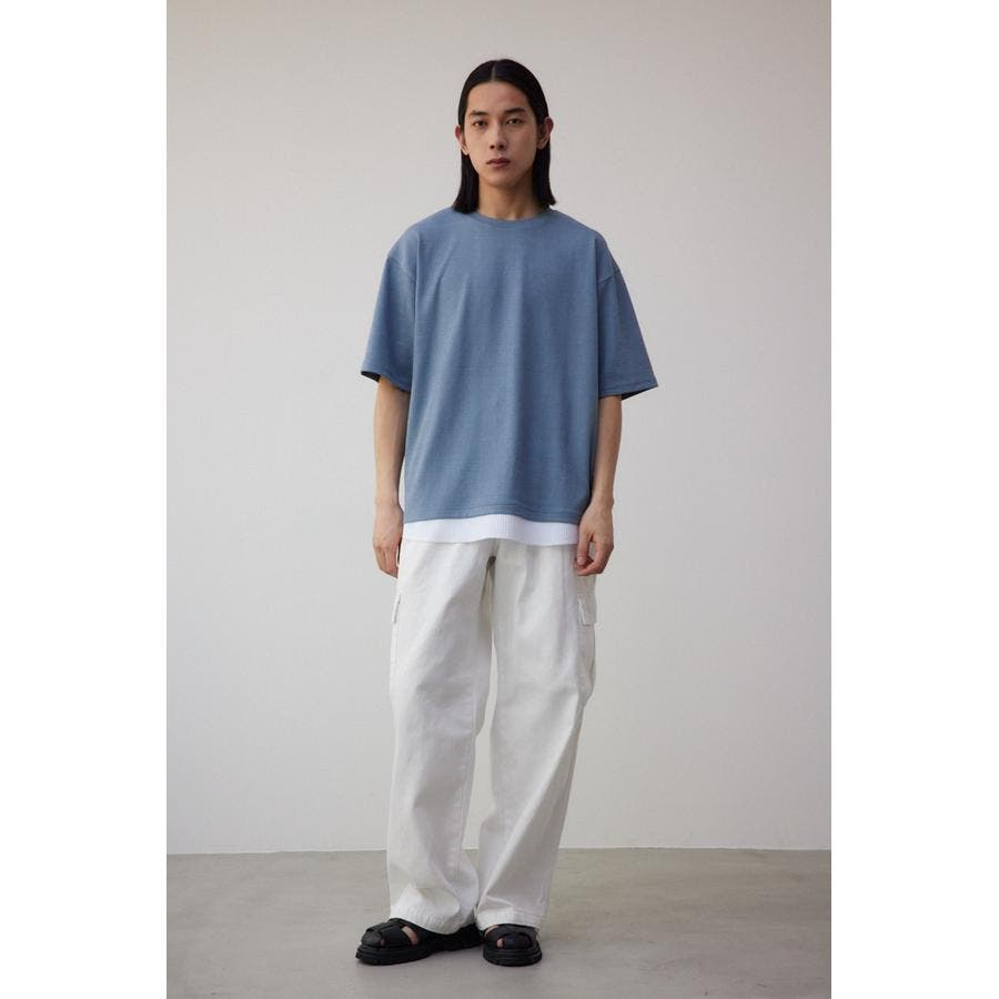 ・異素材ドッキングのフェイクレイヤードトップス。