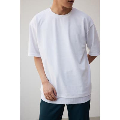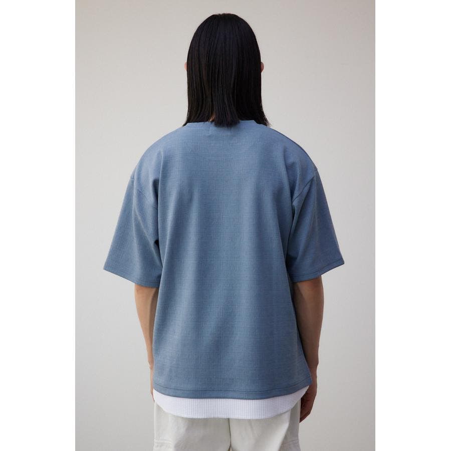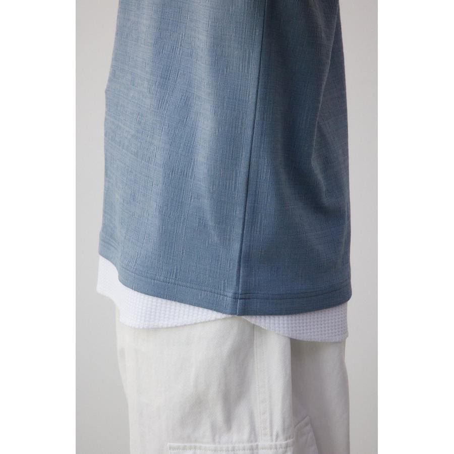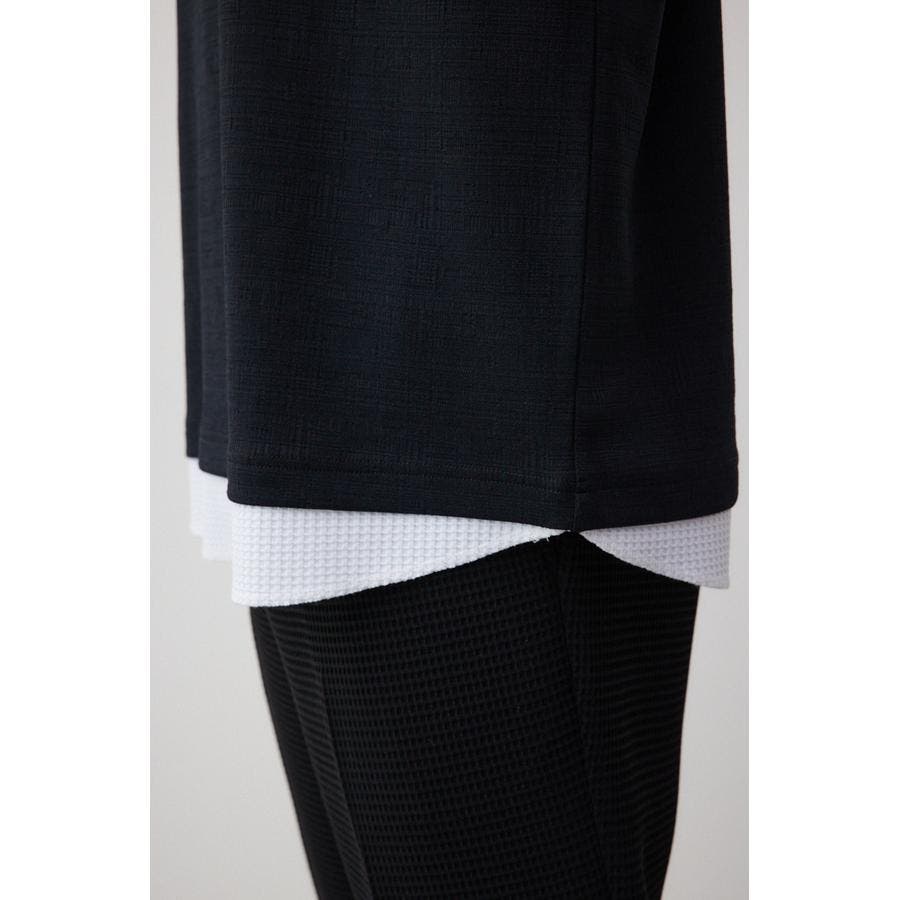 ・裾にシャツをドッキングさせて1枚で重ね着風のアイテムに。