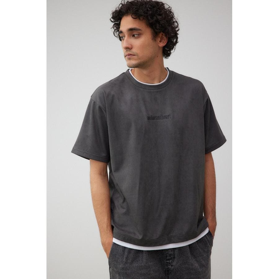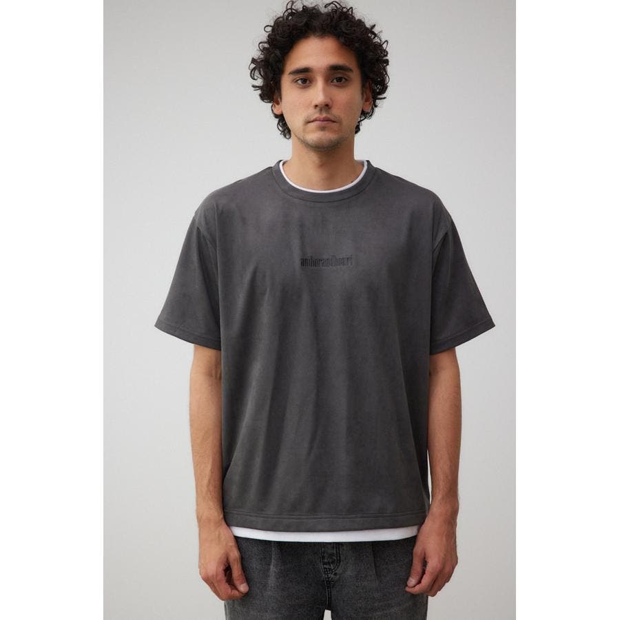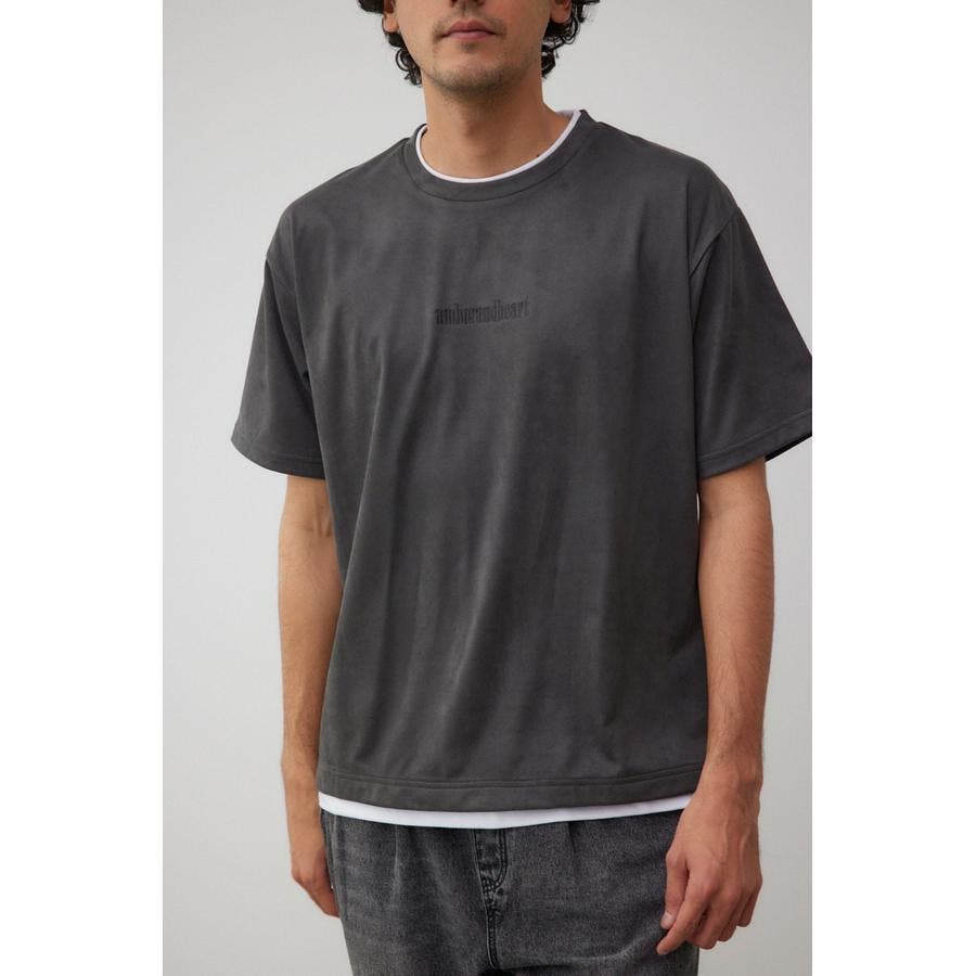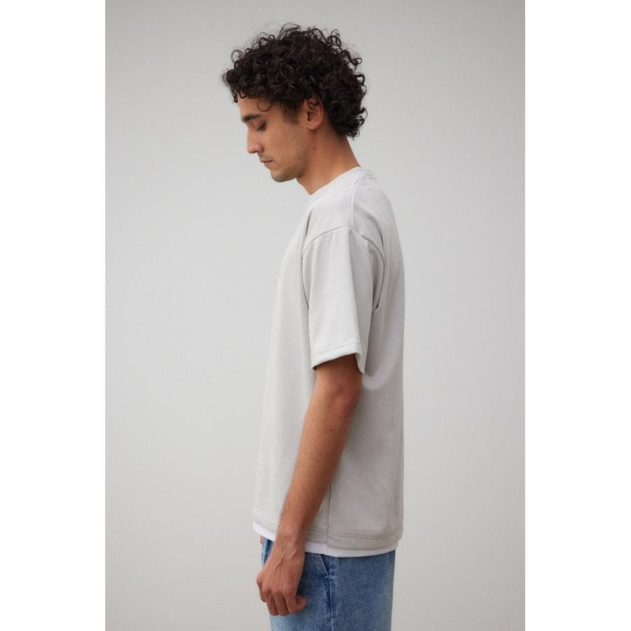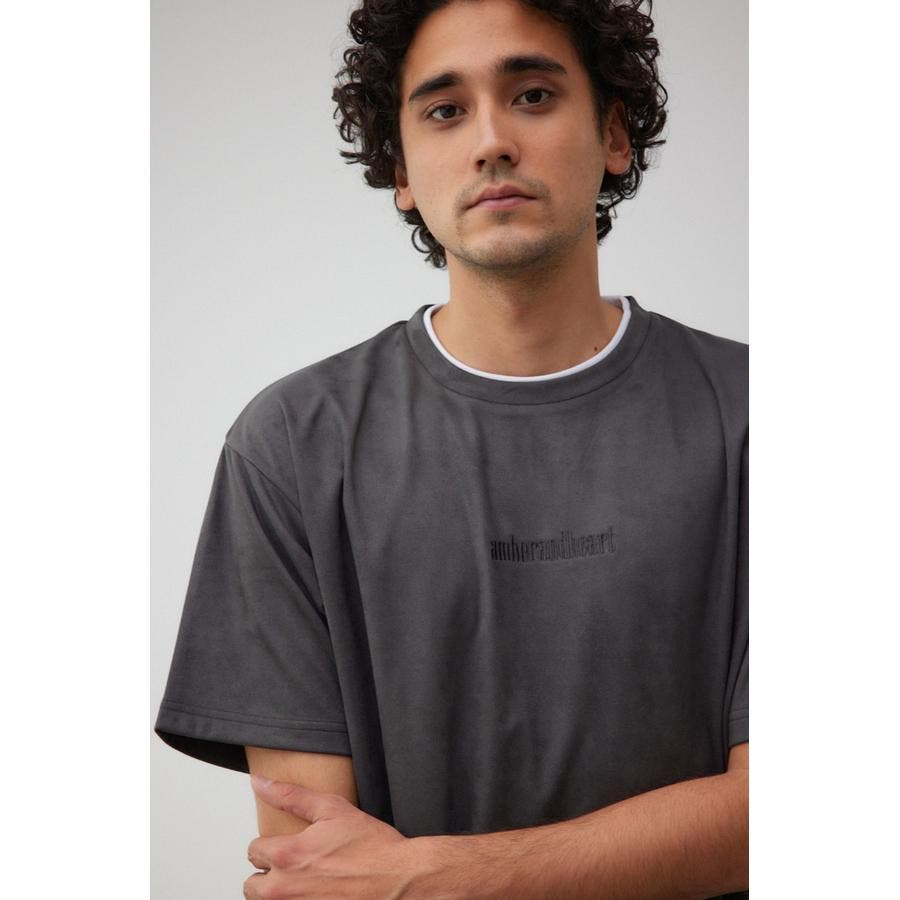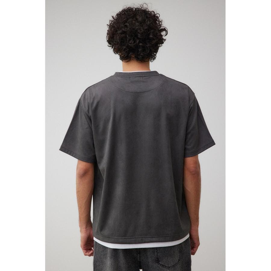 ・フェイクスウェードにカットソー素材をレイヤードさせたTシャツ。