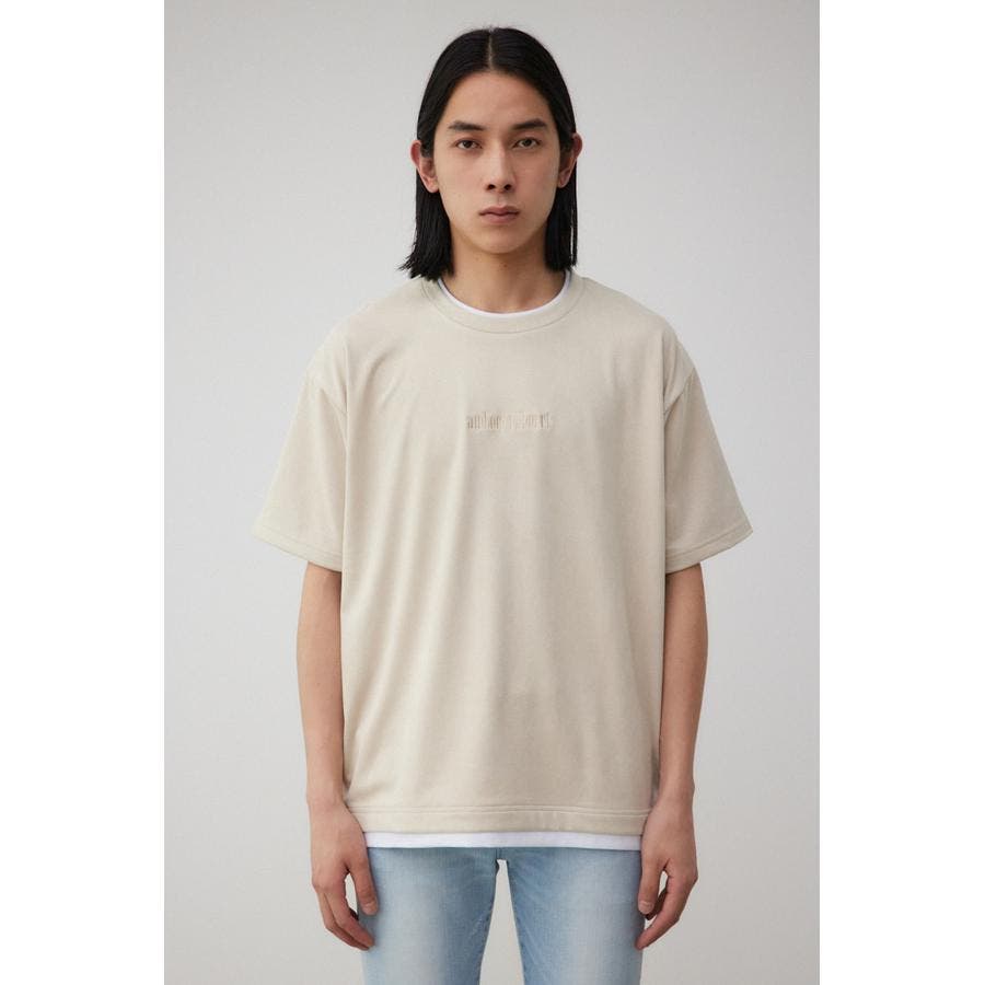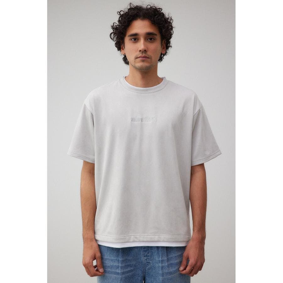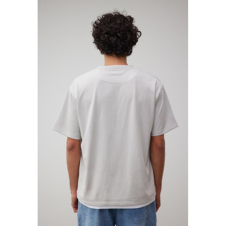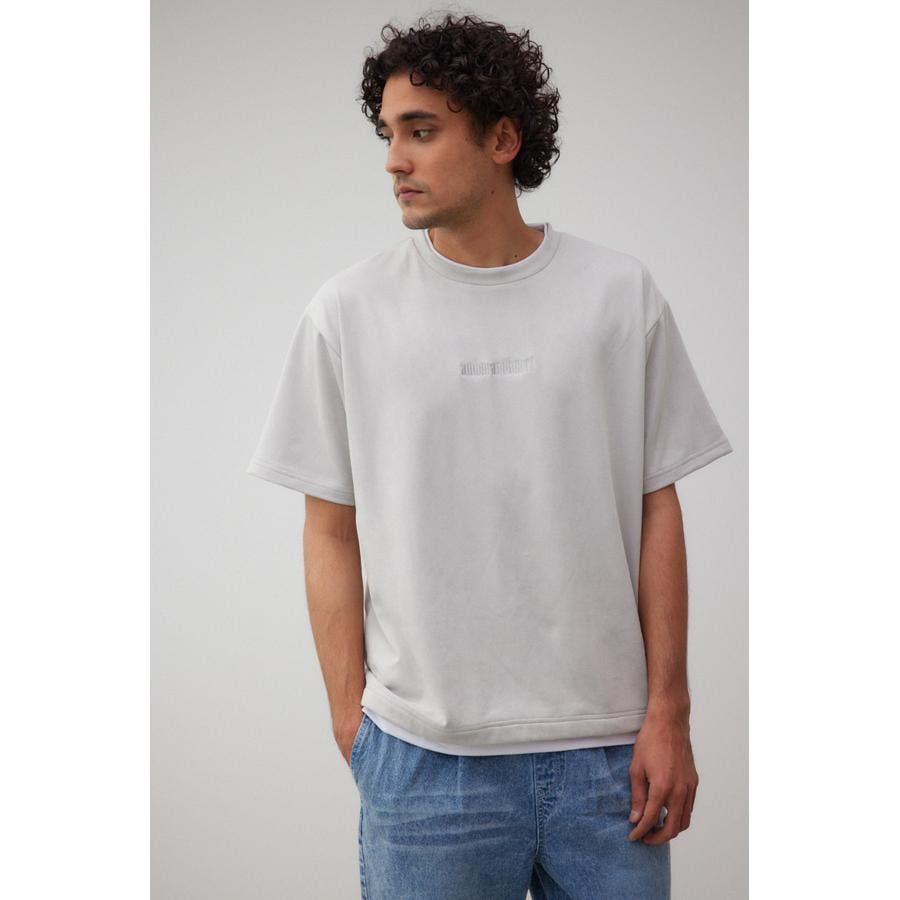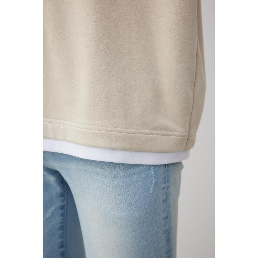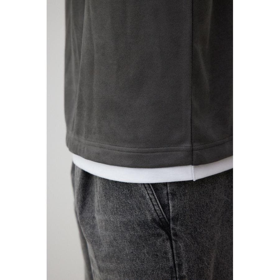 ・フェイクスウェードにカットソー素材をレイヤードさせたTシャツ。