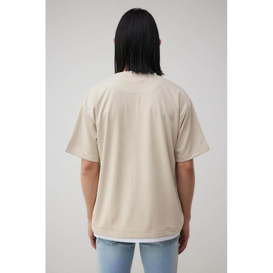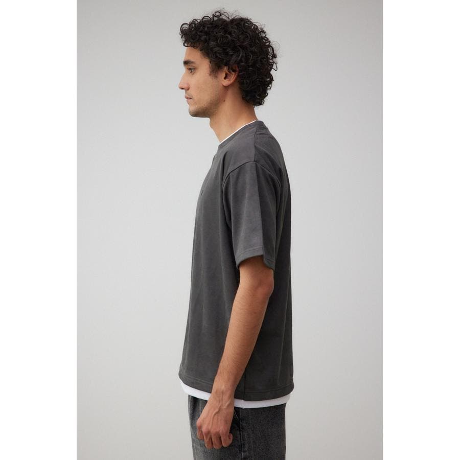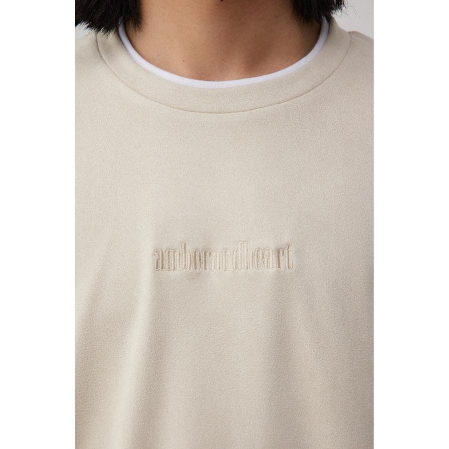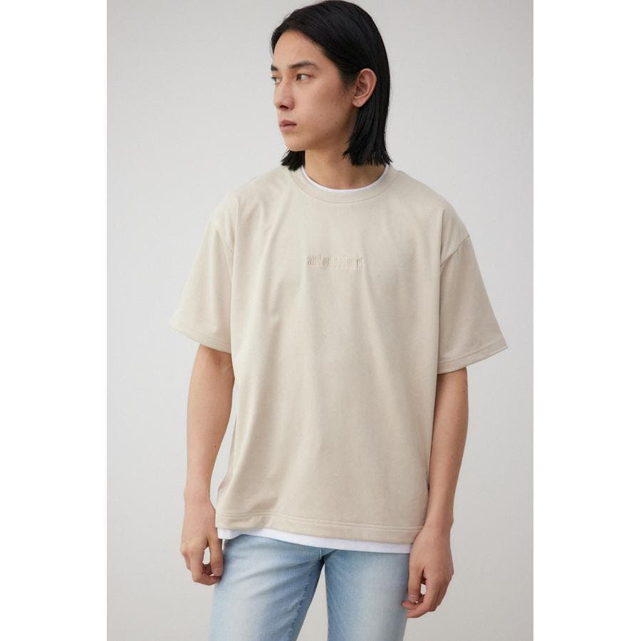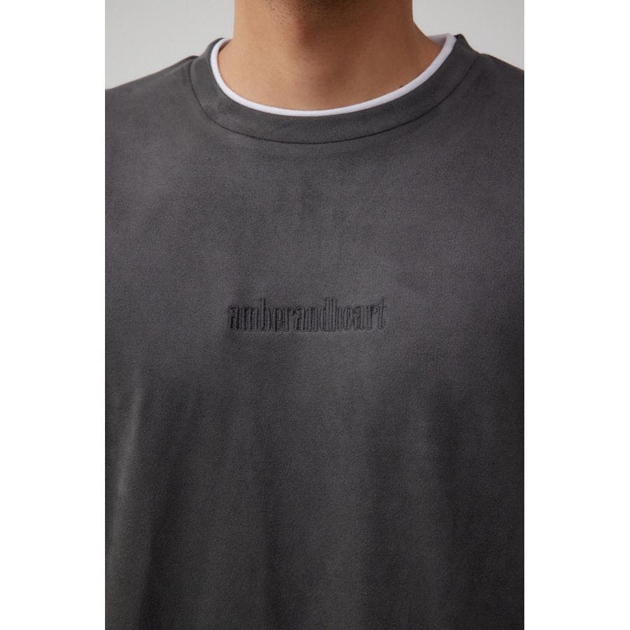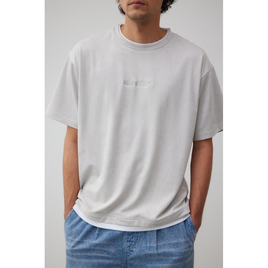 ・フェイクスウェードにカットソー素材をレイヤードさせたTシャツ。