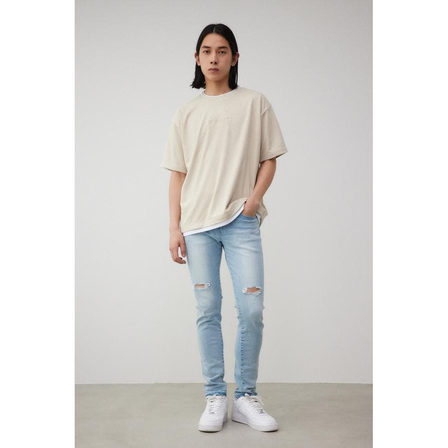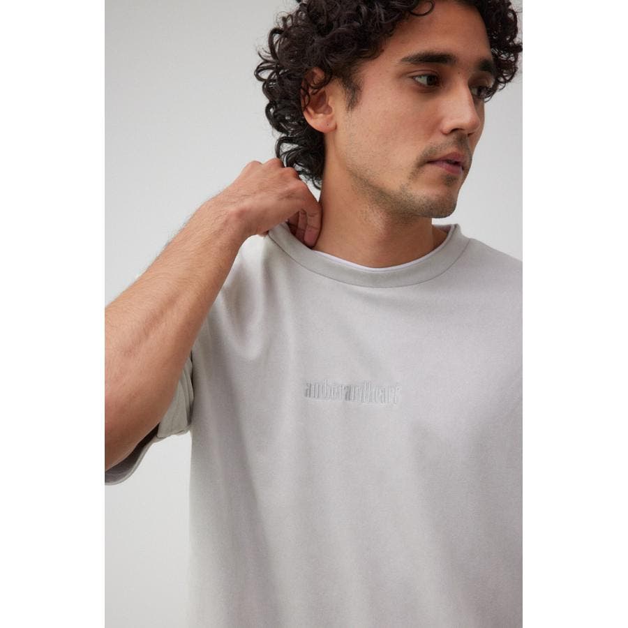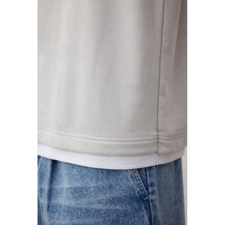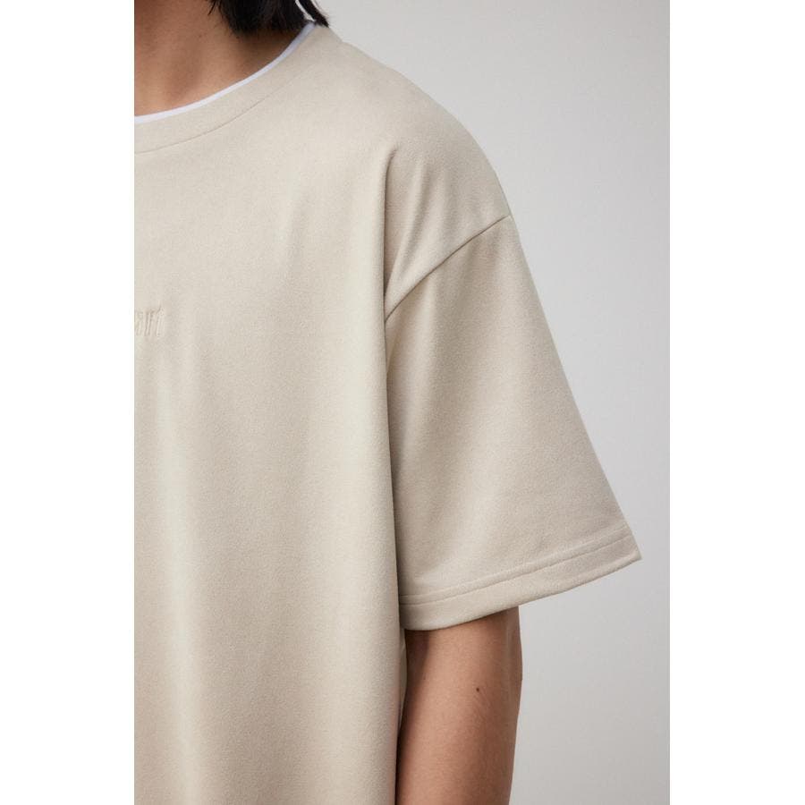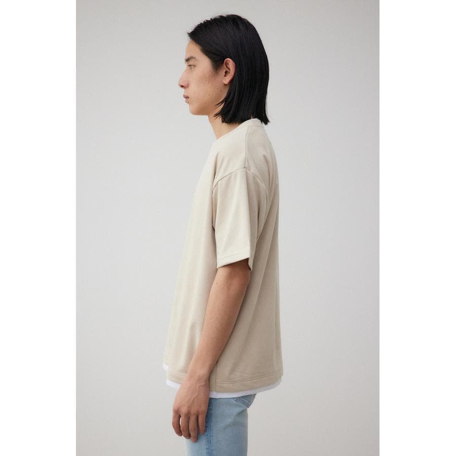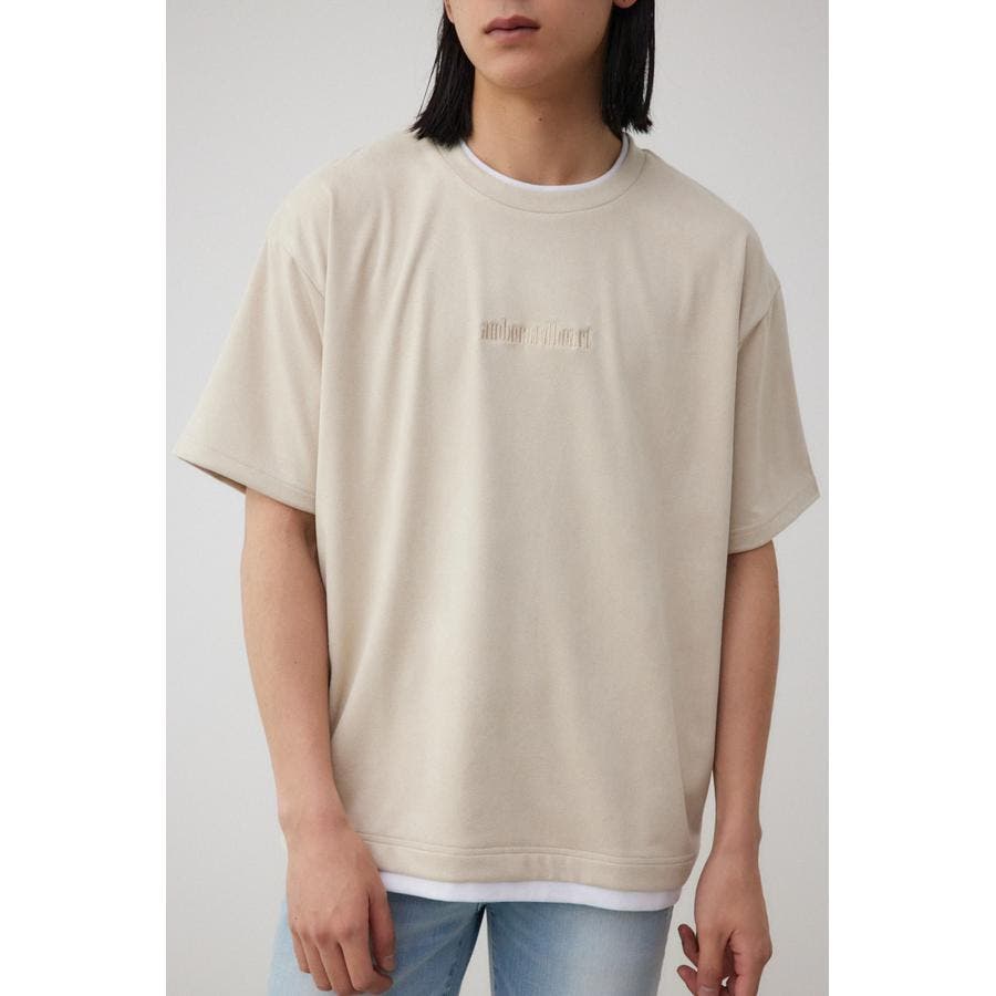 ・フェイクスウェードにカットソー素材をレイヤードさせたTシャツ。