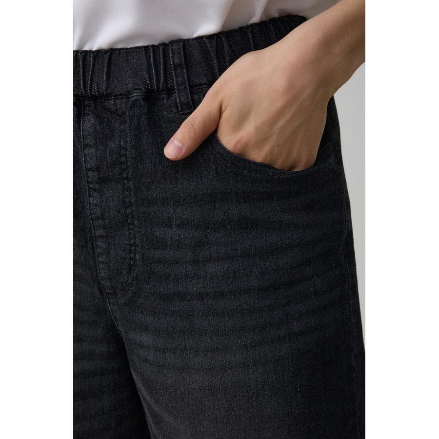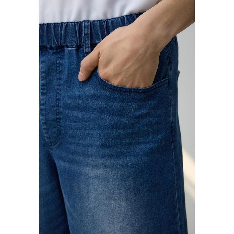 ■商品ディティール:見た目は本格デニム仕様ですが、ウエストがゴムなので、ストレッチ性があり、履き心地も抜群。洗濯した後に乾くのが早い素材を採用しています。