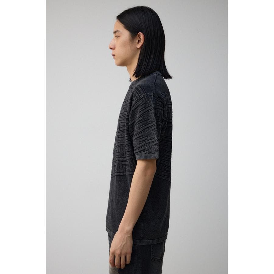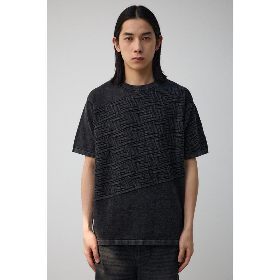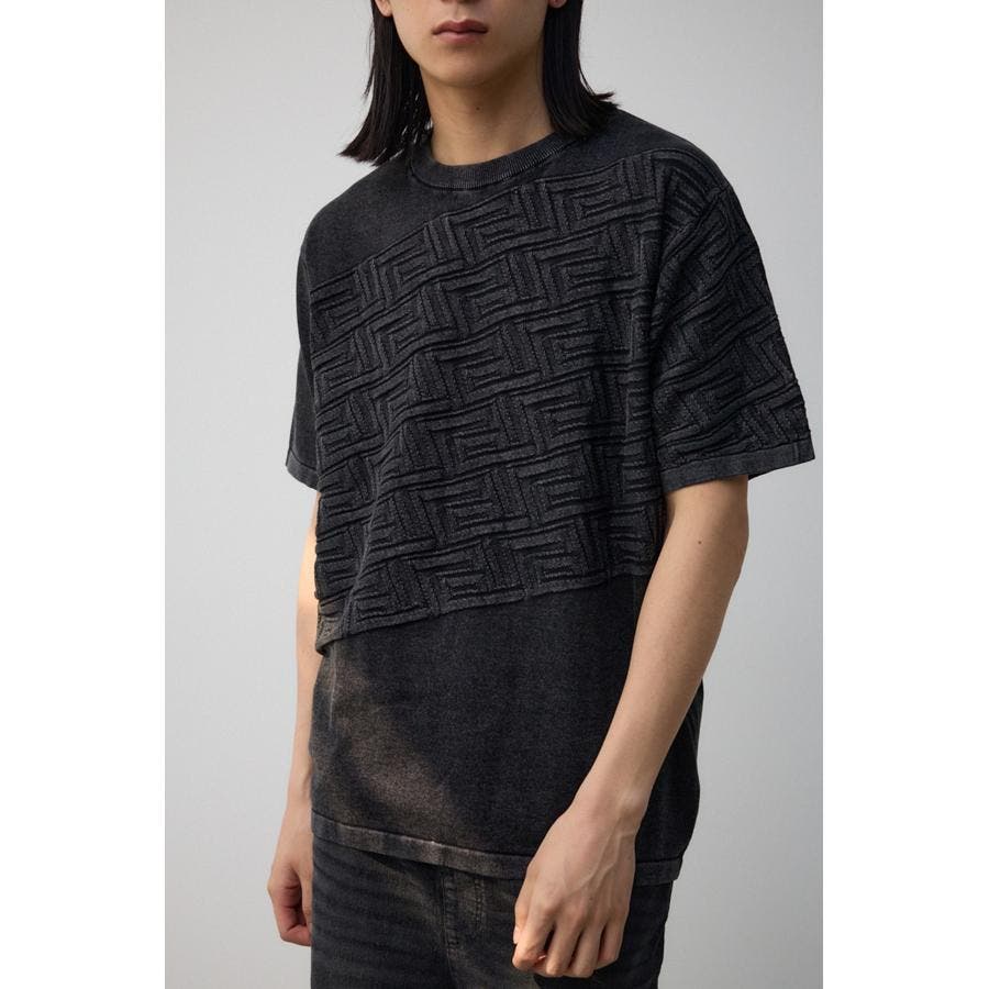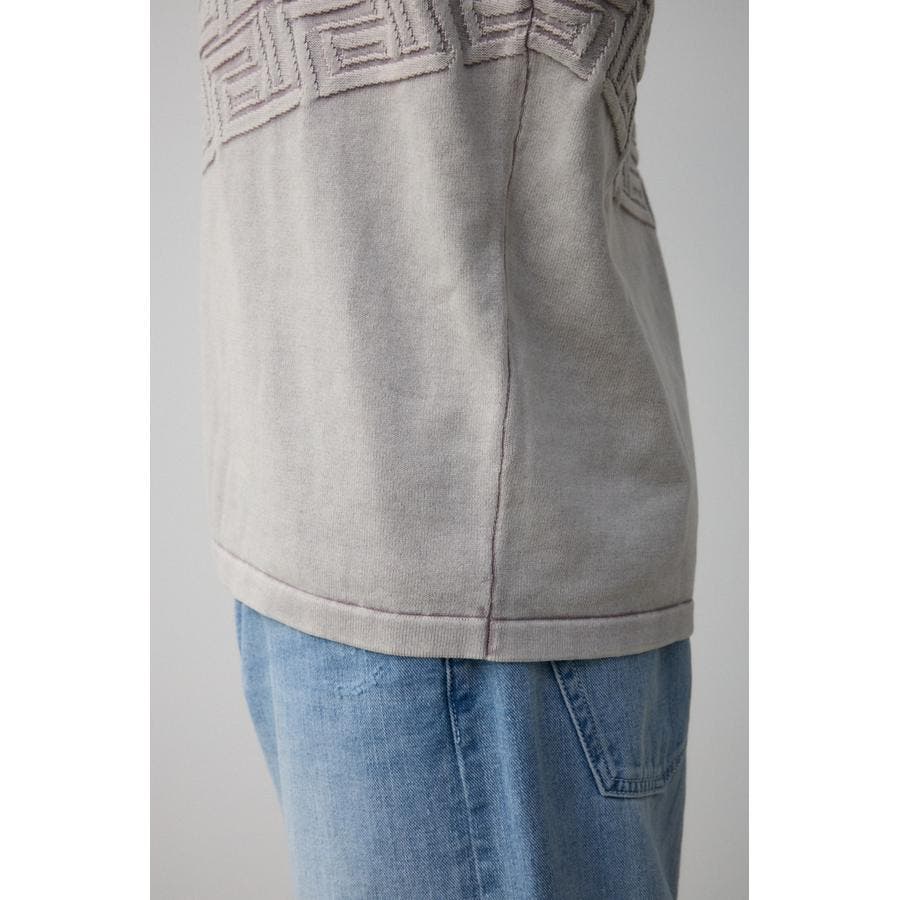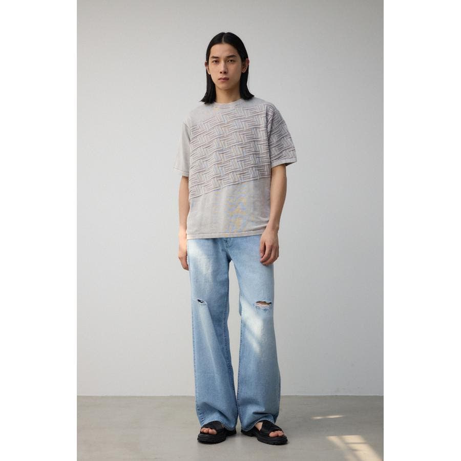 ・身頃上部のジャガード柄、ストーンウォッシュによる色落ち加工で、雰囲気のある一着に。