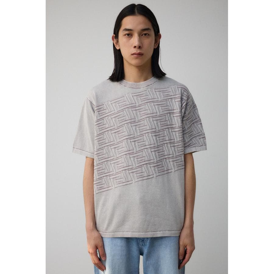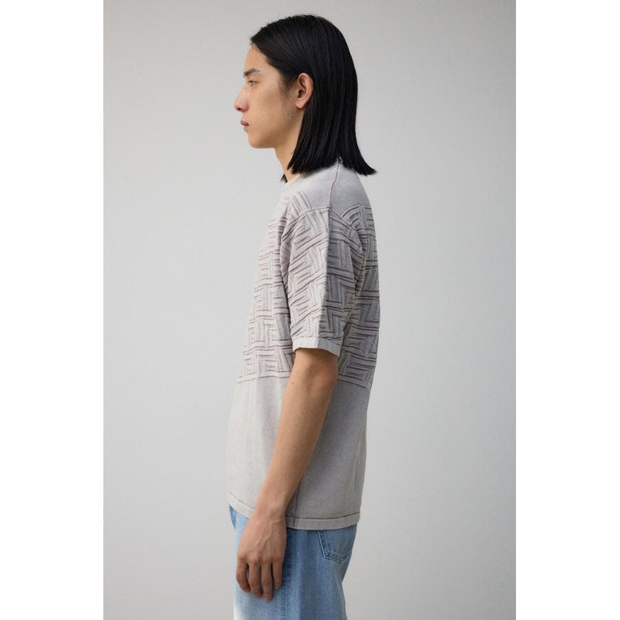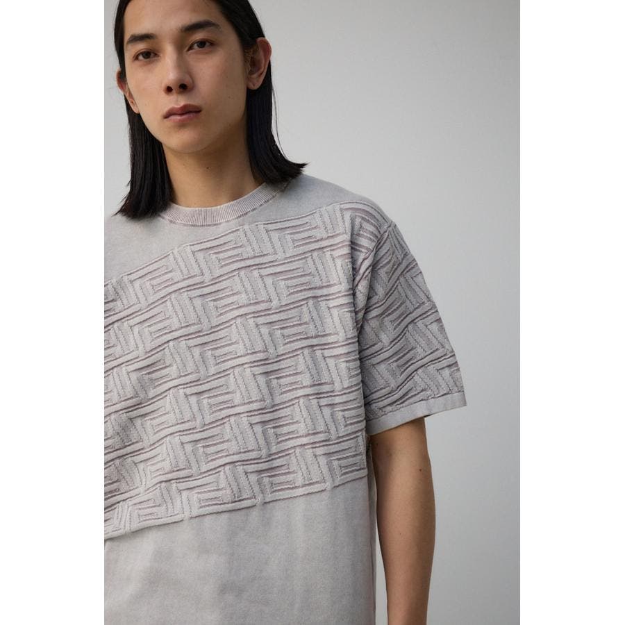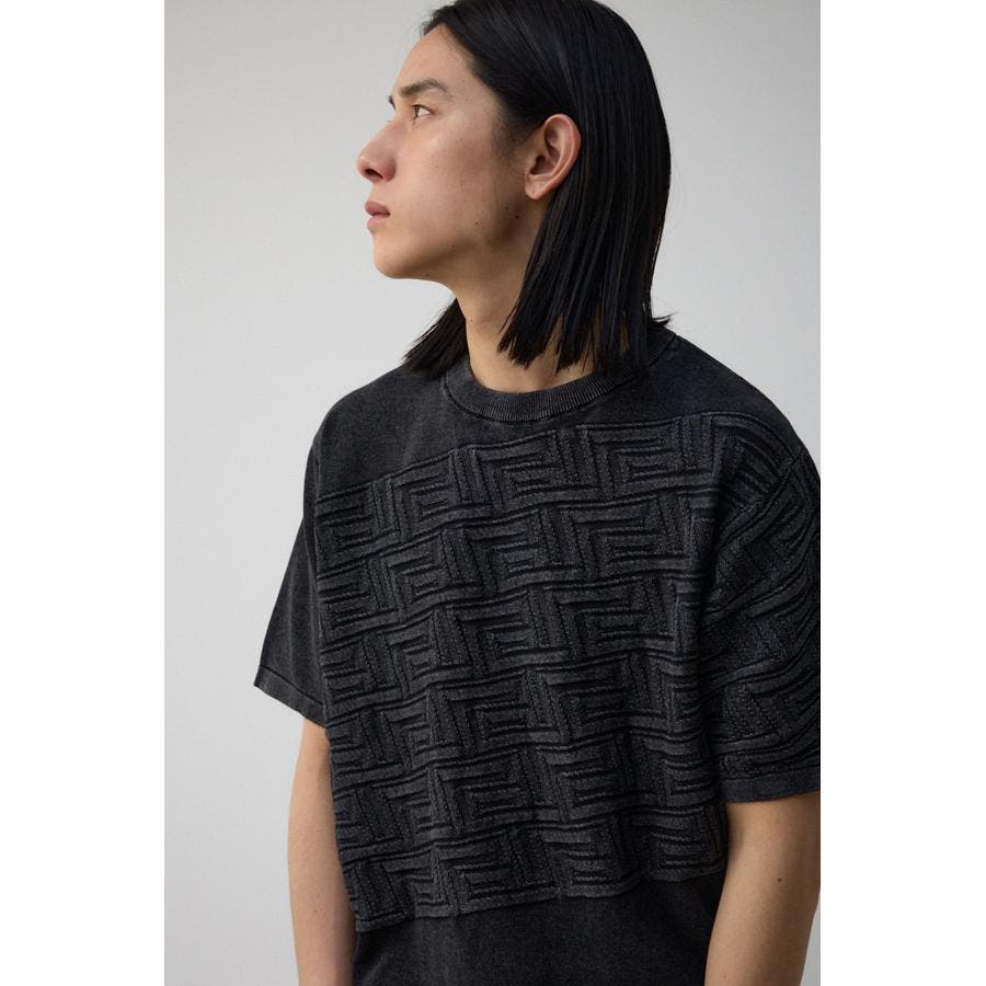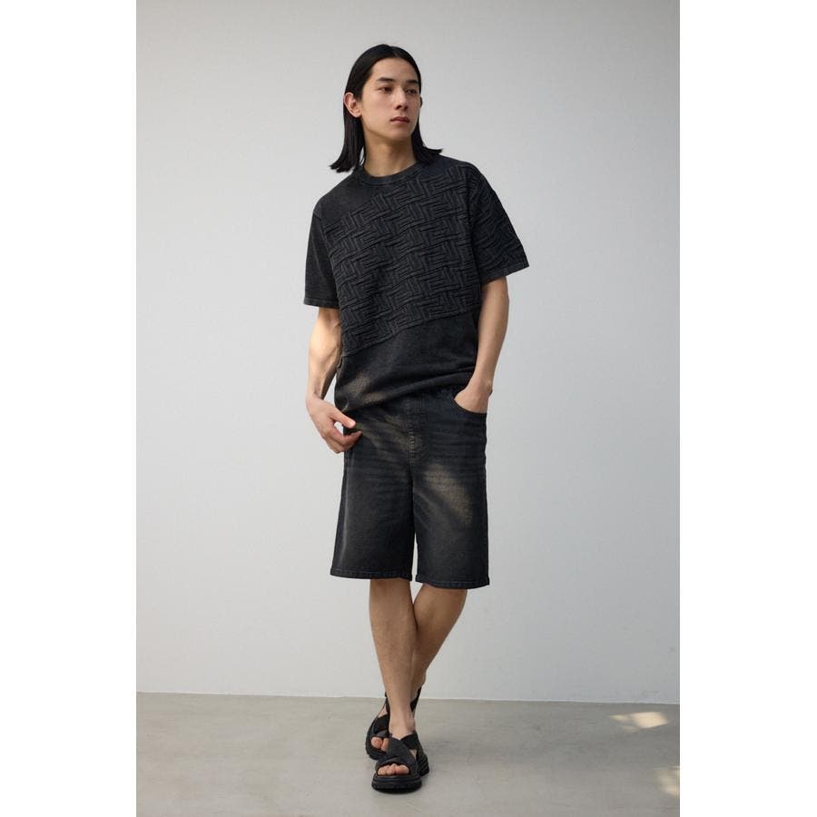 ・身頃上部のジャガード柄、ストーンウォッシュによる色落ち加工で、雰囲気のある一着に。