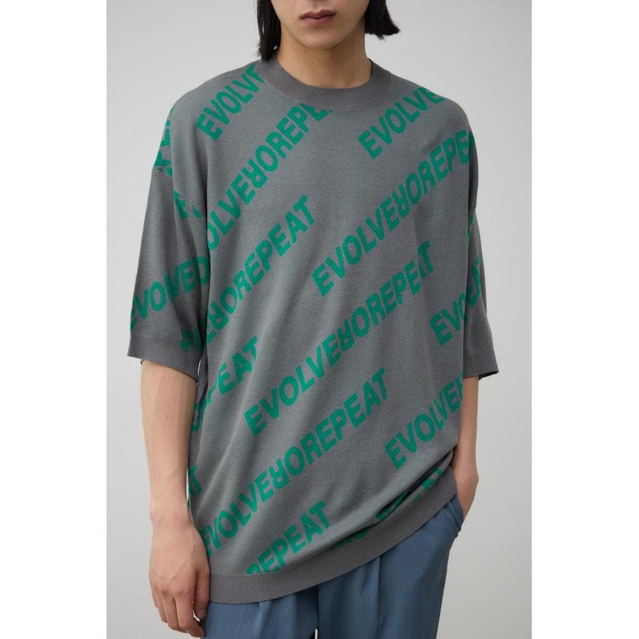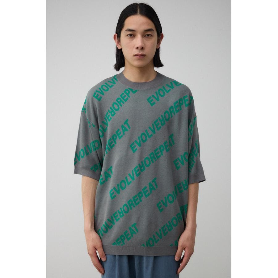 総柄ロゴジャガードビッグニットトップス