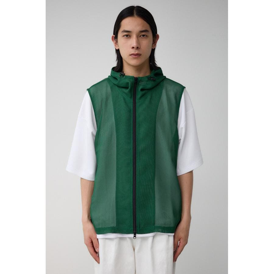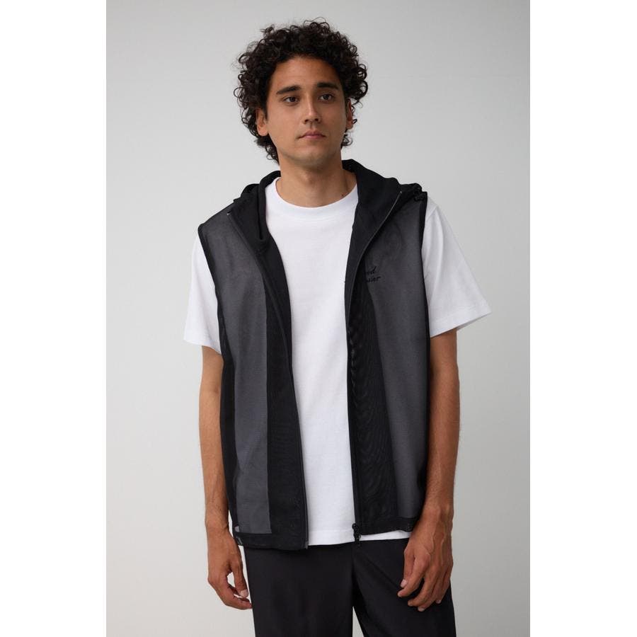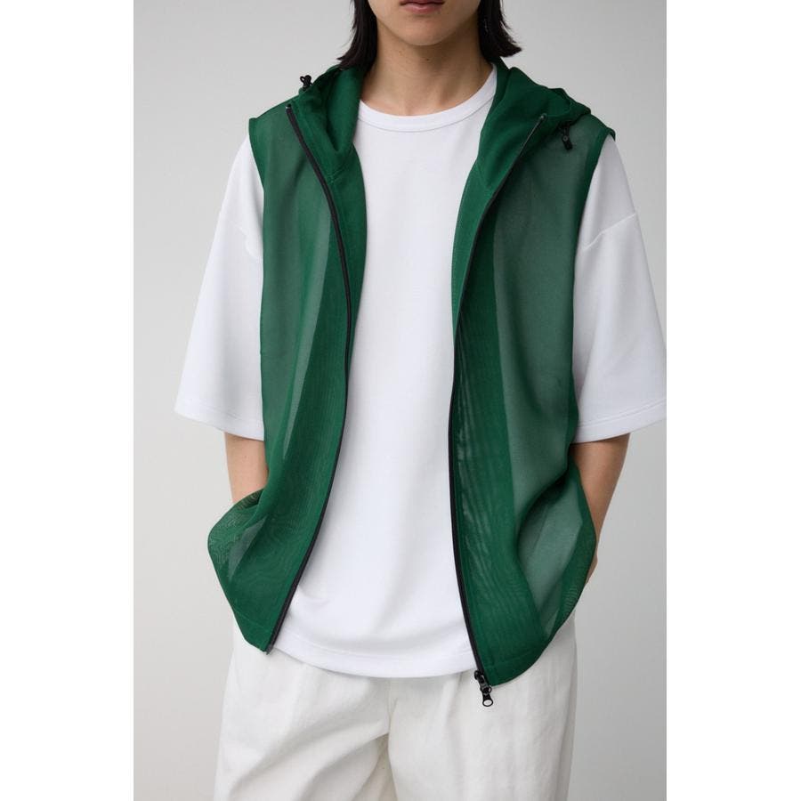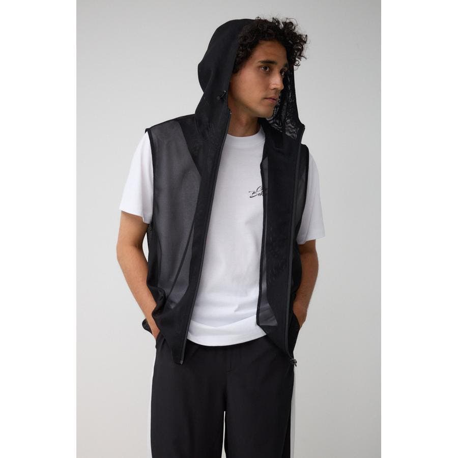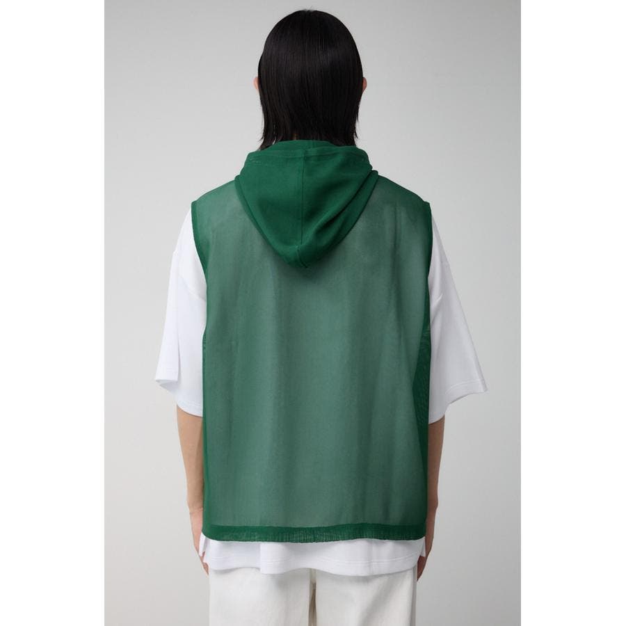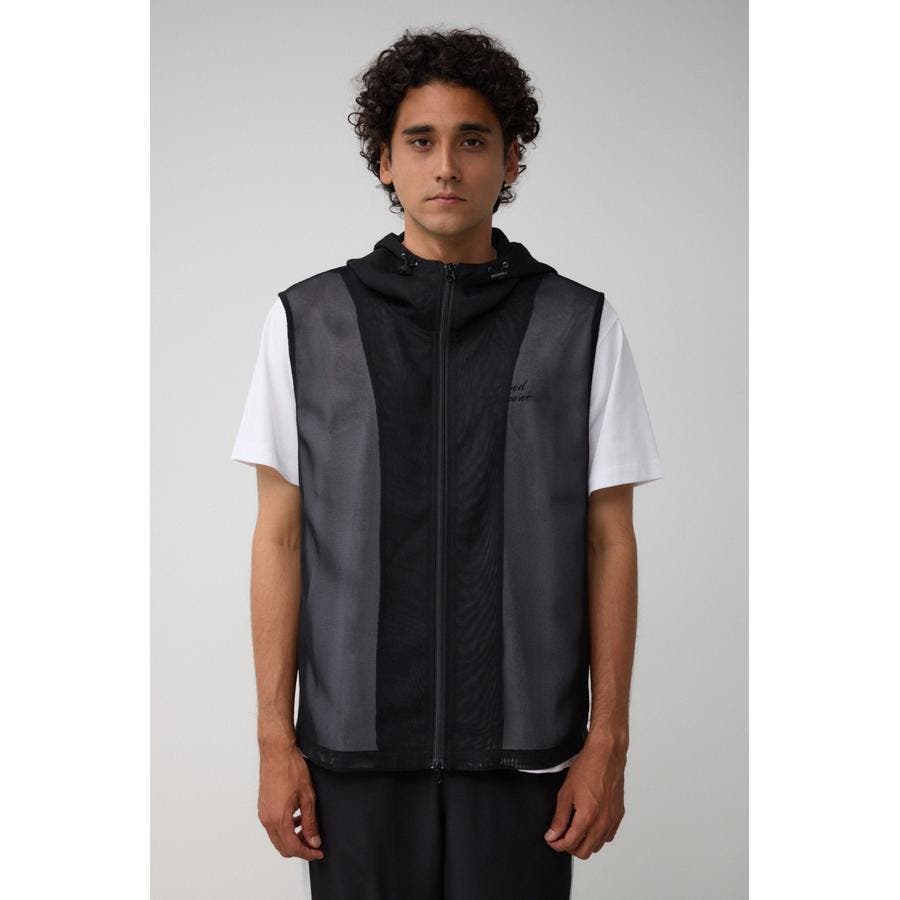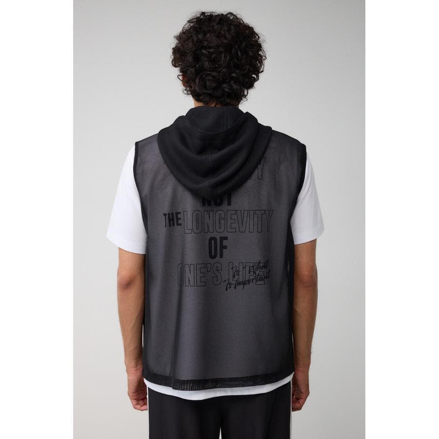 ■商品(デザイン)ポイント:透け感のあるフーディーベスト。