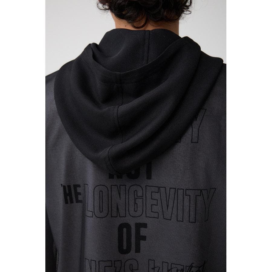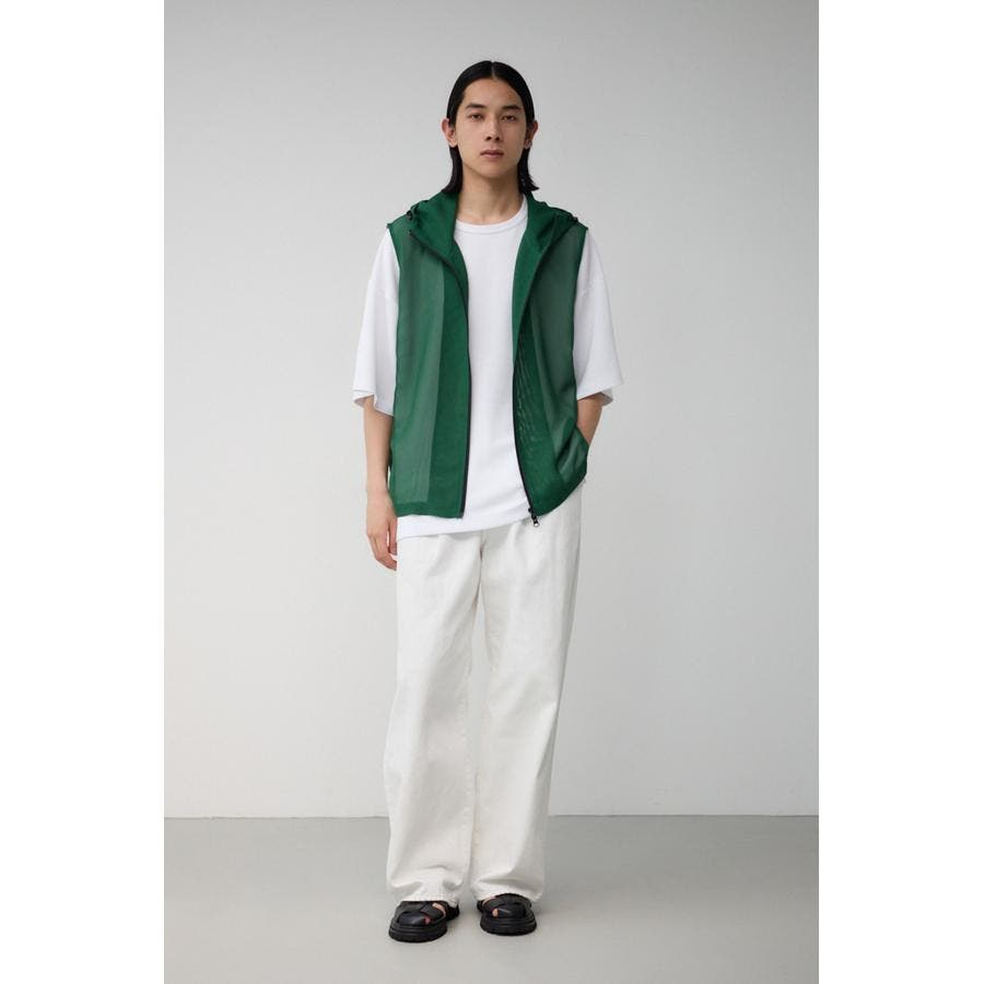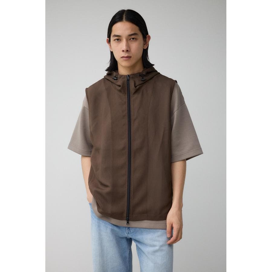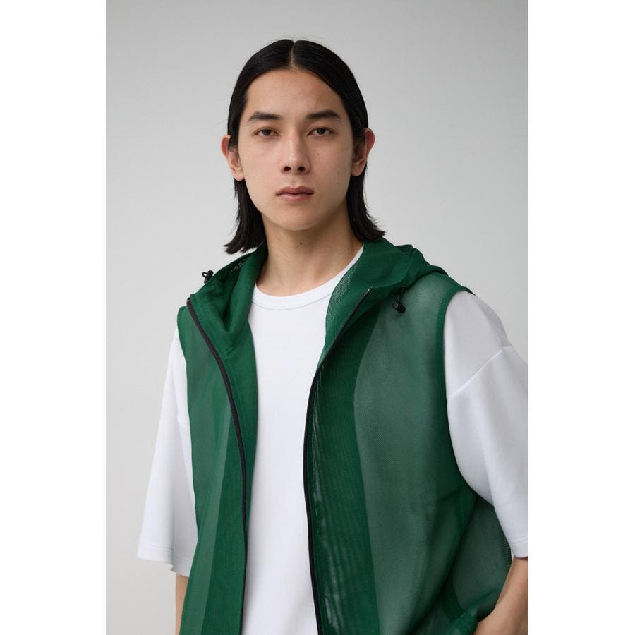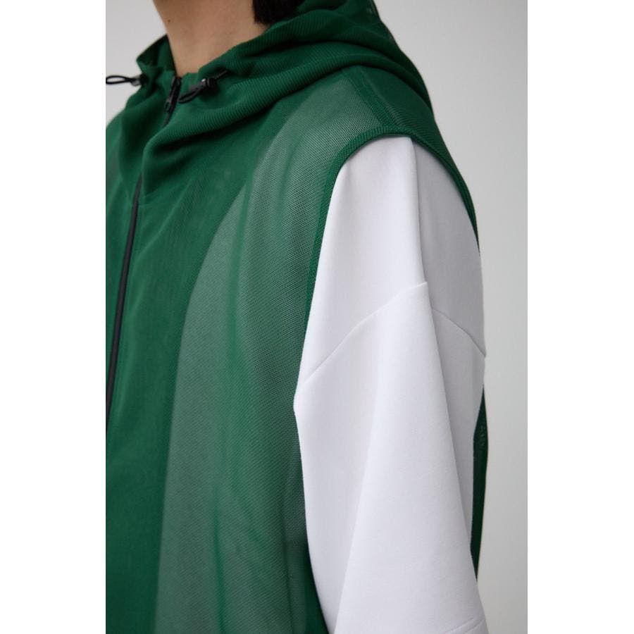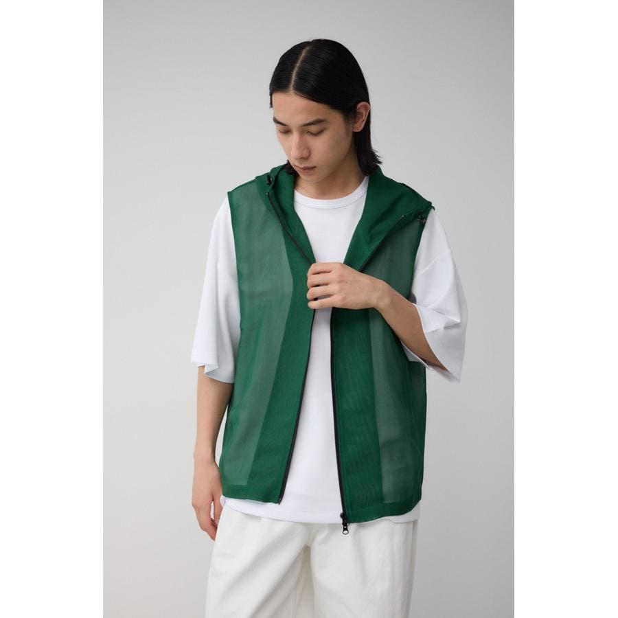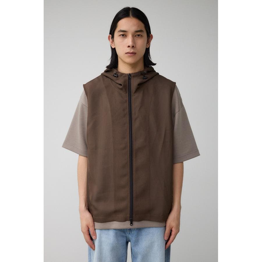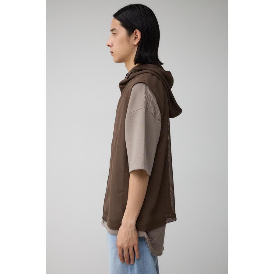■商品(デザイン)ポイント:透け感のあるフーディーベスト。