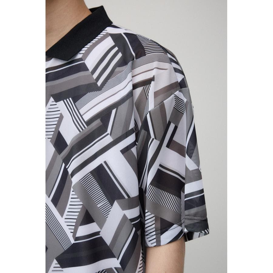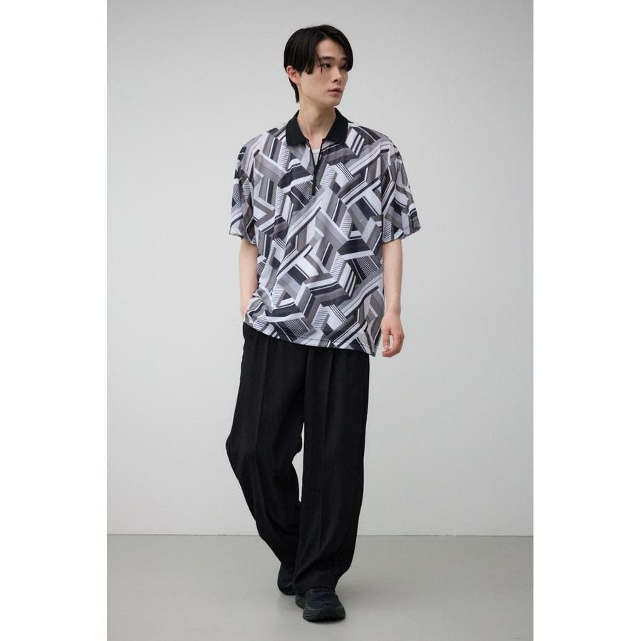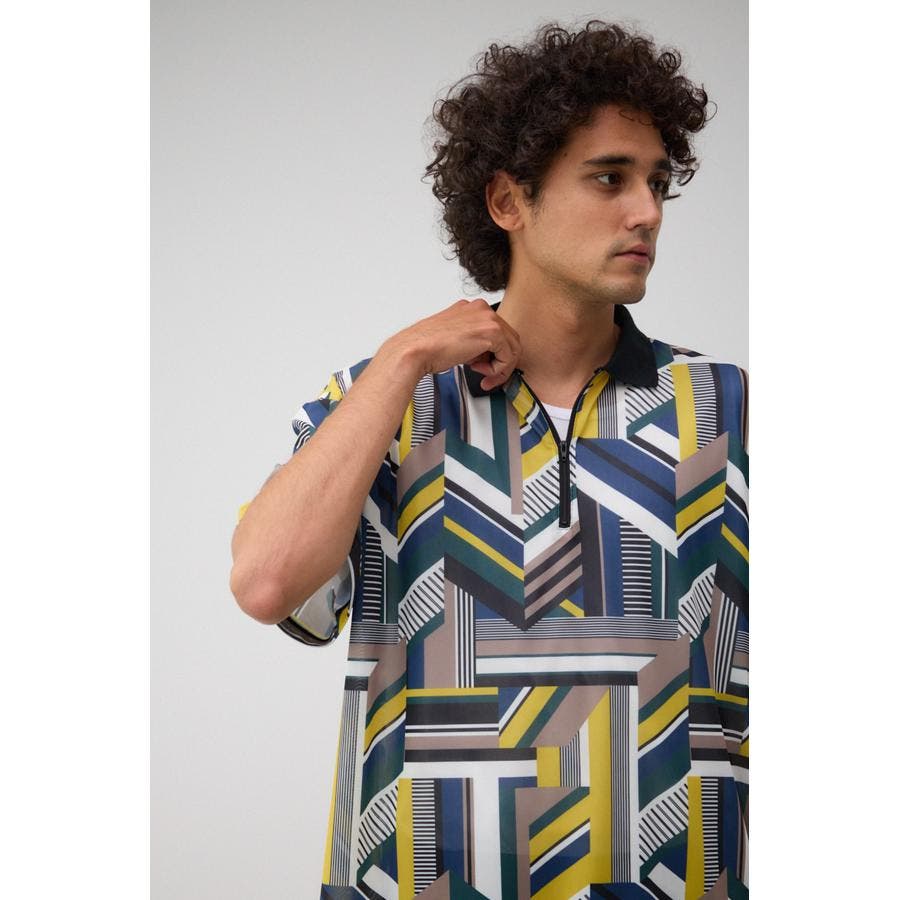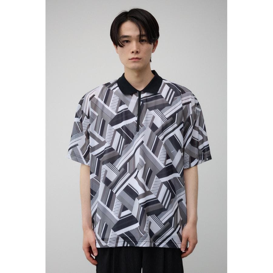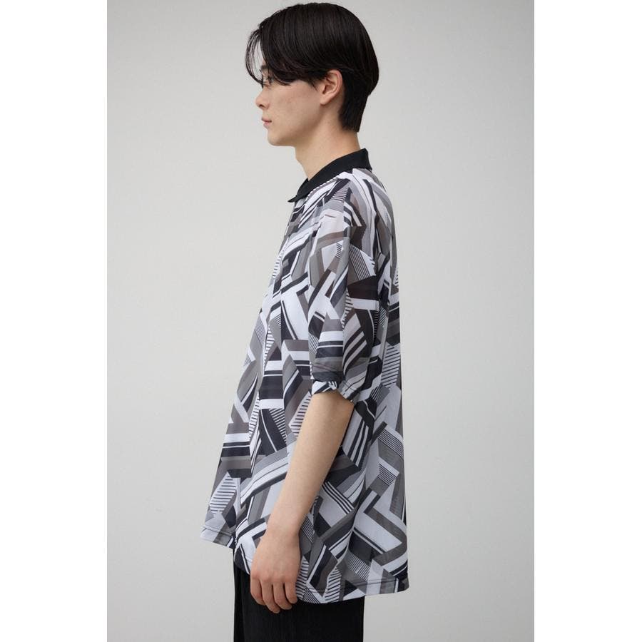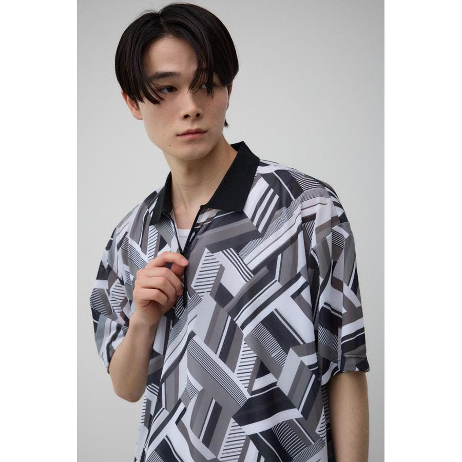 ■商品(デザイン)ポイント:幾何学模様がポイントのシアーポロシャツ。