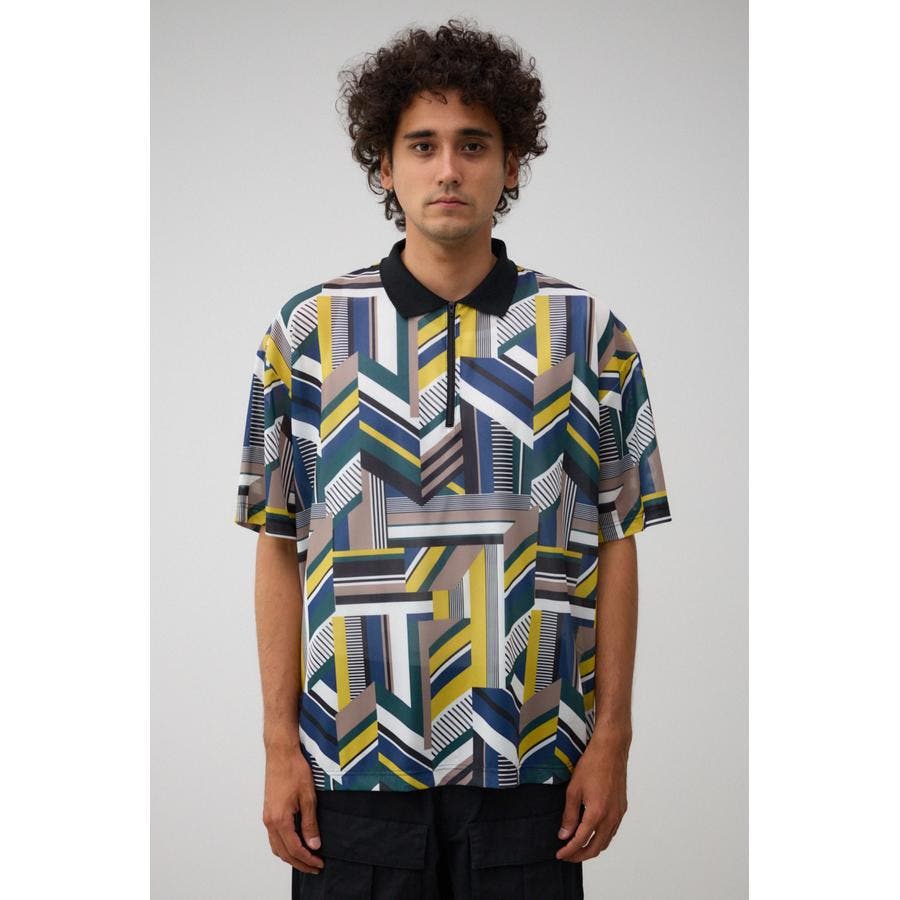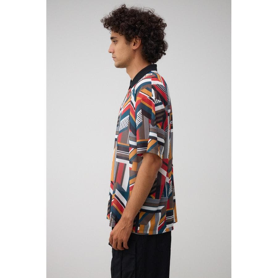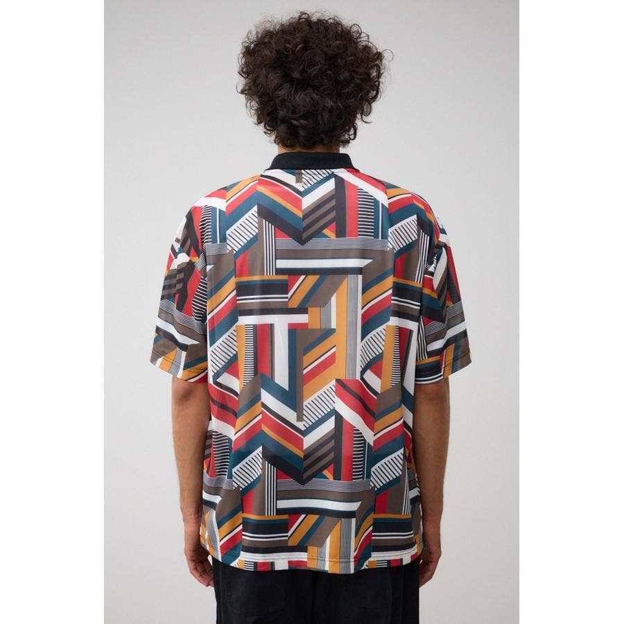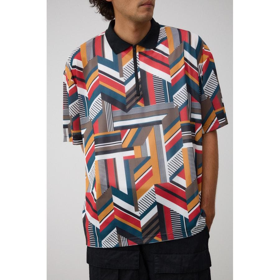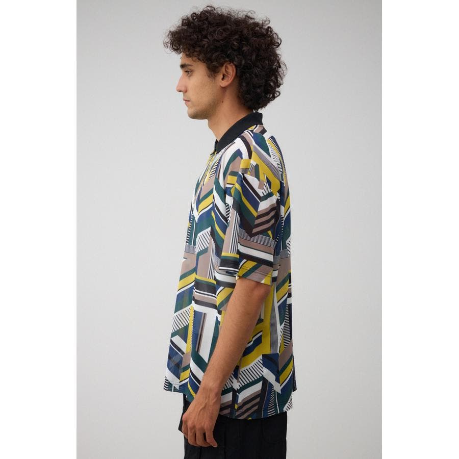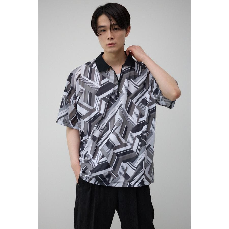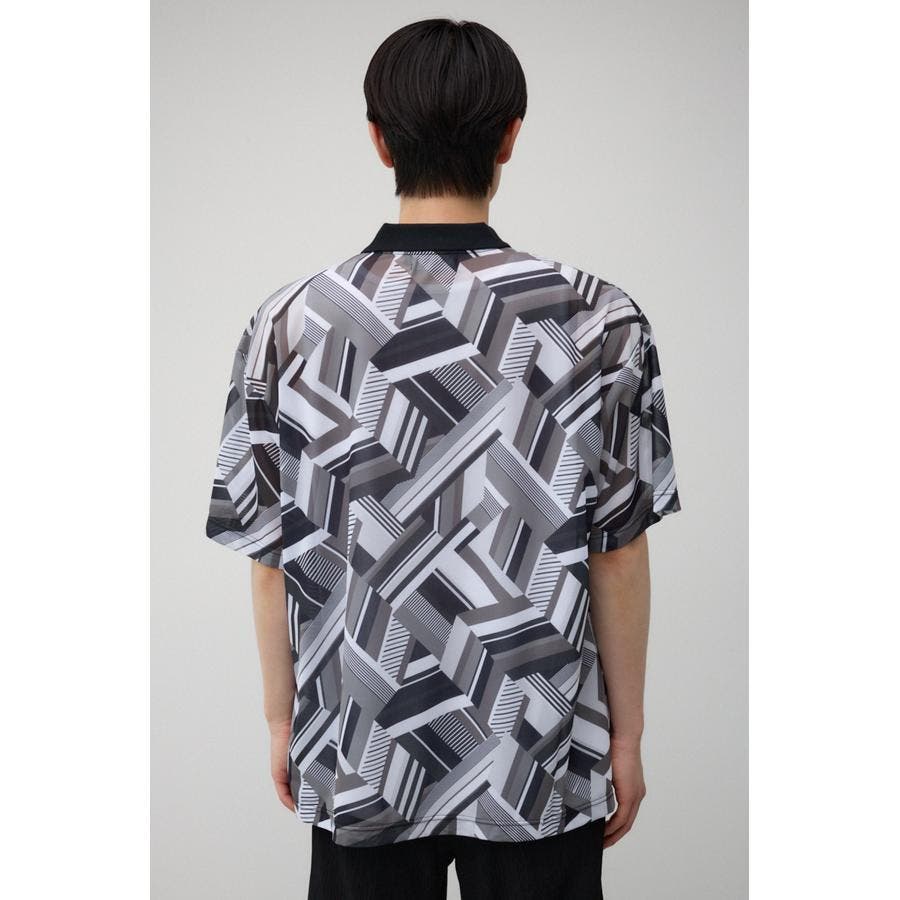 ■商品(デザイン)ポイント:幾何学模様がポイントのシアーポロシャツ。