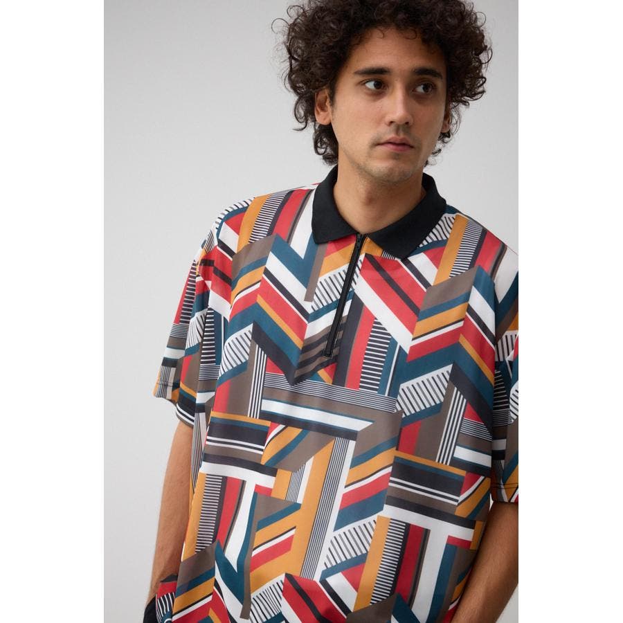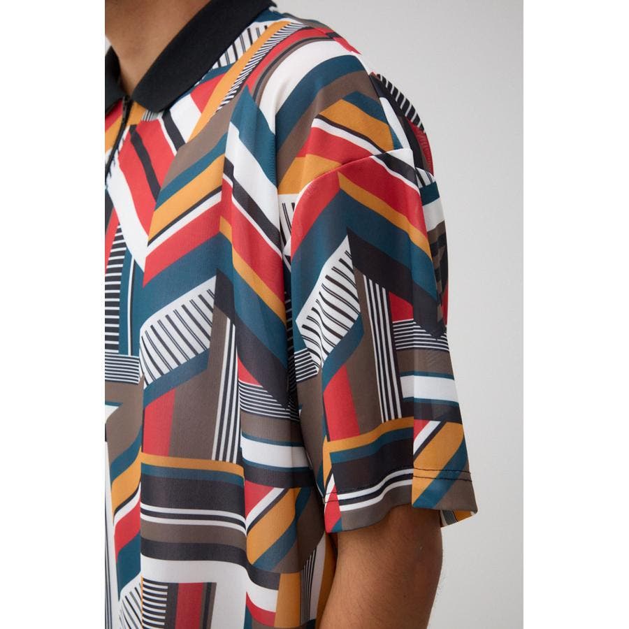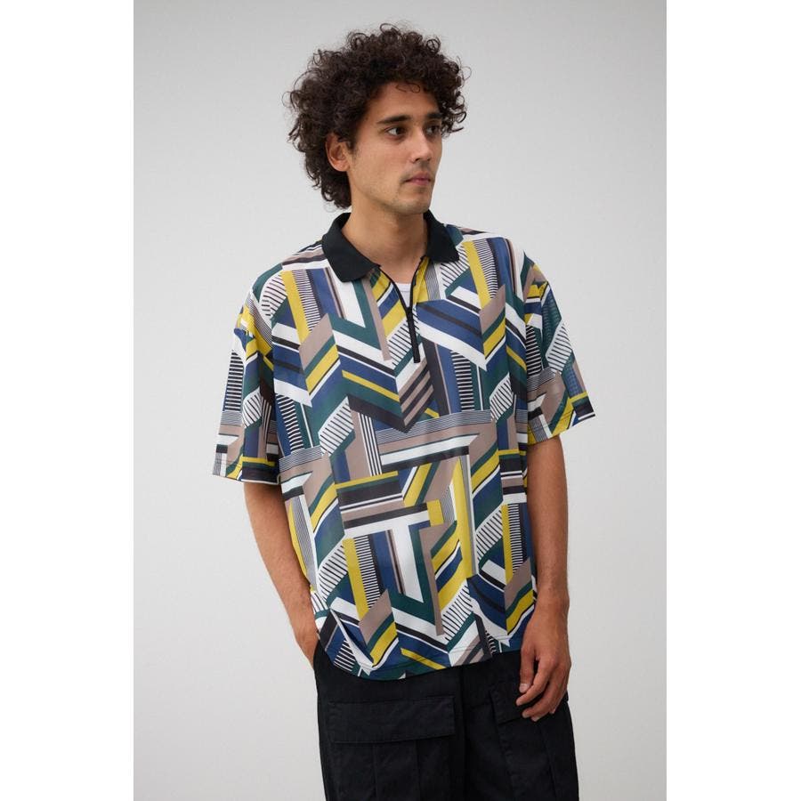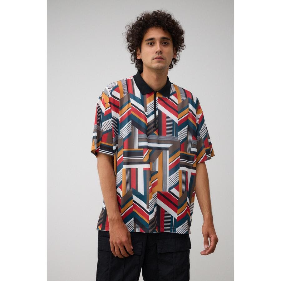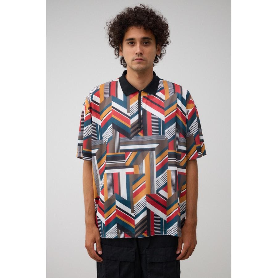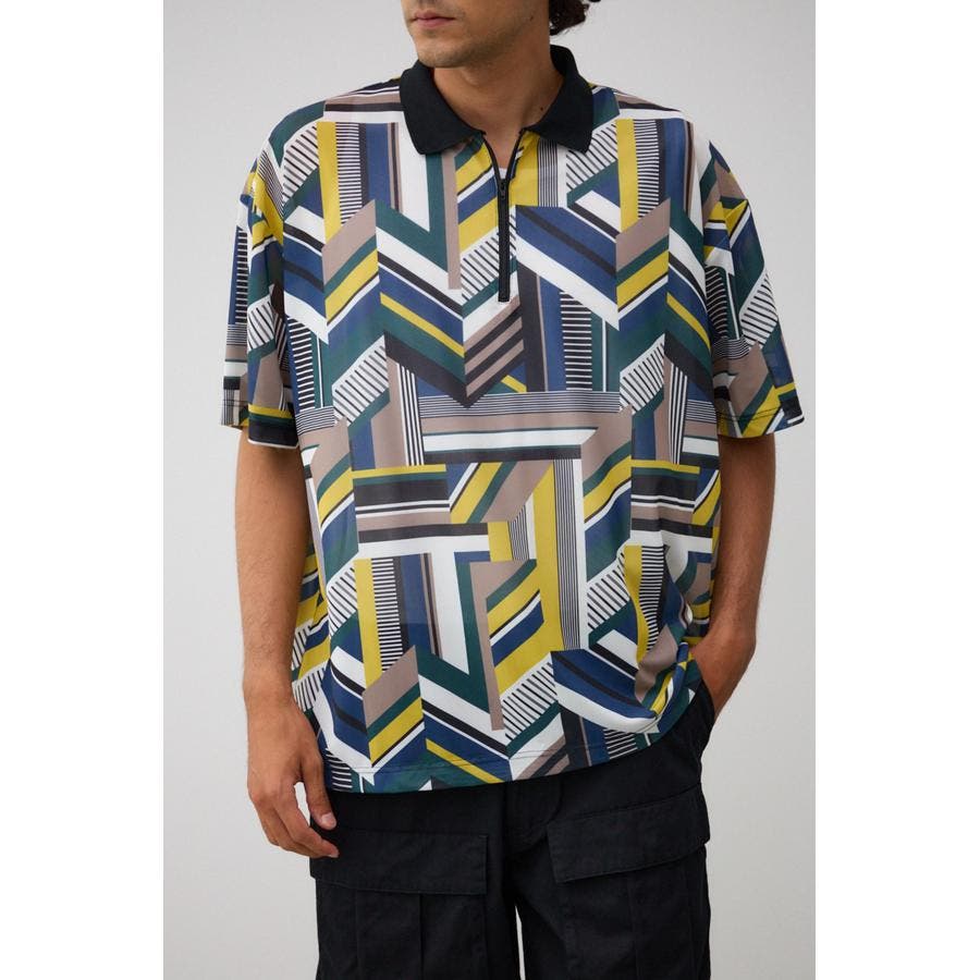 ■商品(デザイン)ポイント:幾何学模様がポイントのシアーポロシャツ。