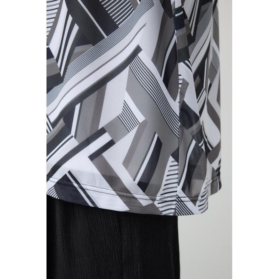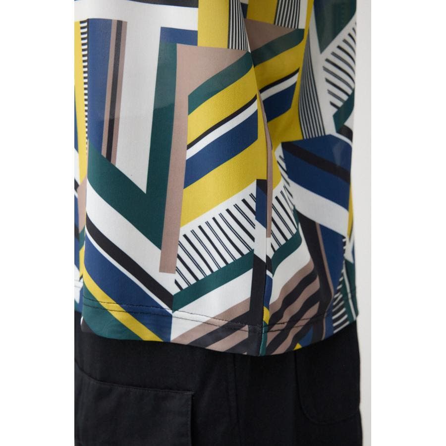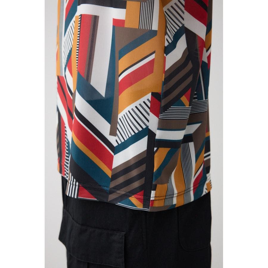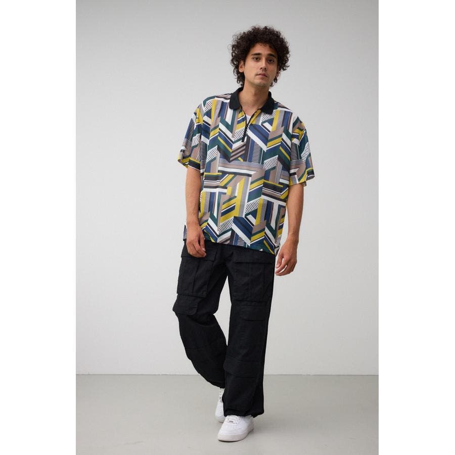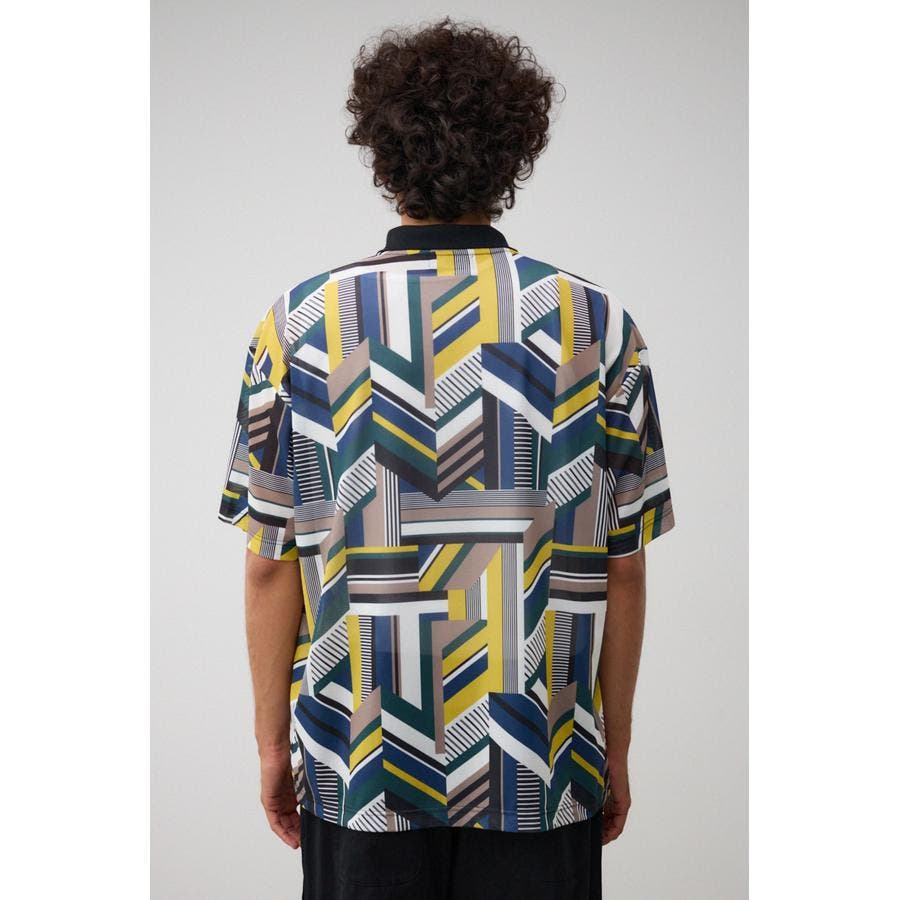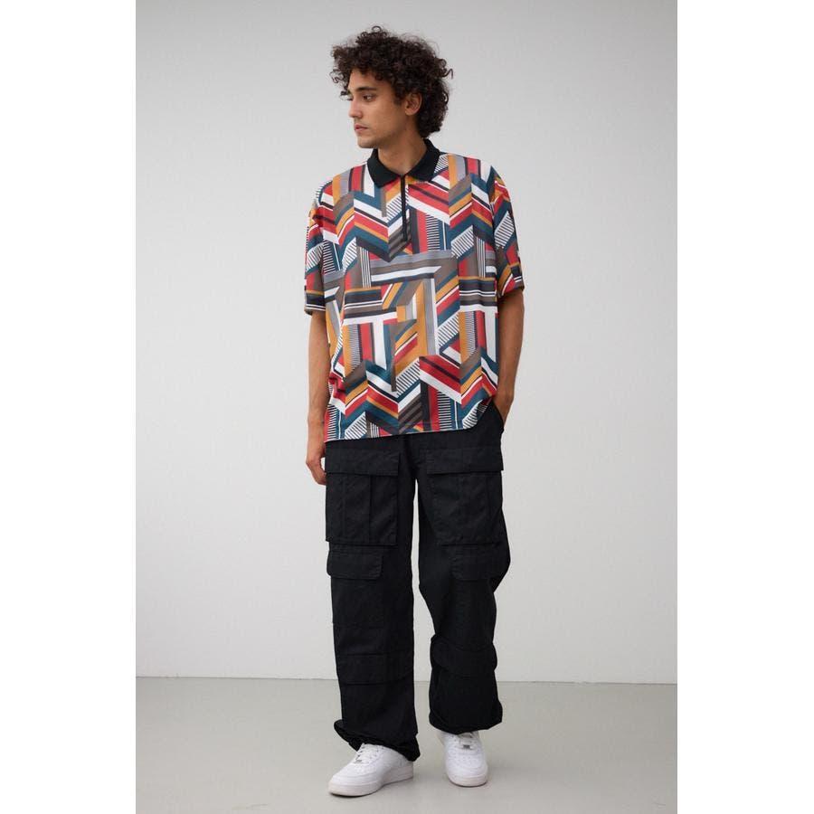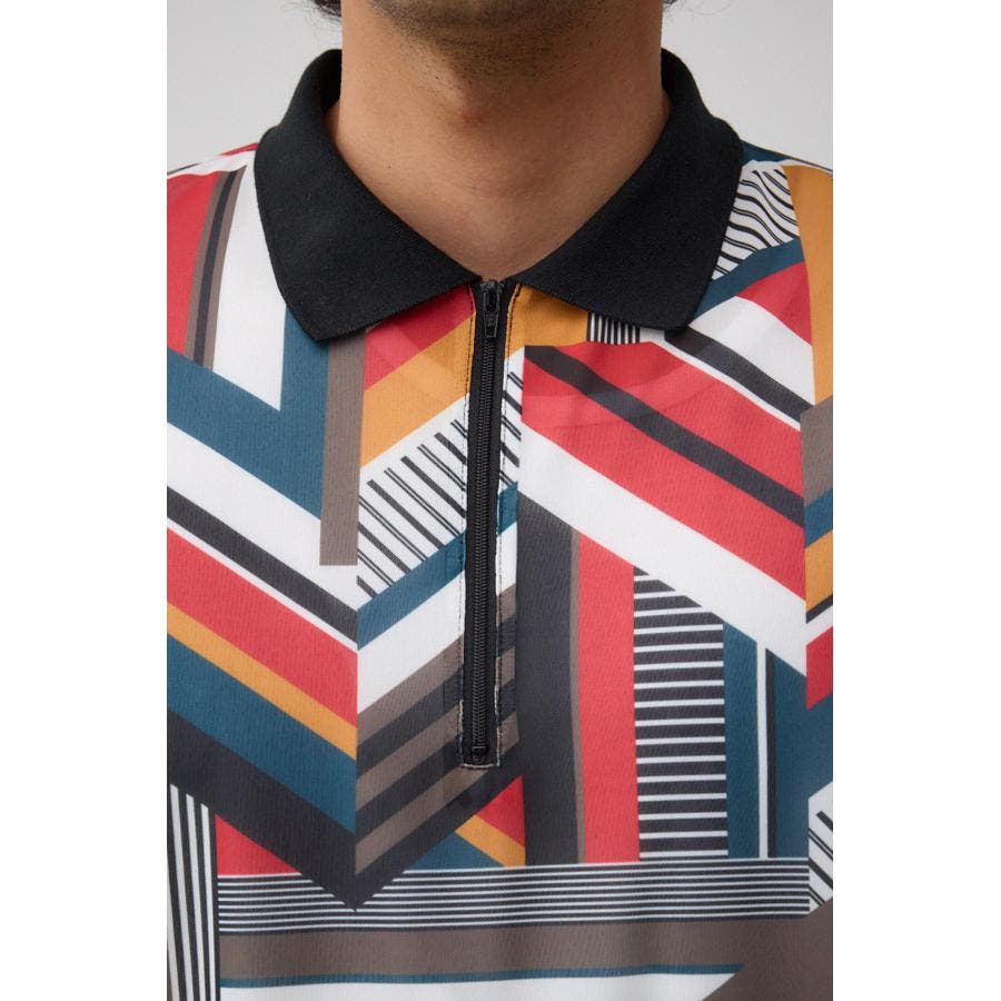 ■商品(デザイン)ポイント:幾何学模様がポイントのシアーポロシャツ。