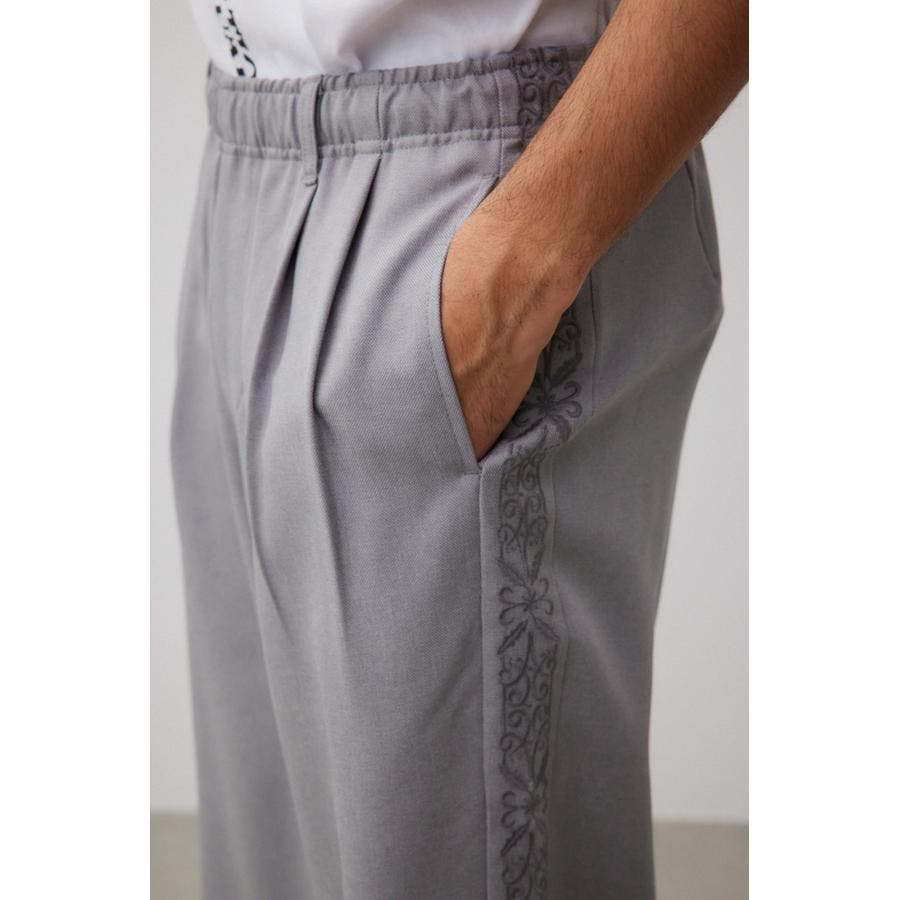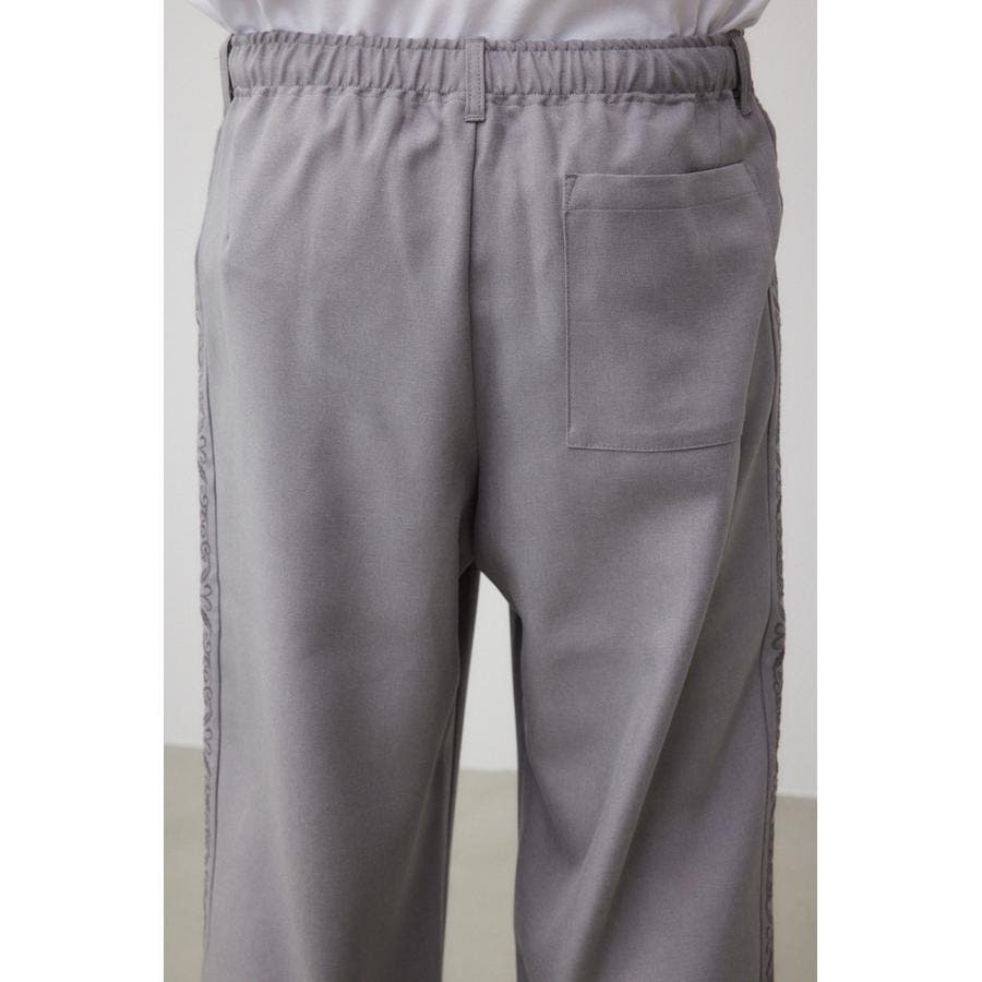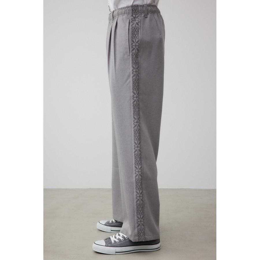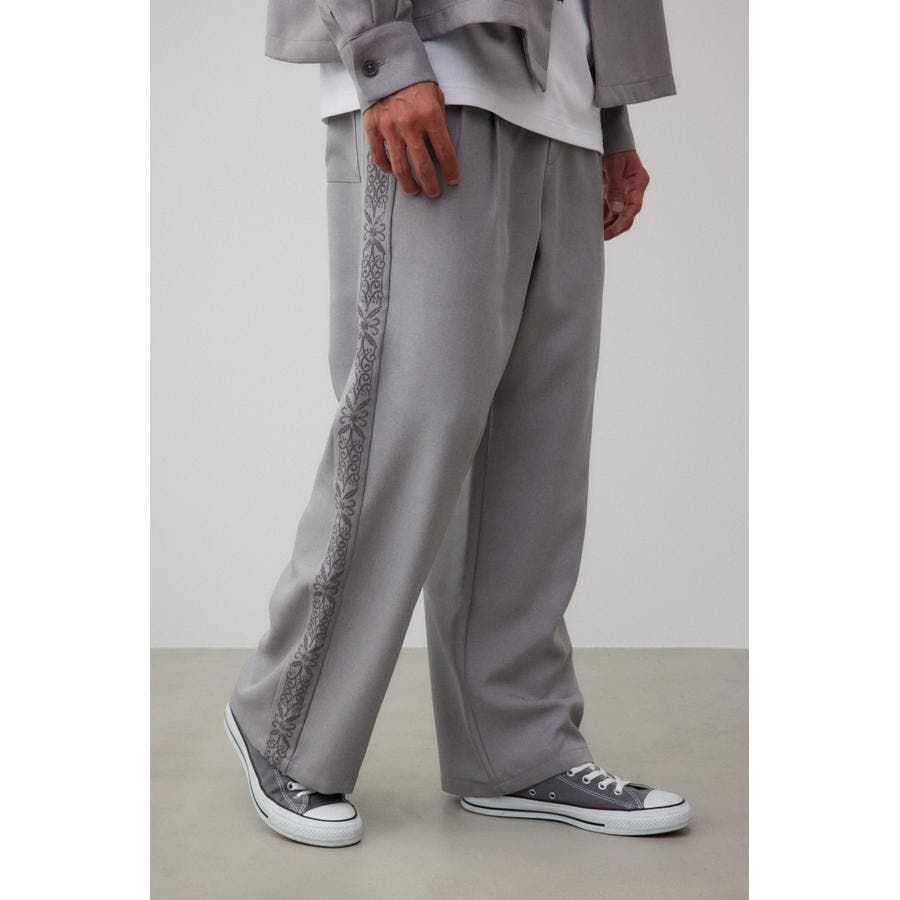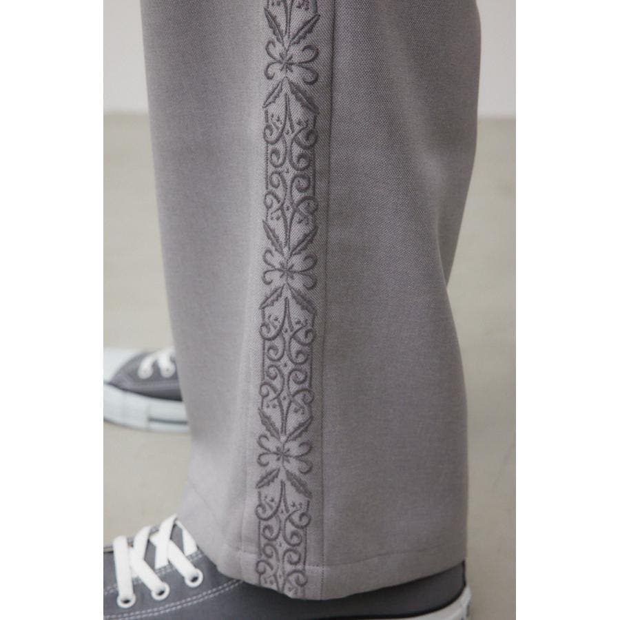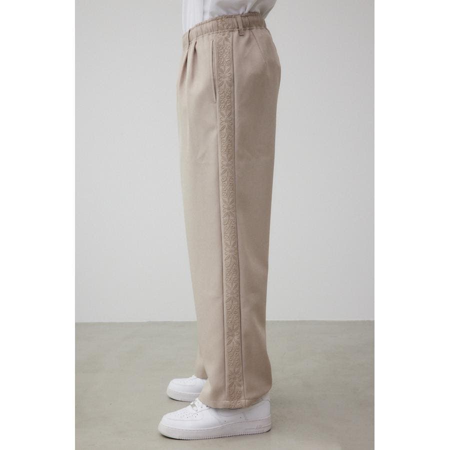 ・サイドに刺繍のラインが入ったワイドパンツ。