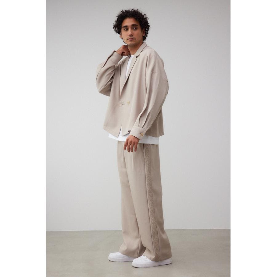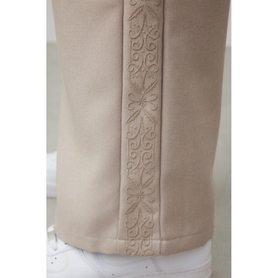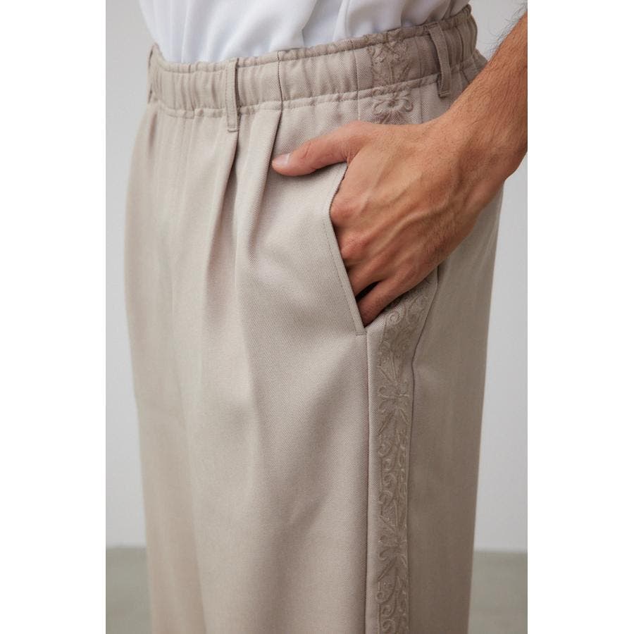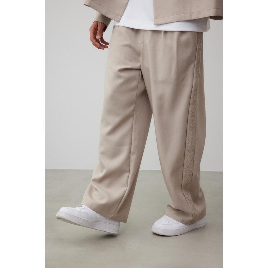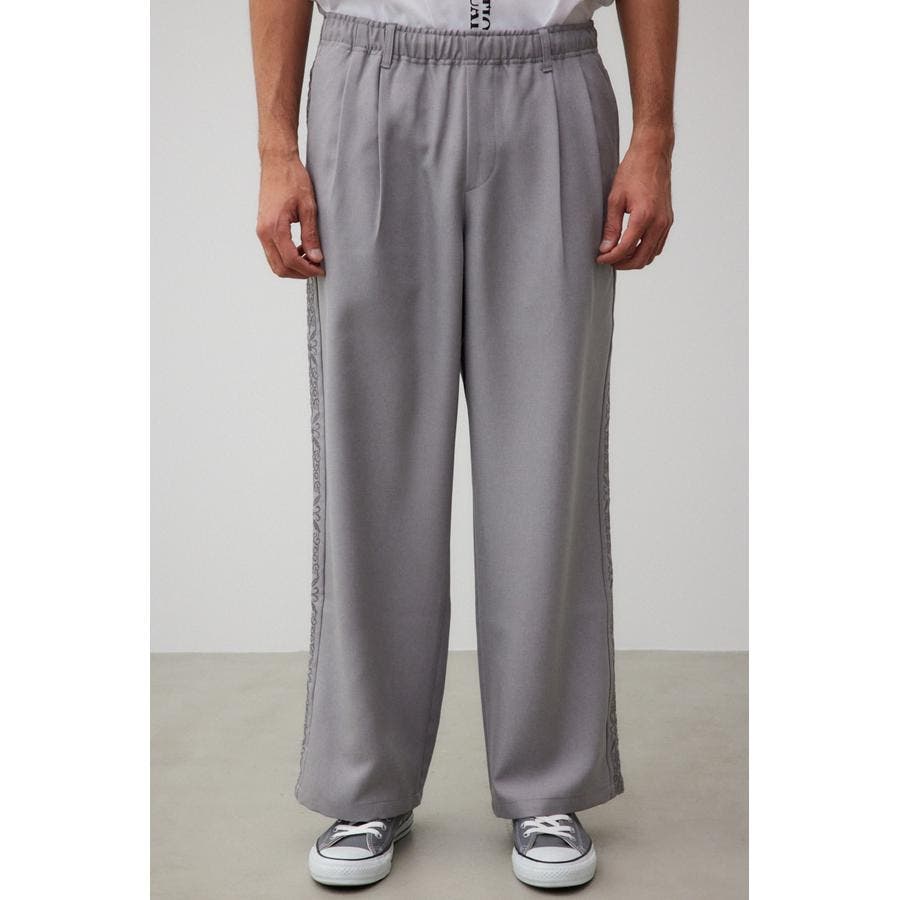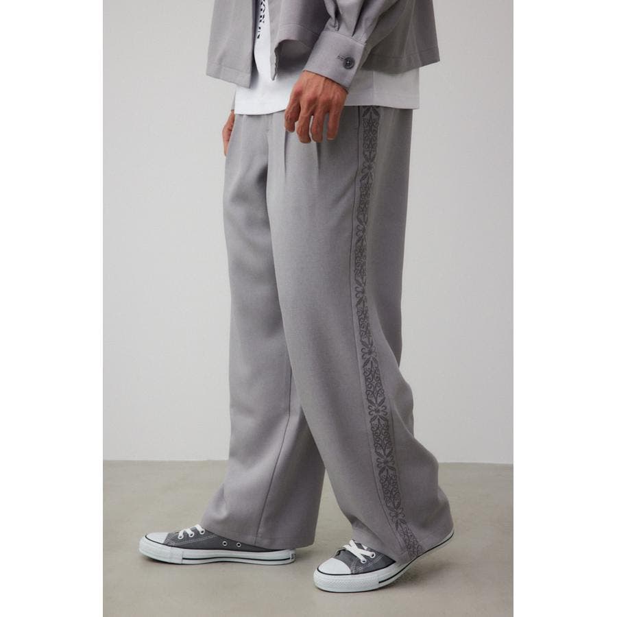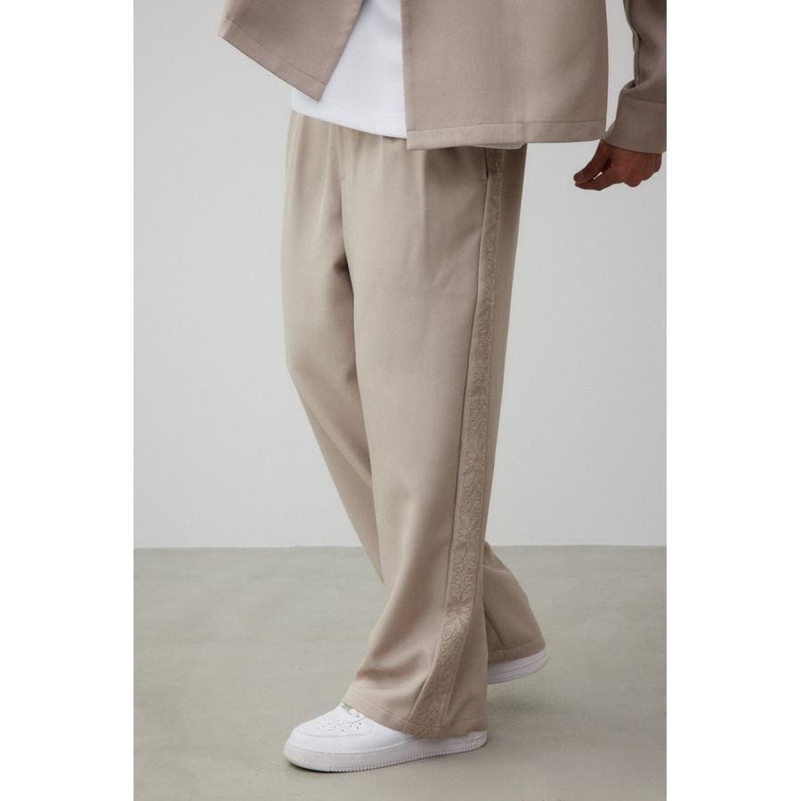 ・サイドに刺繍のラインが入ったワイドパンツ。