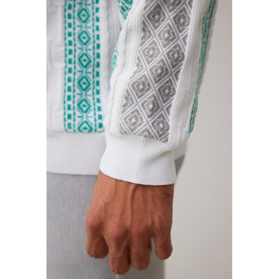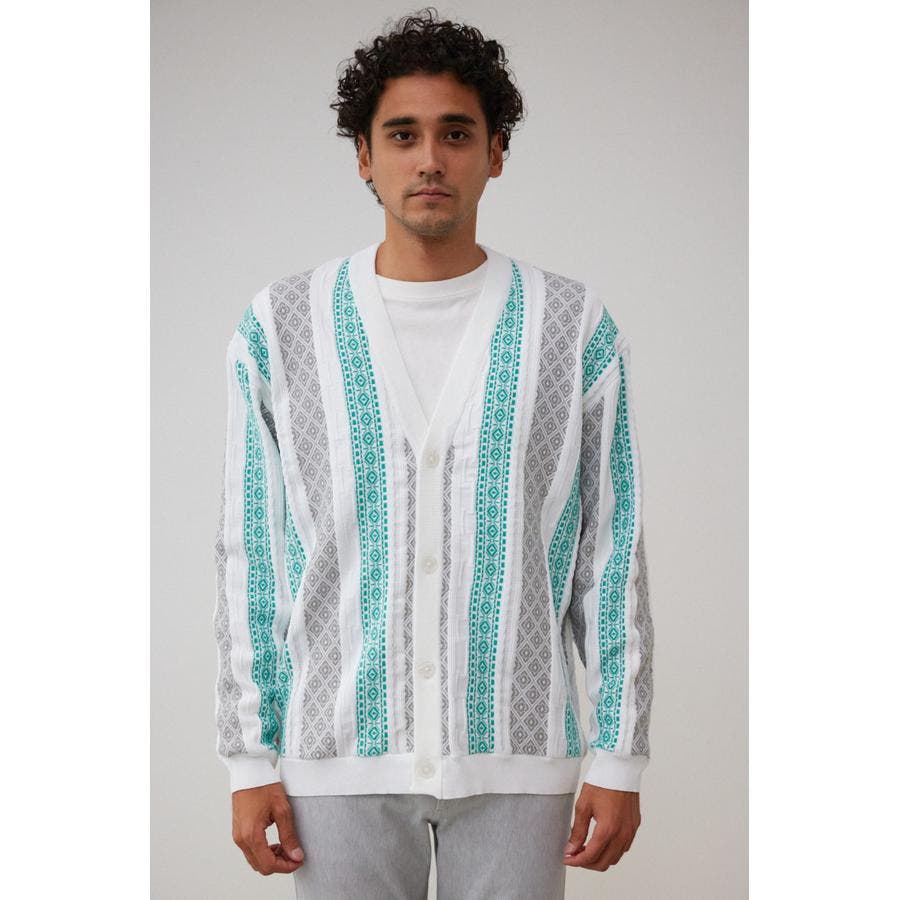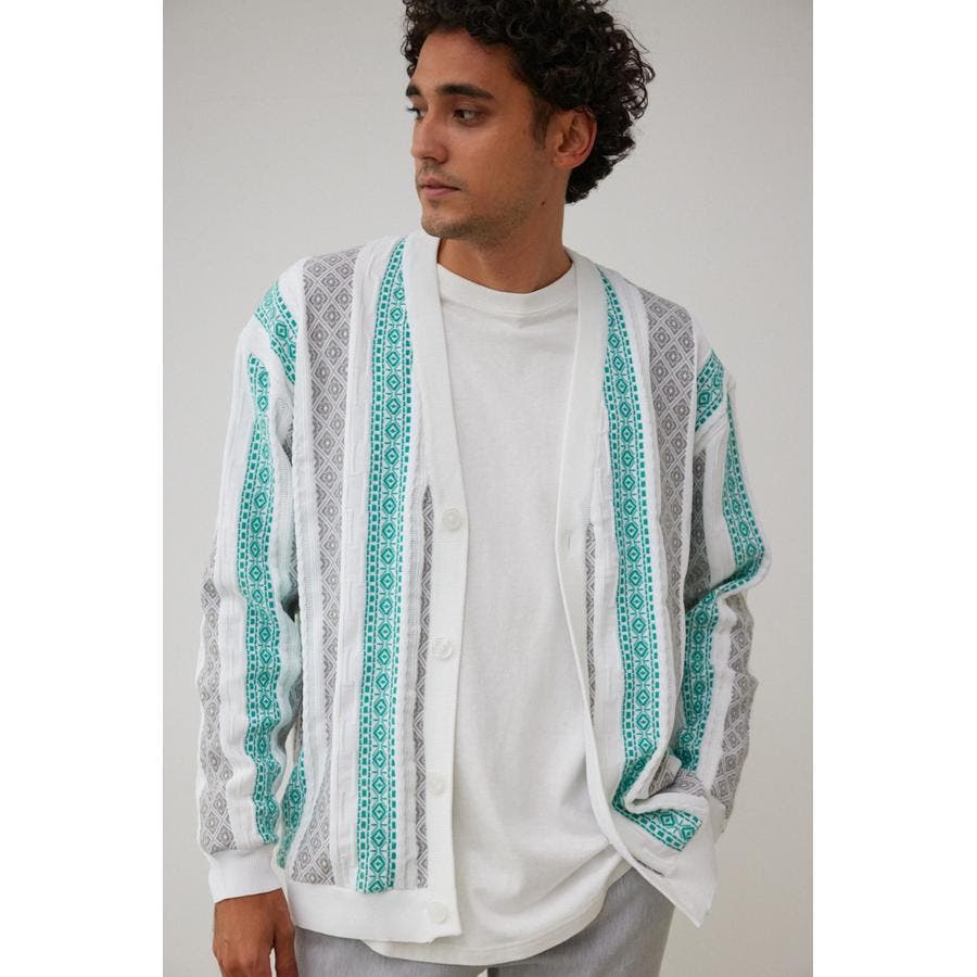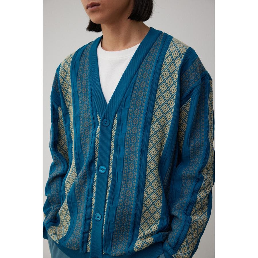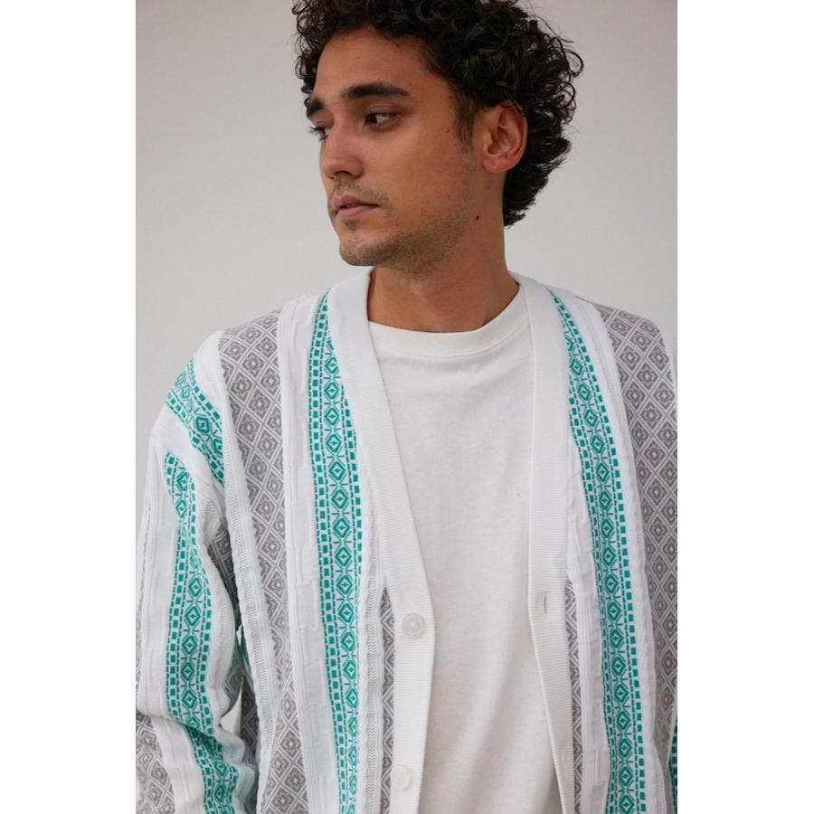 ・立体的な編み方が特徴的なジャガードカーディガン。