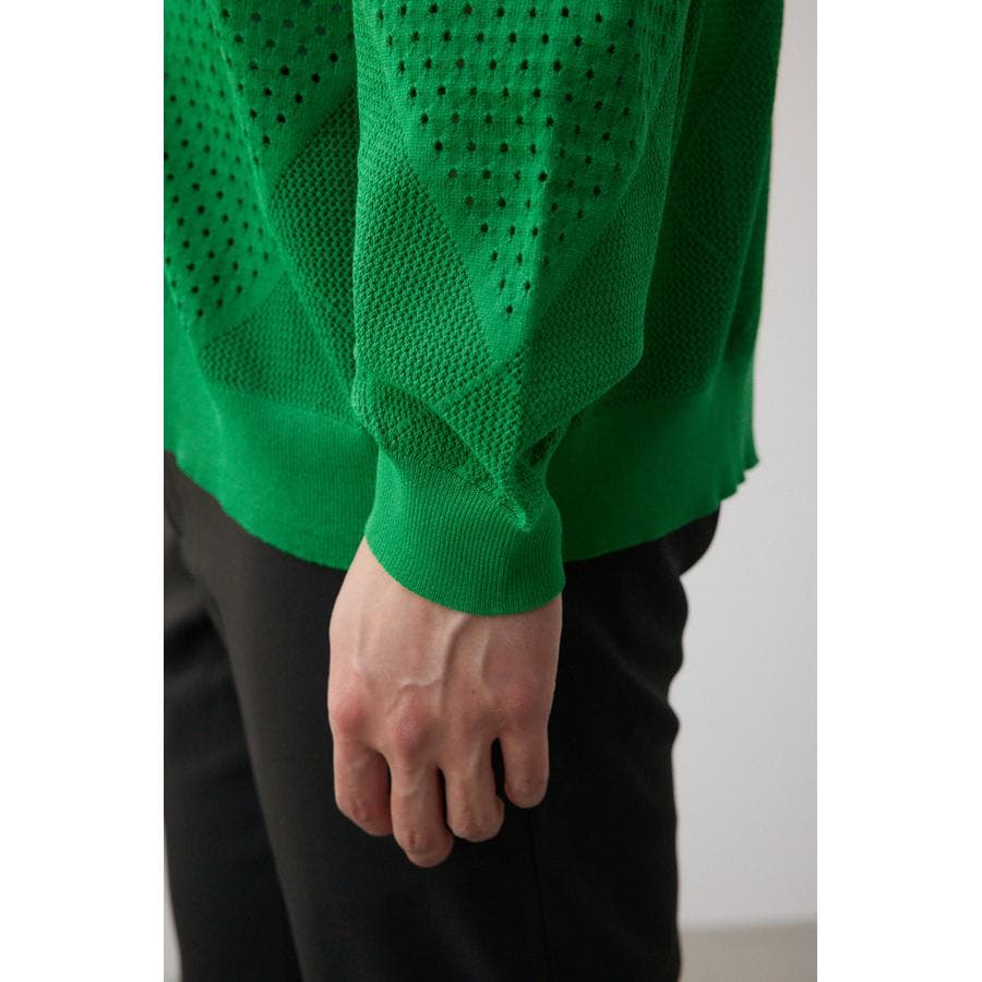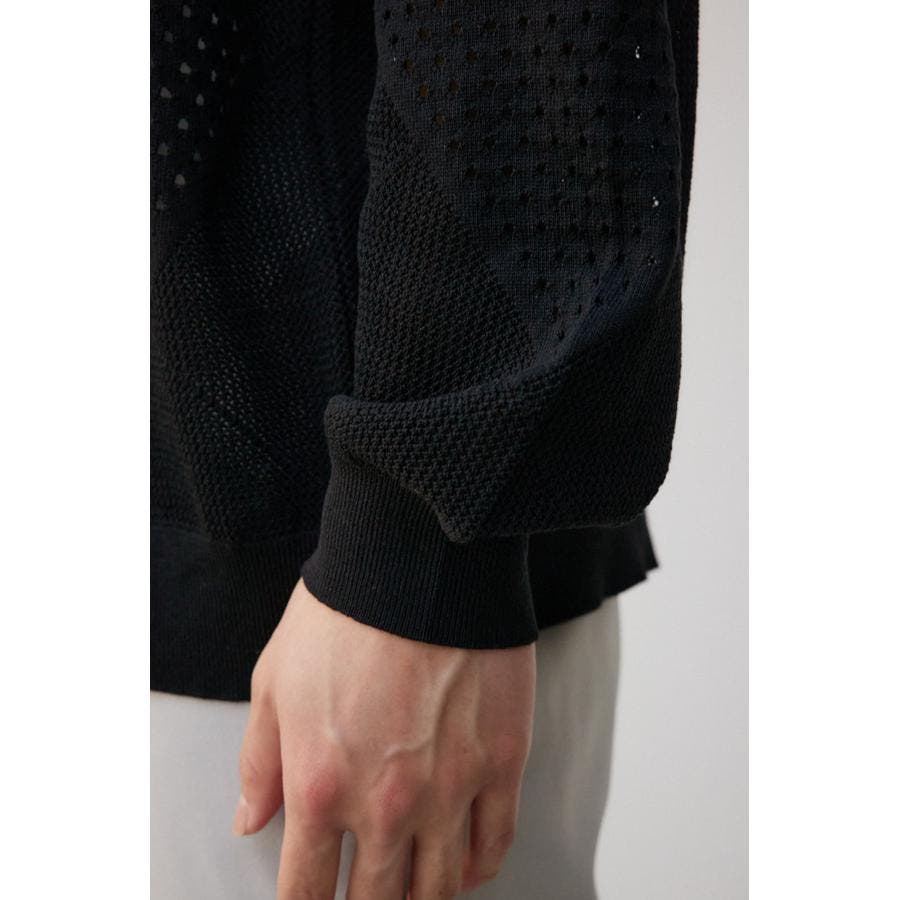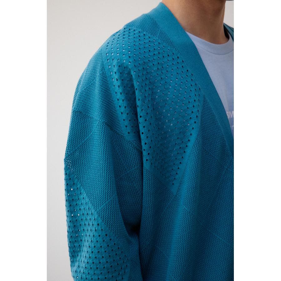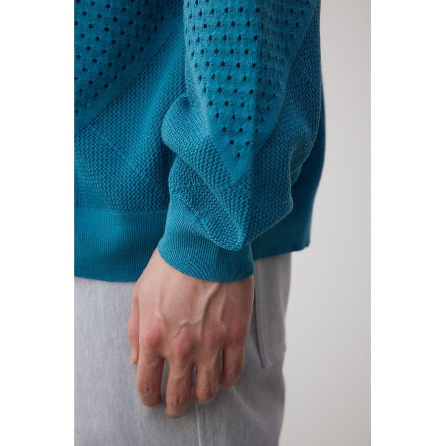 ・スポンジの様な軽さと風合いが特徴の糸を使用し、ダイヤの形に透かし編みを施しています。