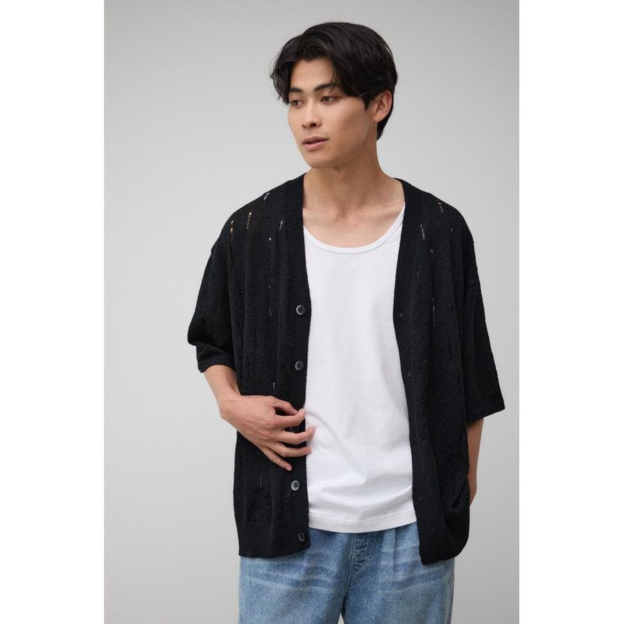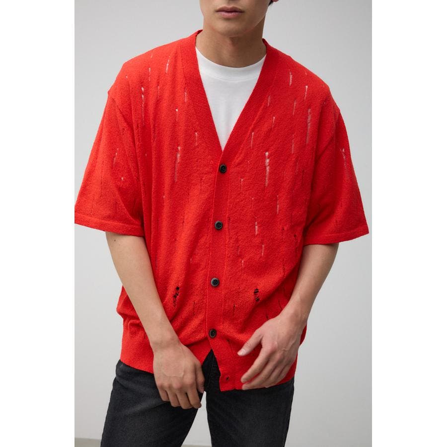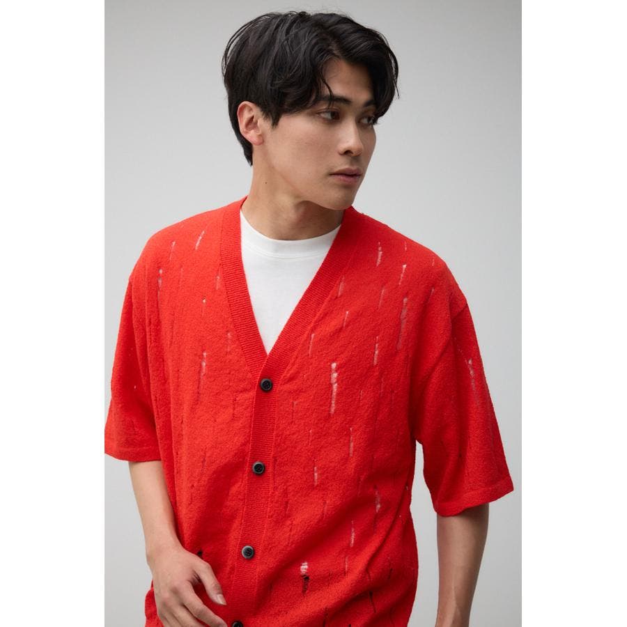 ■商品(デザイン)ポイント:ダメージ感がポイントの半袖カーディガン。