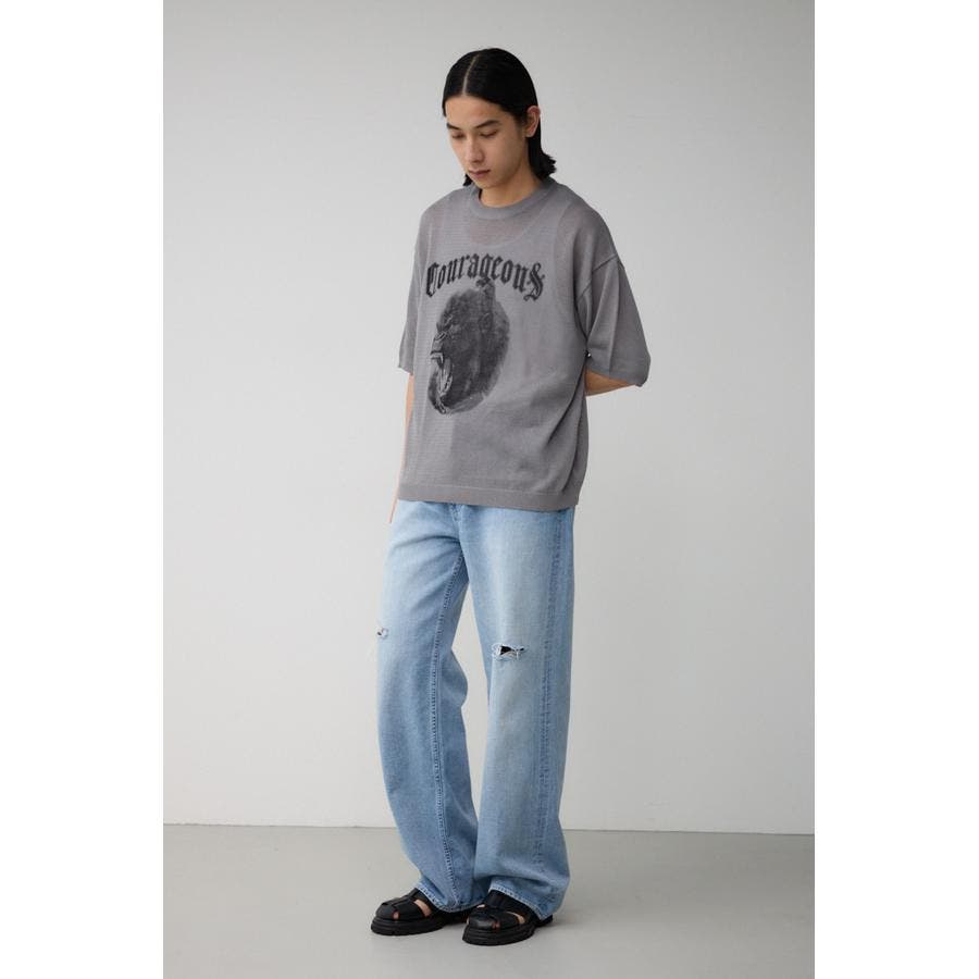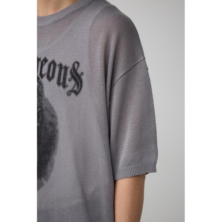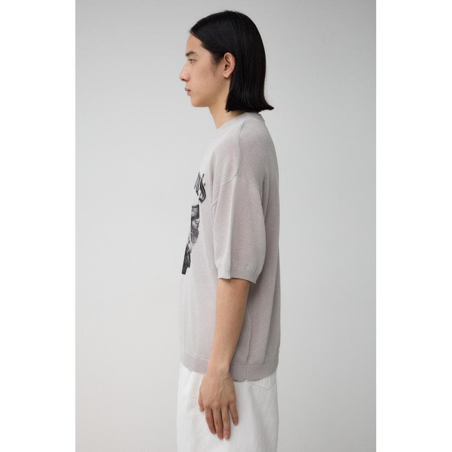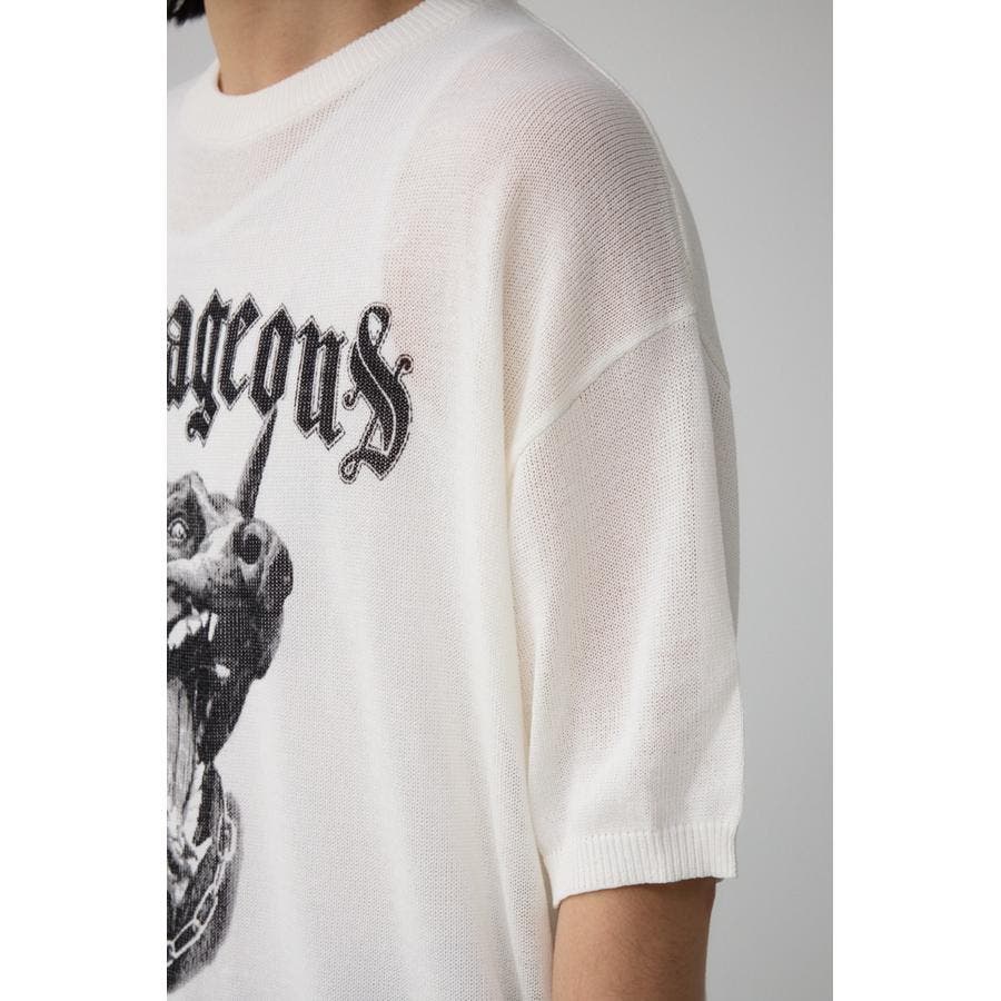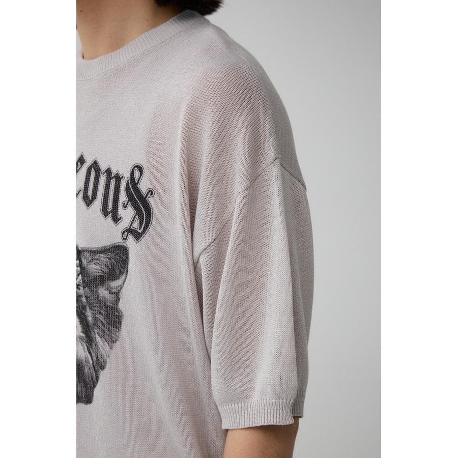 ■商品ディティール:薄手のニットを使用し、夏でも快適に過ごせるアイテムに。フロントの力強い動物グラフィックがポイント。