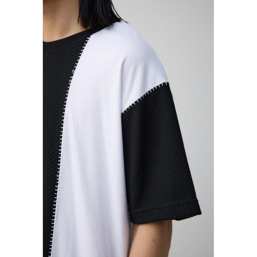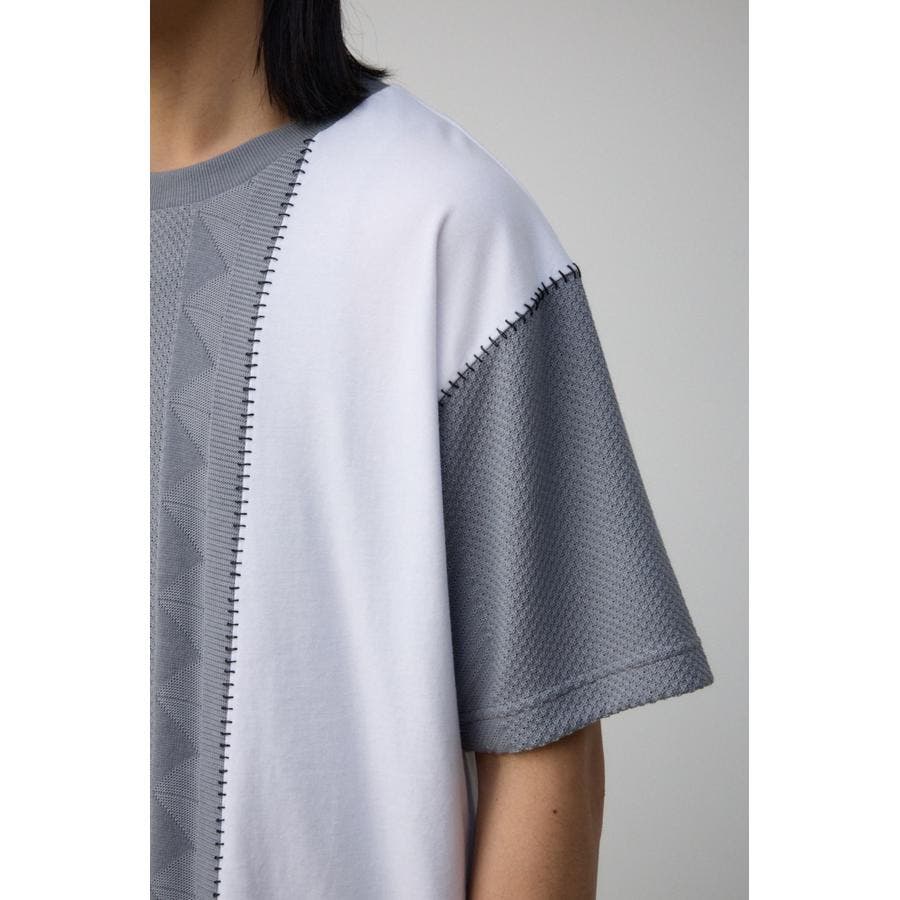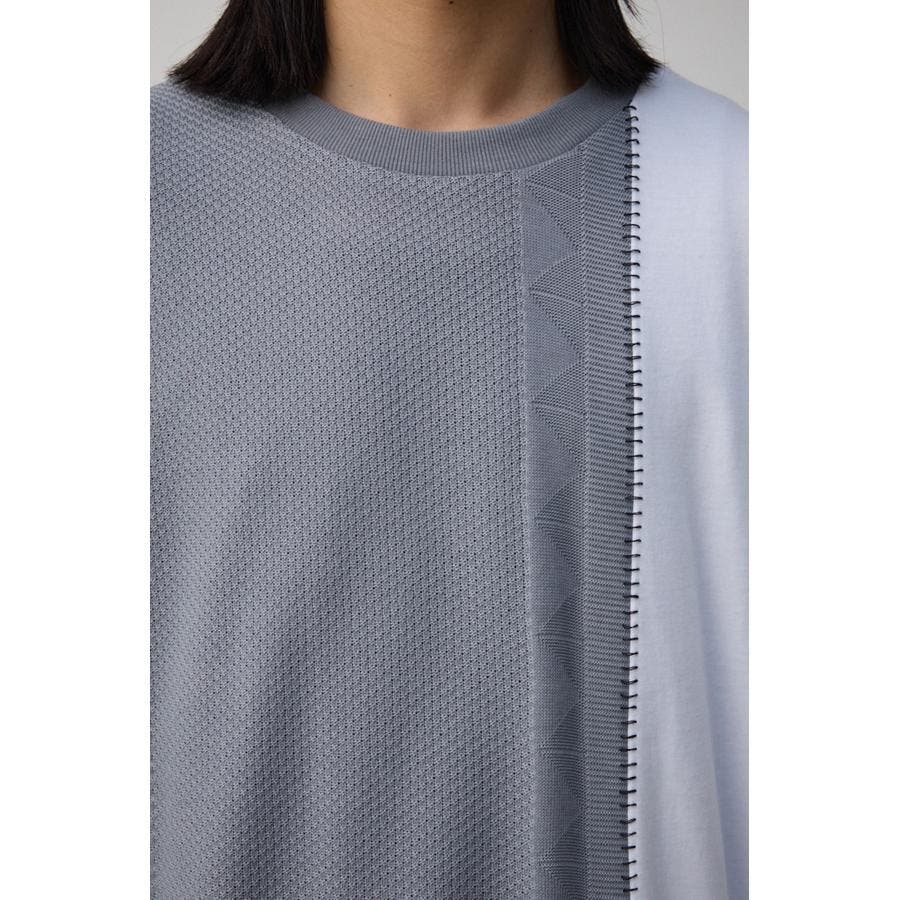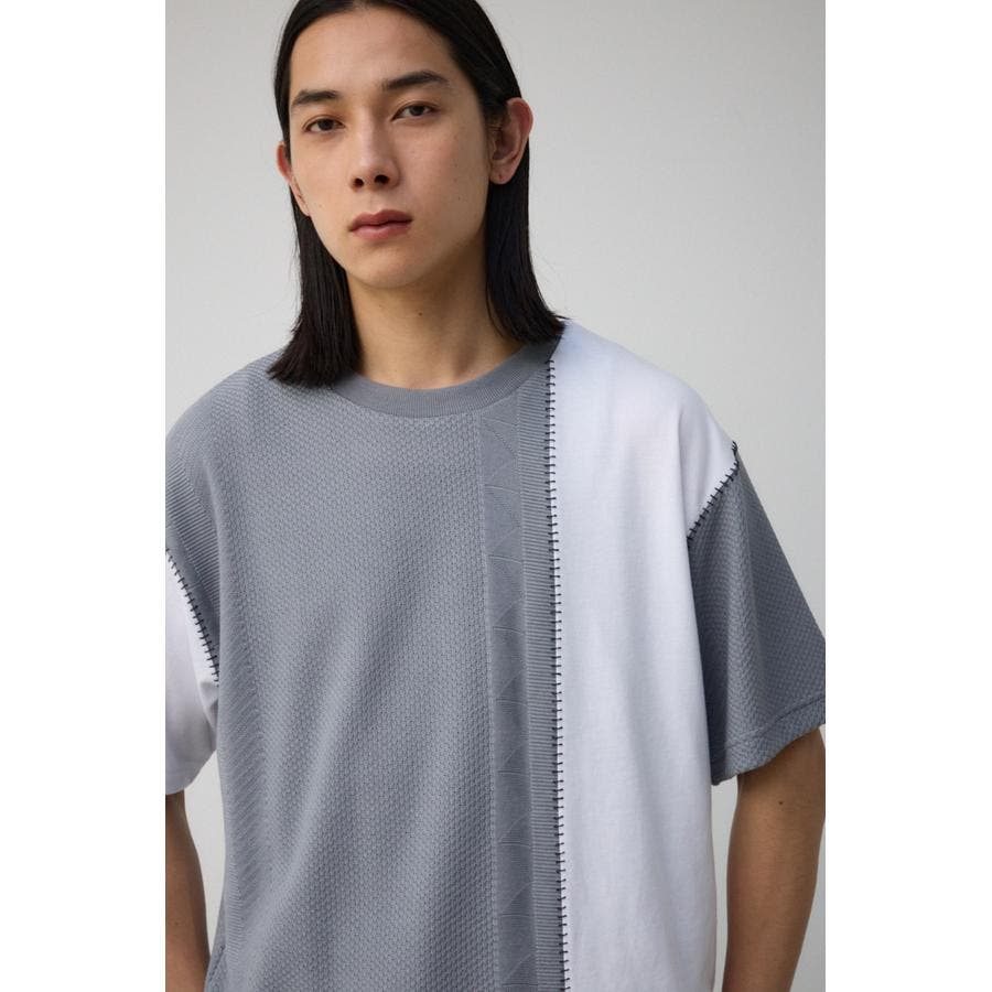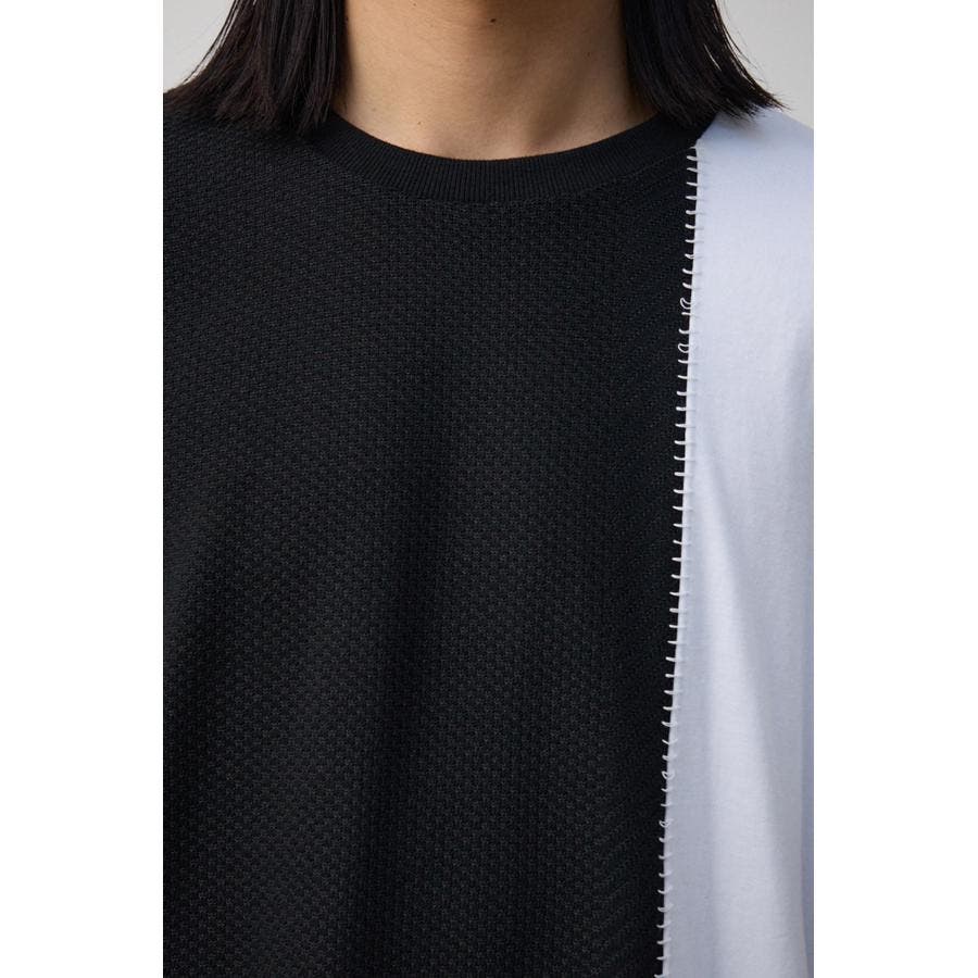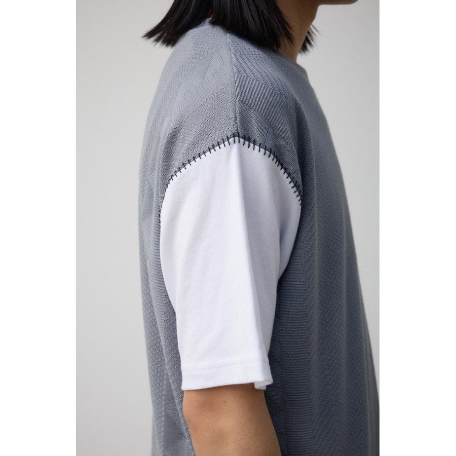 ・ニットとカットソーの異素材切り替えになっているデザイントップス。