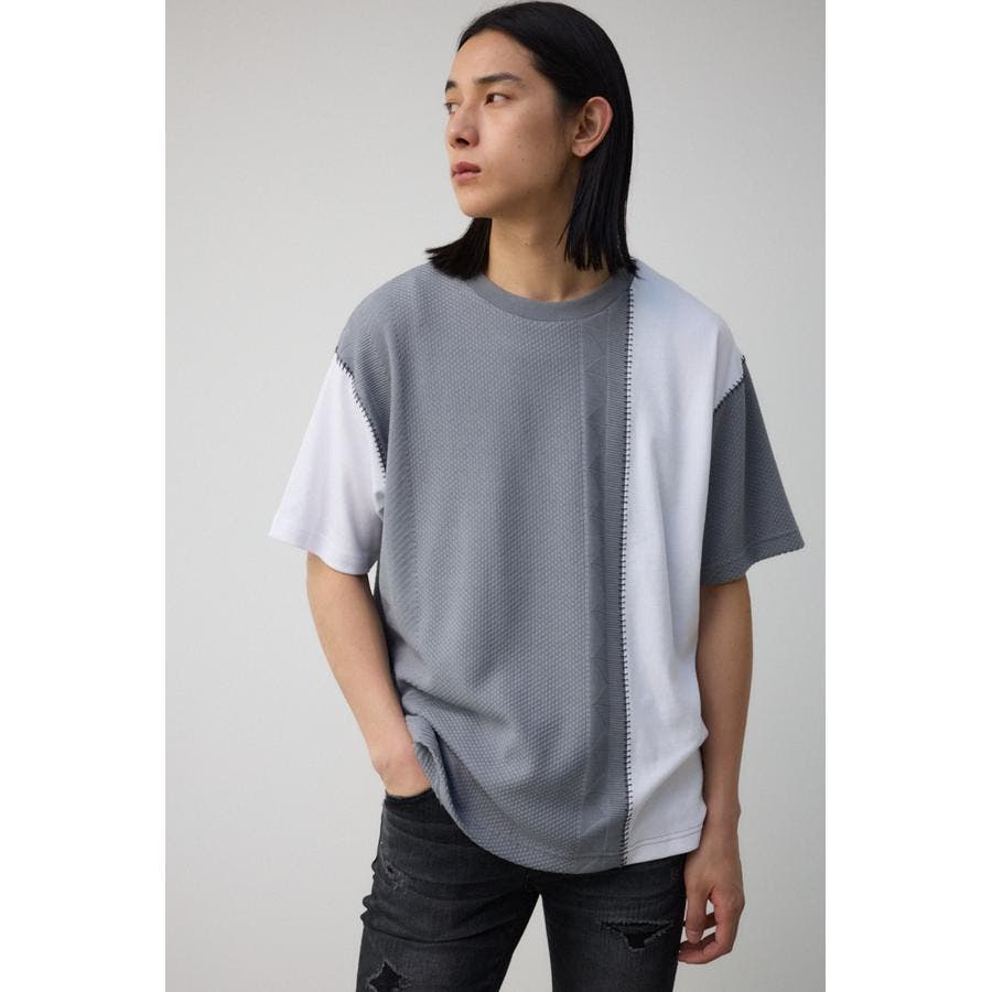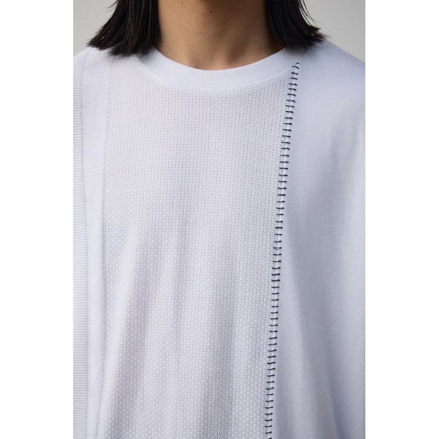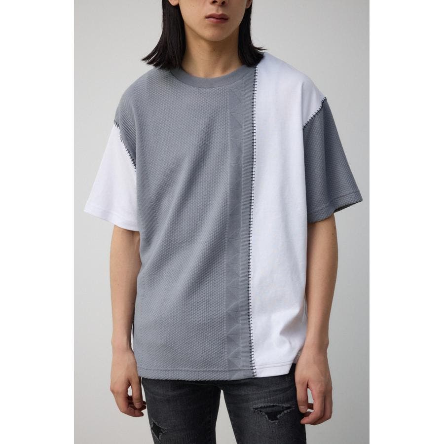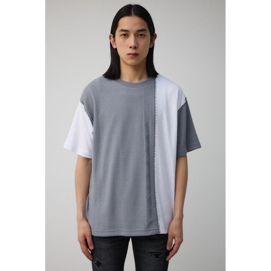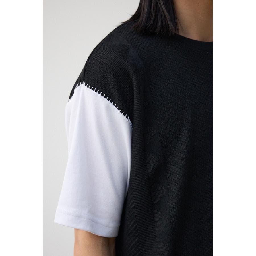 ・ニットとカットソーの異素材切り替えになっているデザイントップス。