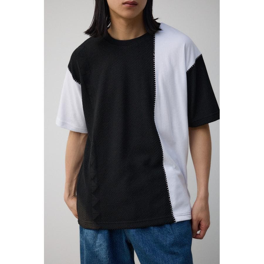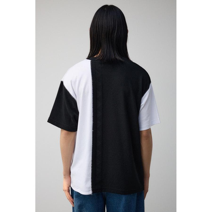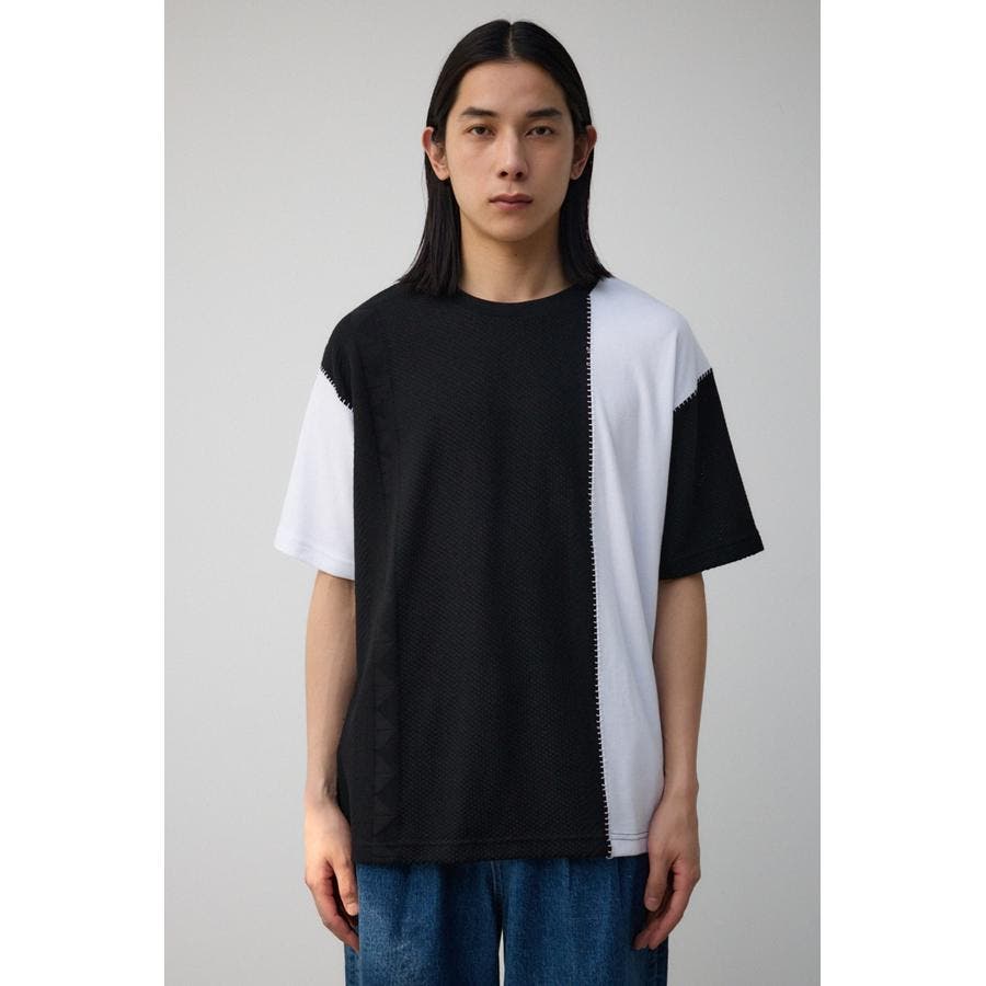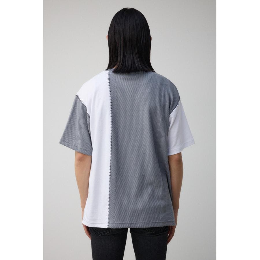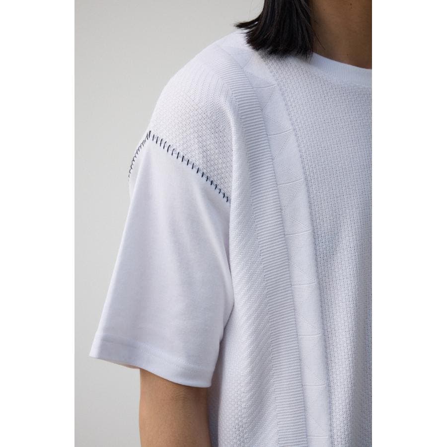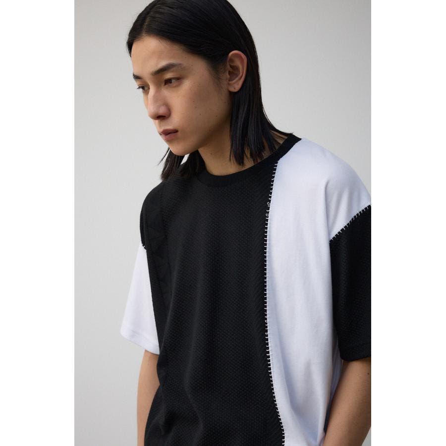 ・ニットとカットソーの異素材切り替えになっているデザイントップス。