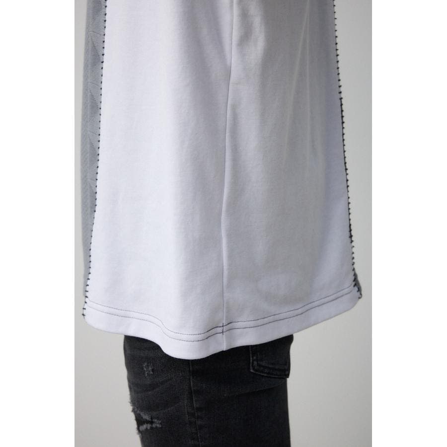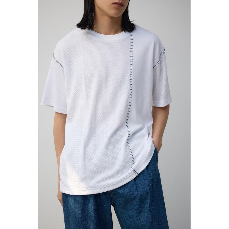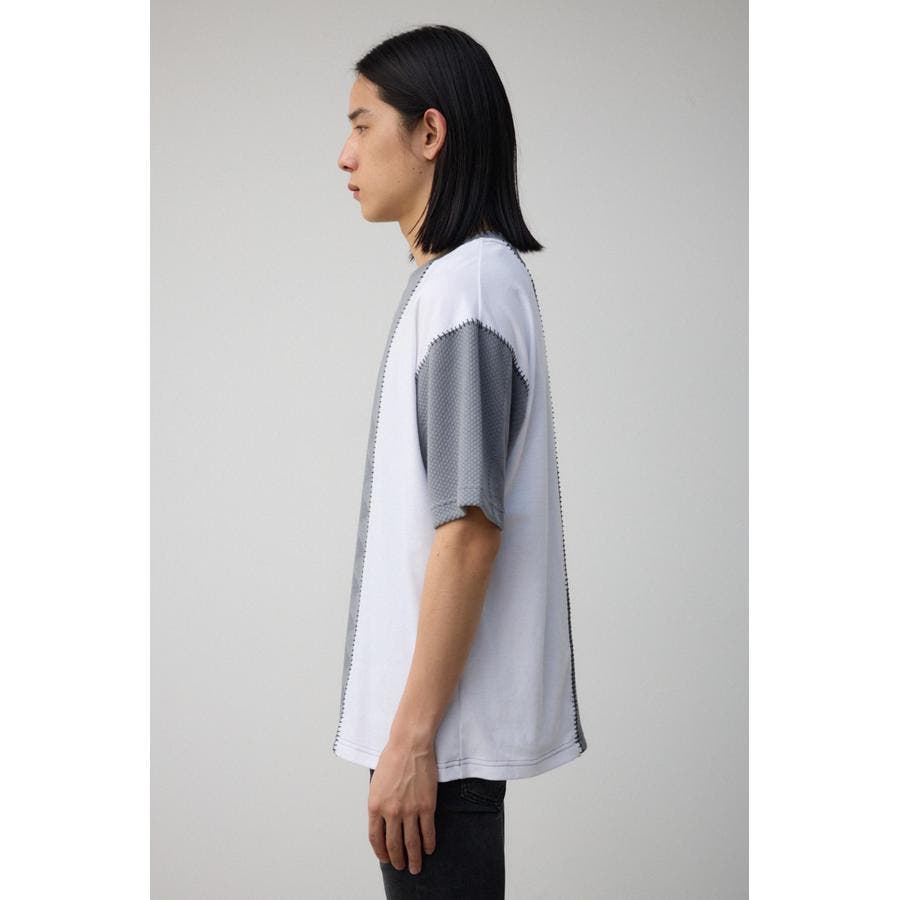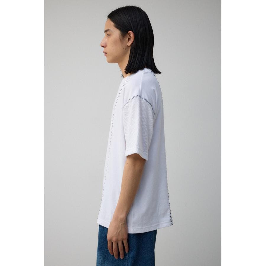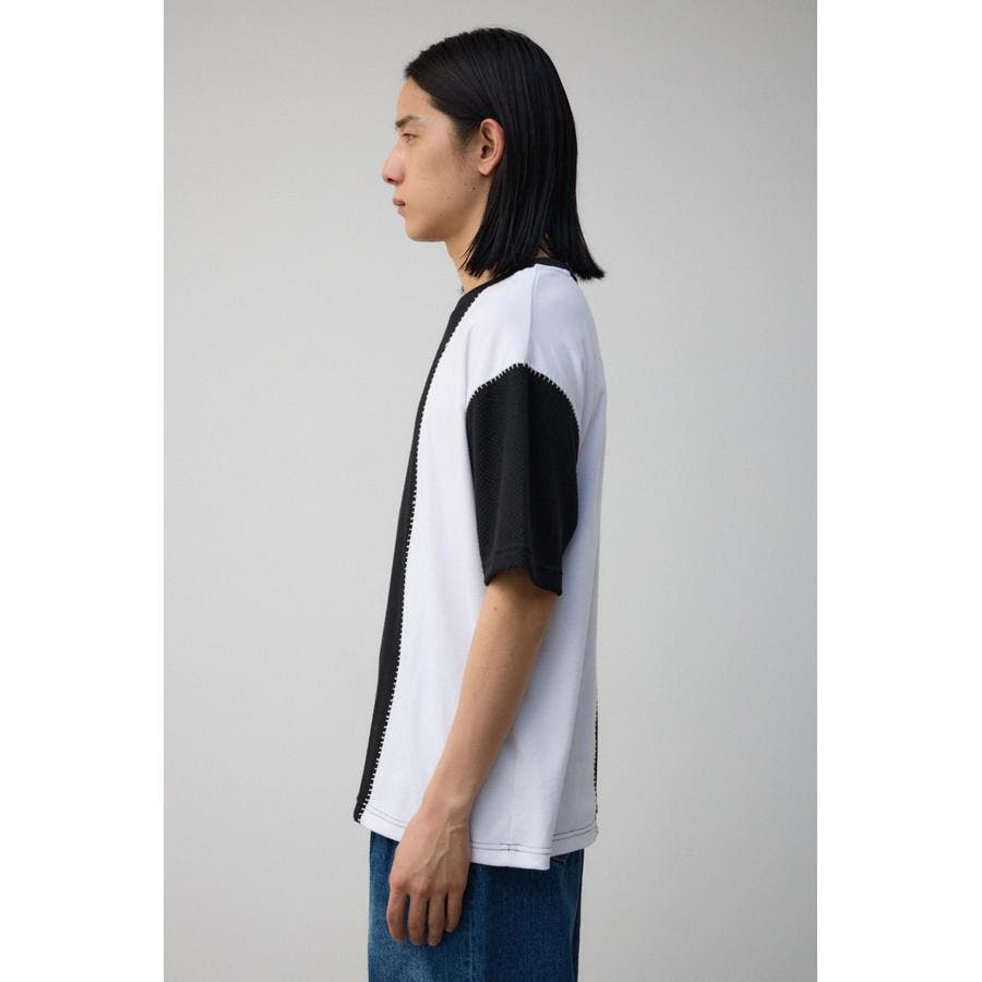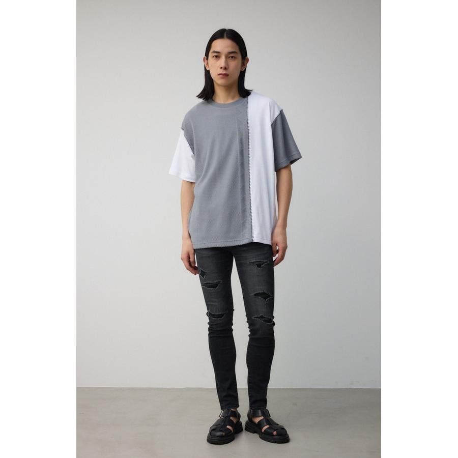 ・ニットとカットソーの異素材切り替えになっているデザイントップス。