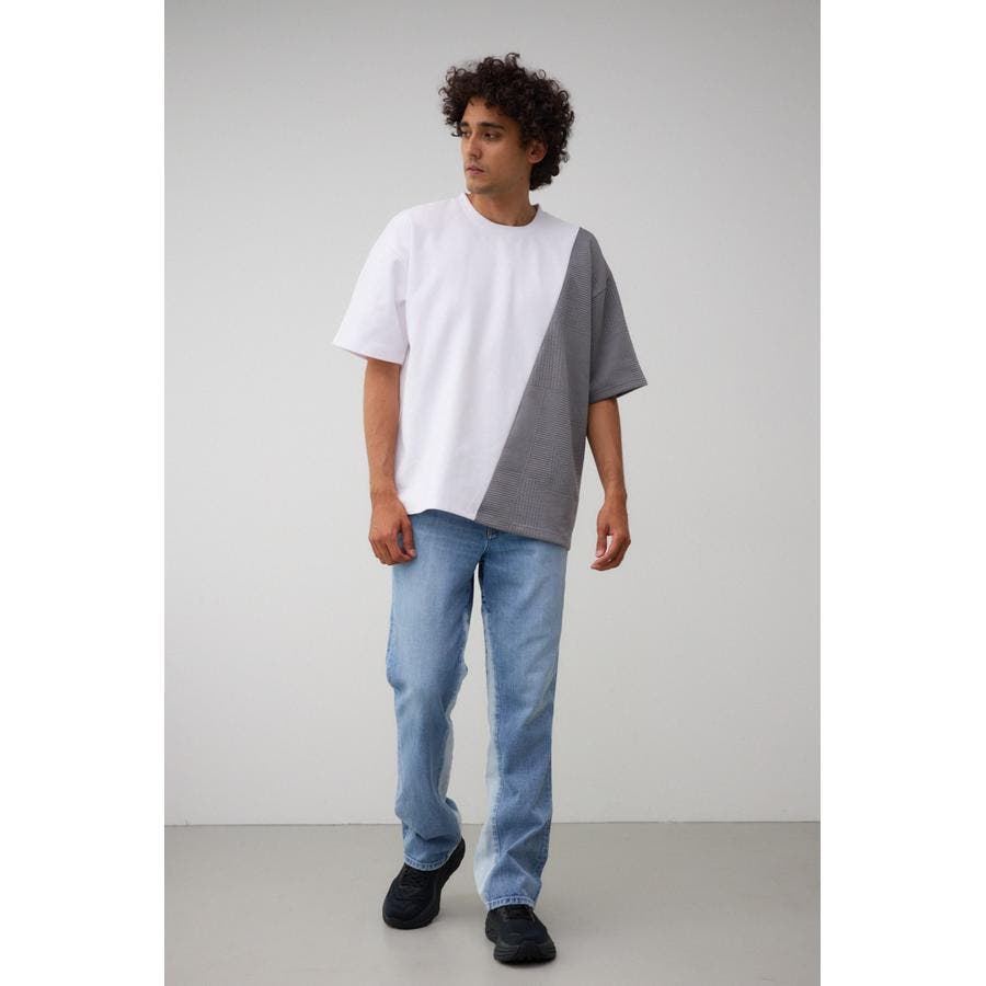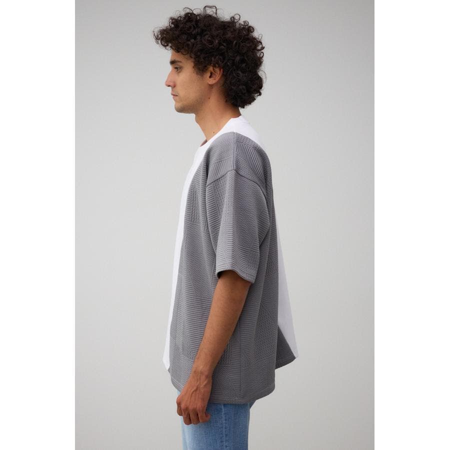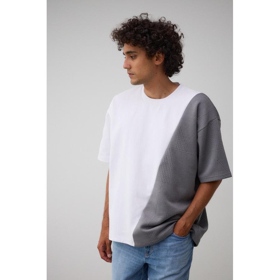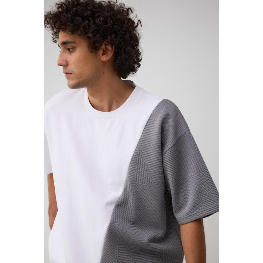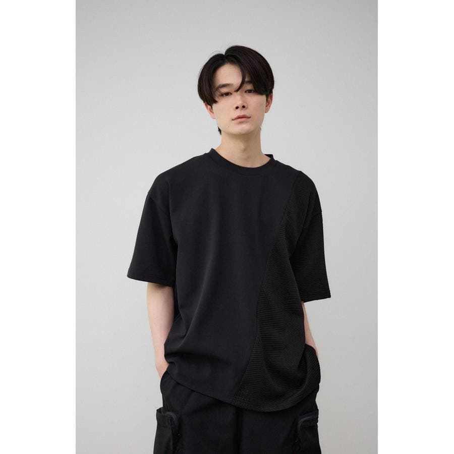 ■商品(デザイン)ポイント:左右で異素材切り替えになっているトップス。