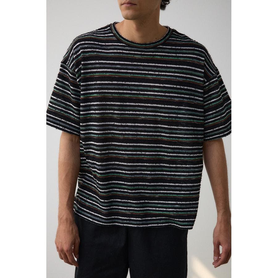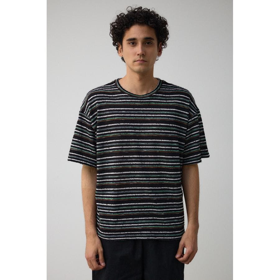 ■商品(デザイン)ポイント:表面に立体感のあるボーダー柄を施したトップス。