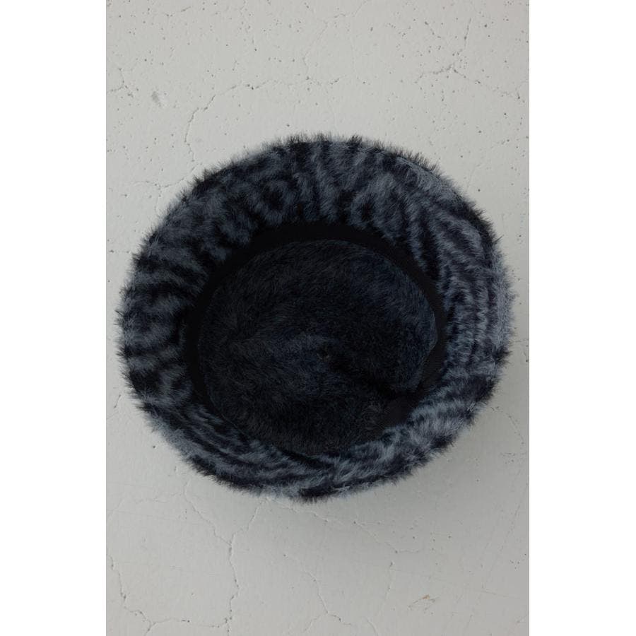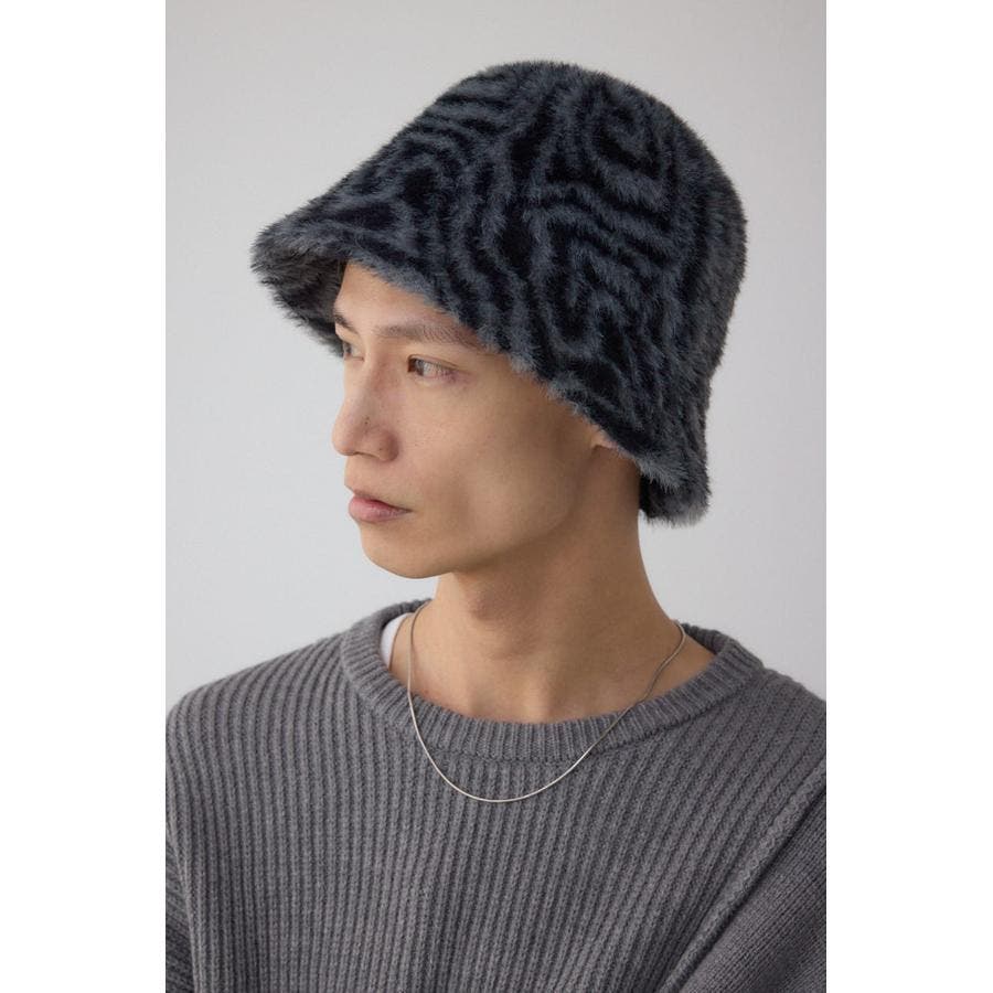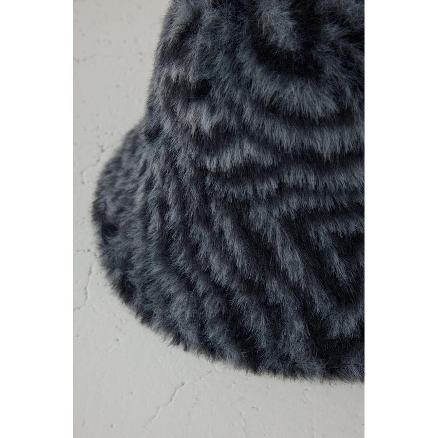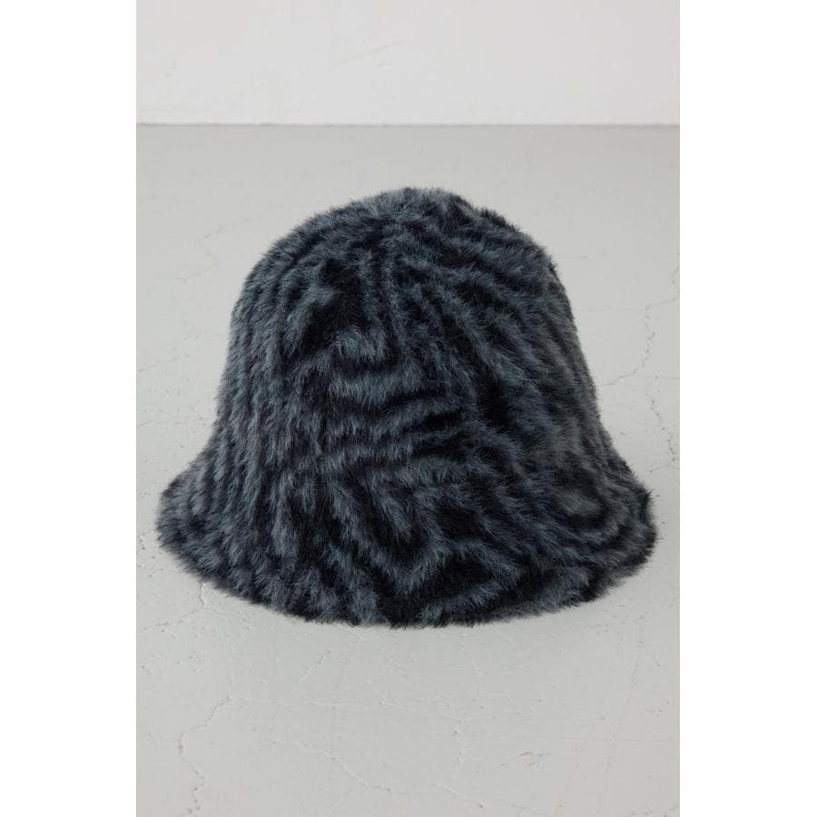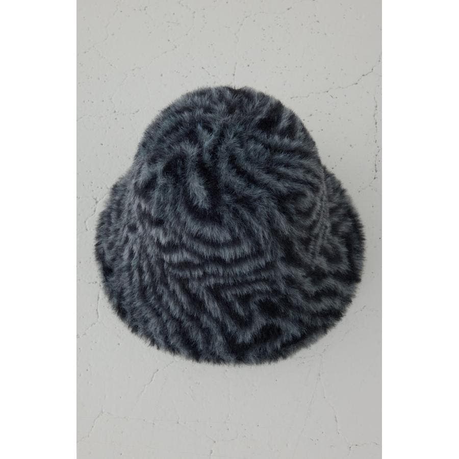 ゼブラの総柄が目をひくシャギー素材のバケットハットです。