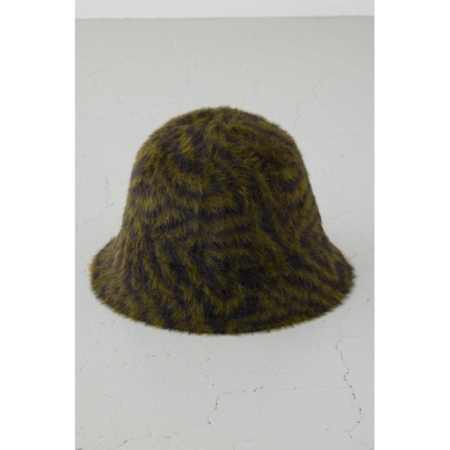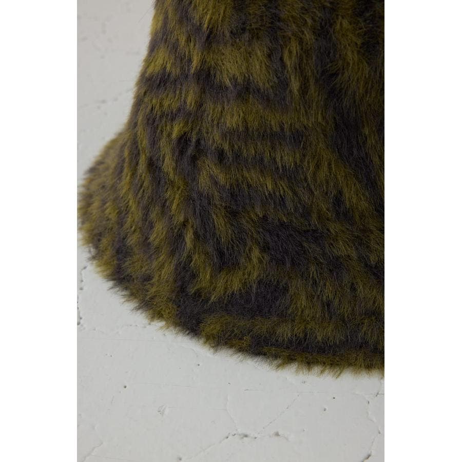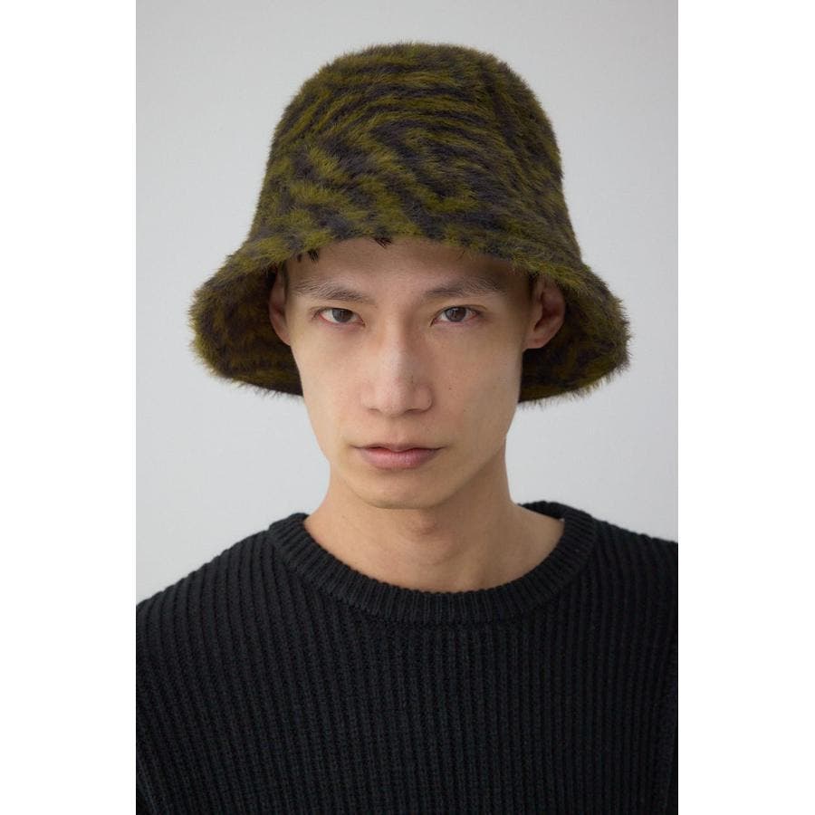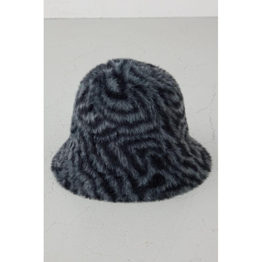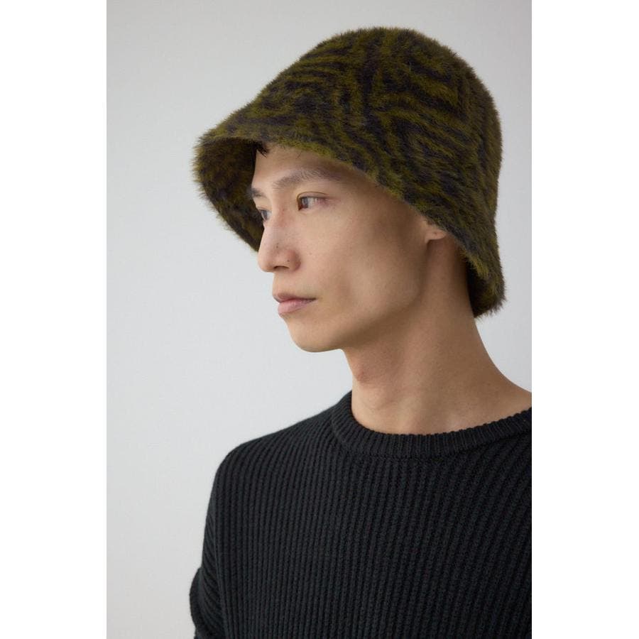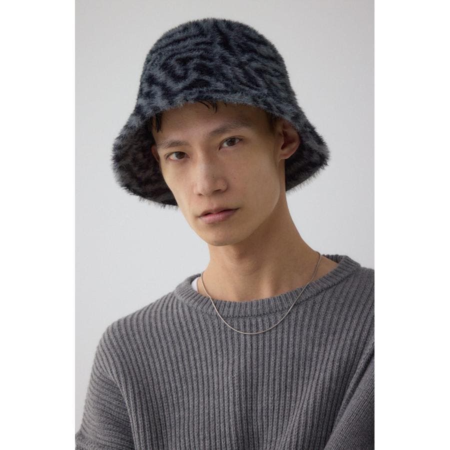 ゼブラの総柄が目をひくシャギー素材のバケットハットです。