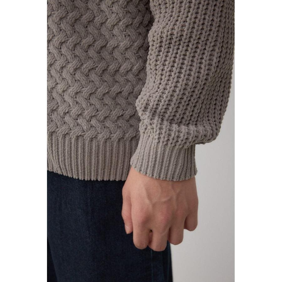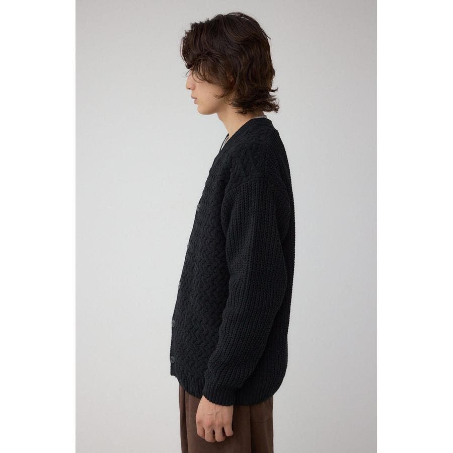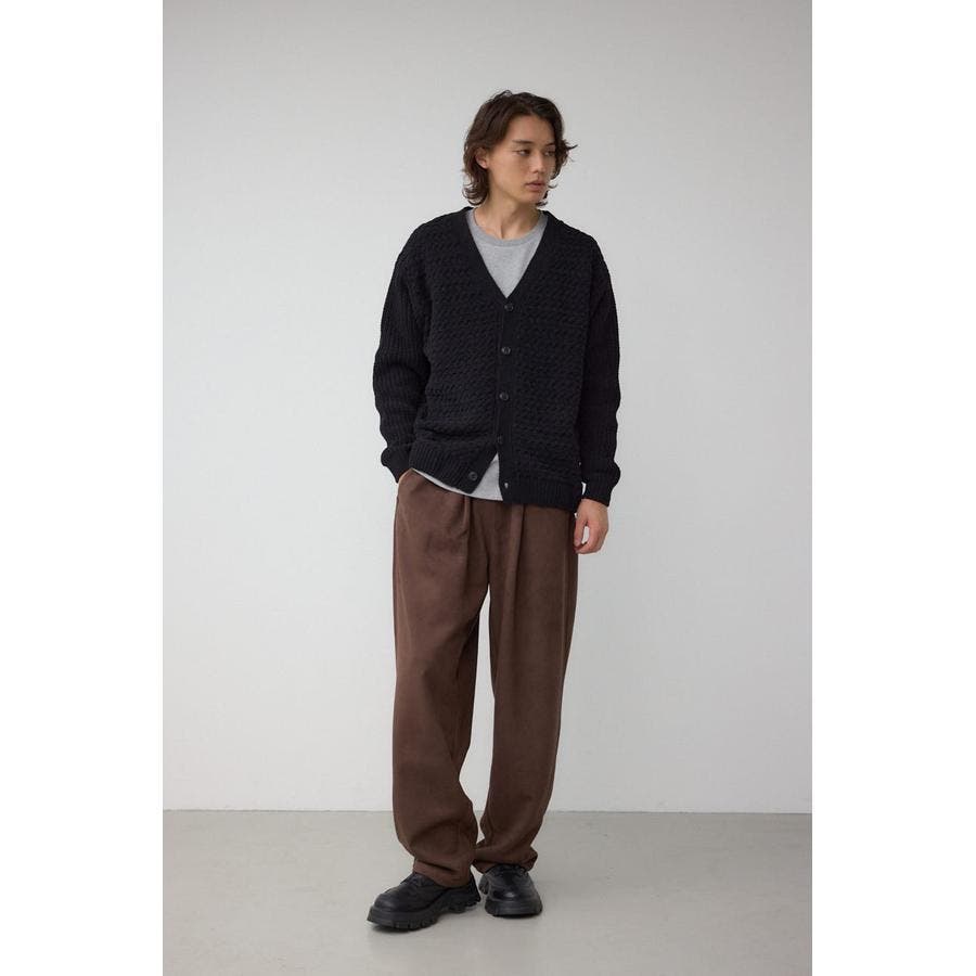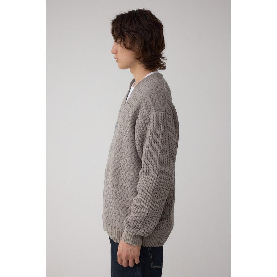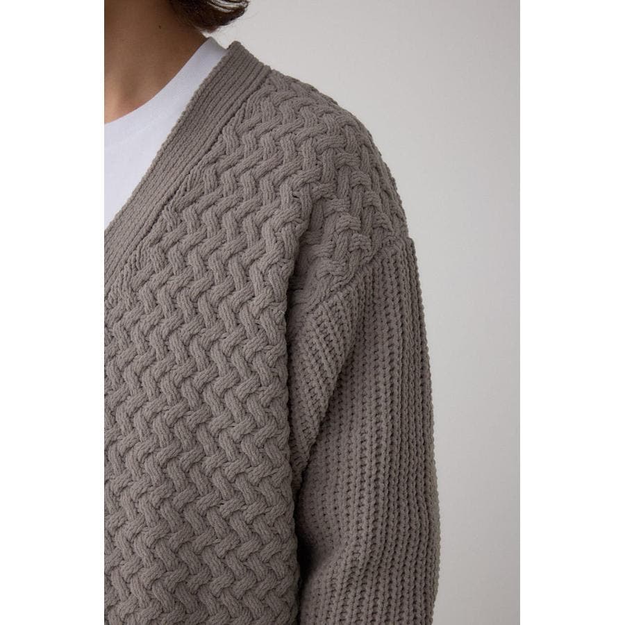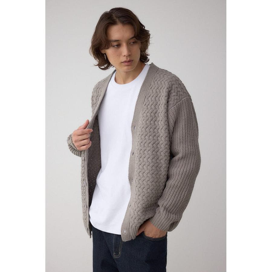 バスケット編みの立体感とマットなモール糸が融合したメンズカーディガン。