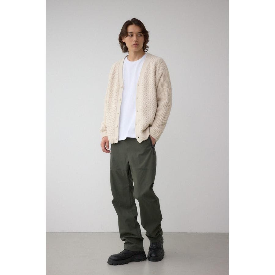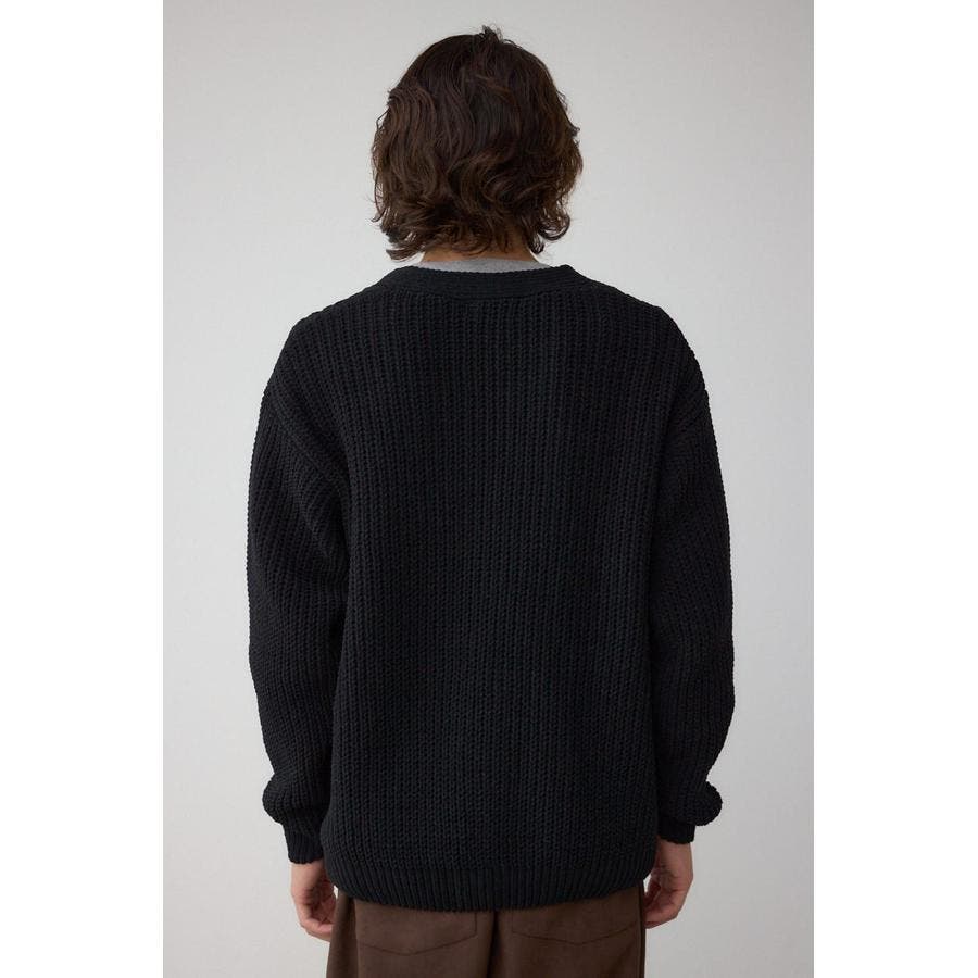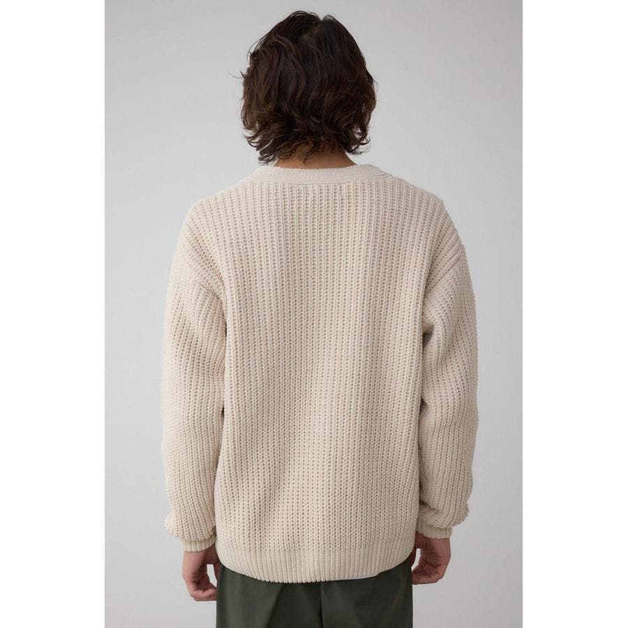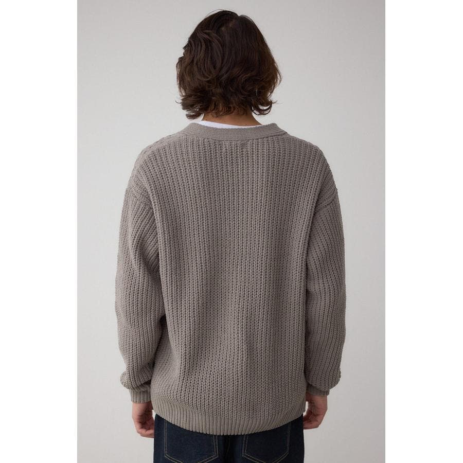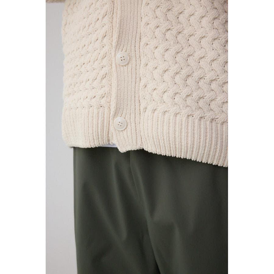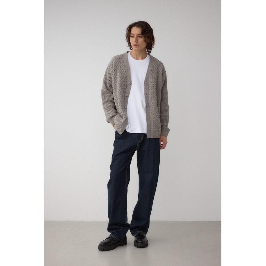 バスケット編みの立体感とマットなモール糸が融合したメンズカーディガン。