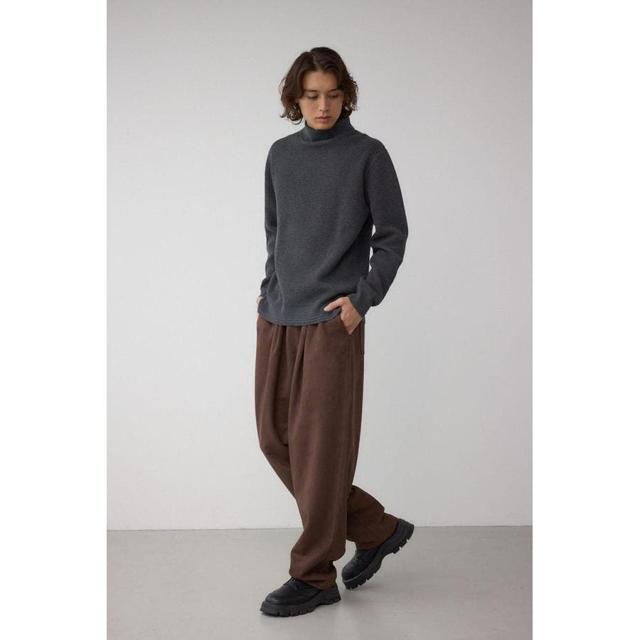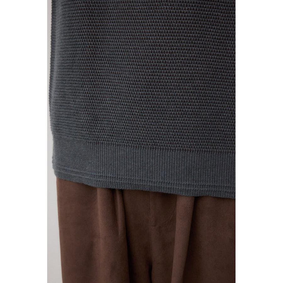 詰まったネックで防寒性が高く、ミニマルながら編地の表情がポイントになる一着。
