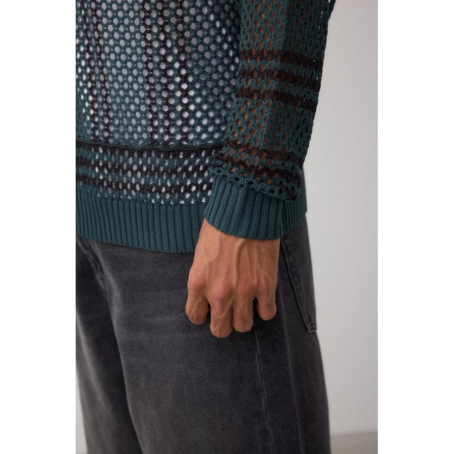 メッシュの透かし編地ですので、引っ掛かりやすい編地になります。取り扱いは丁寧に、十分にご注意ください。