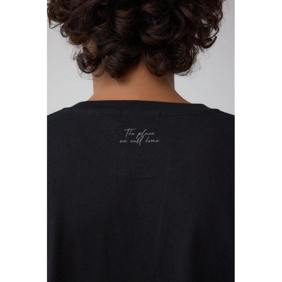 モノクロで大人見えするプリントが特徴的なTシャツです。