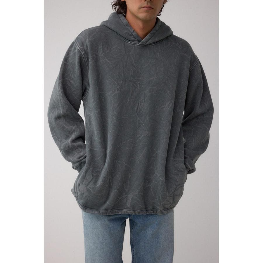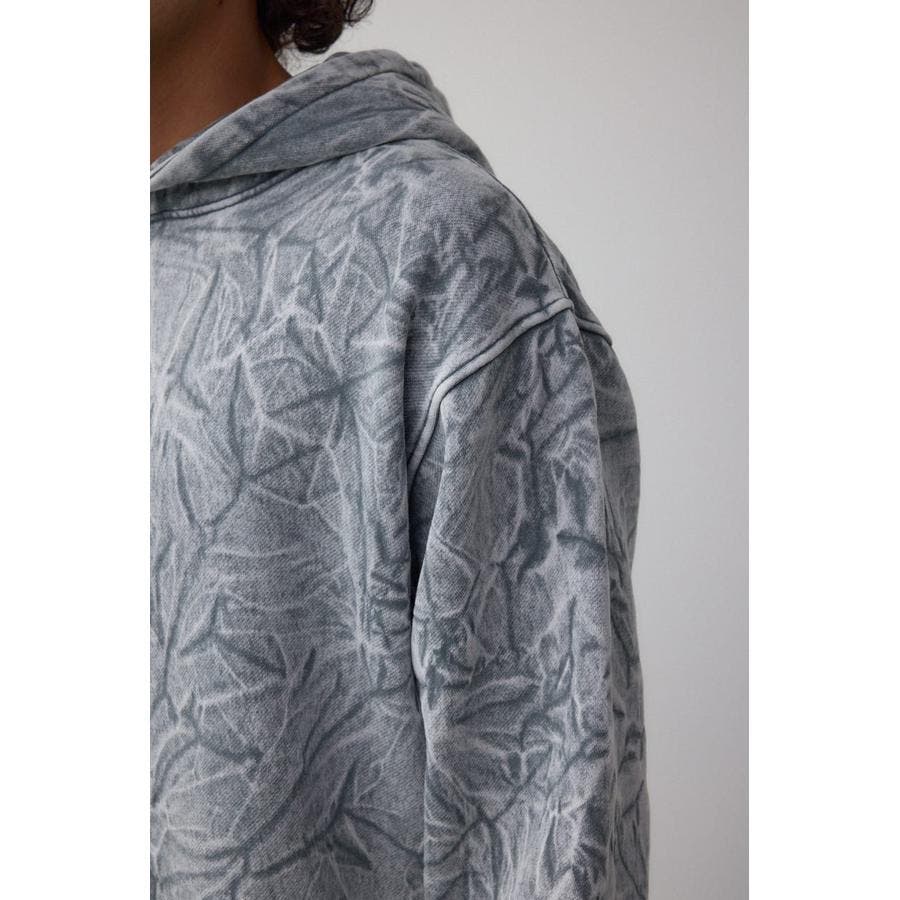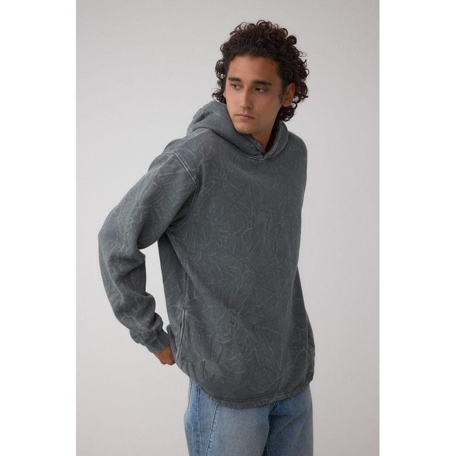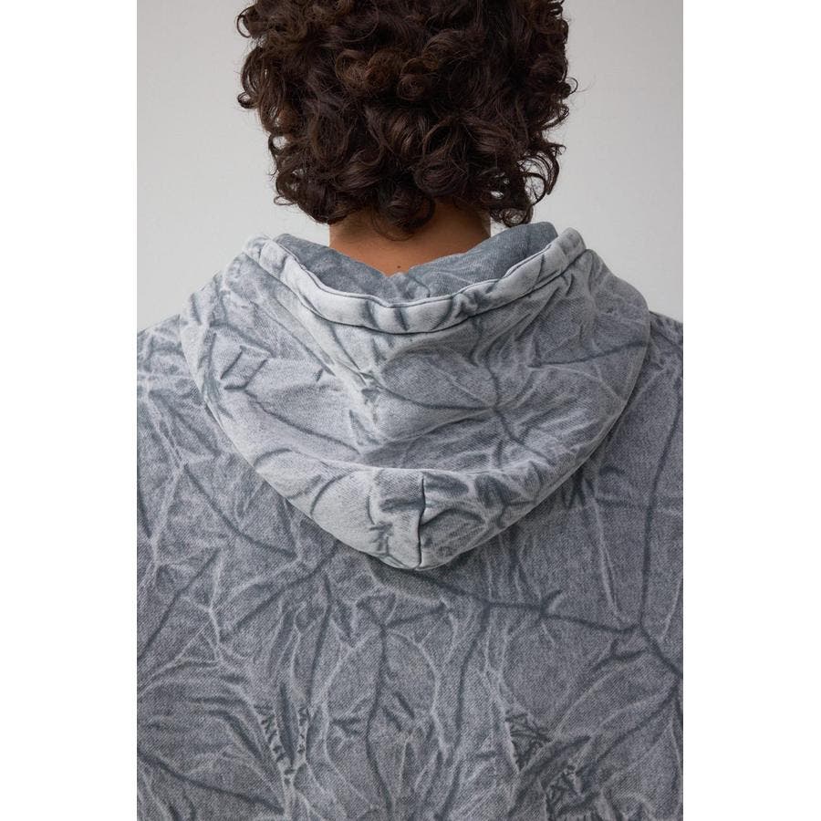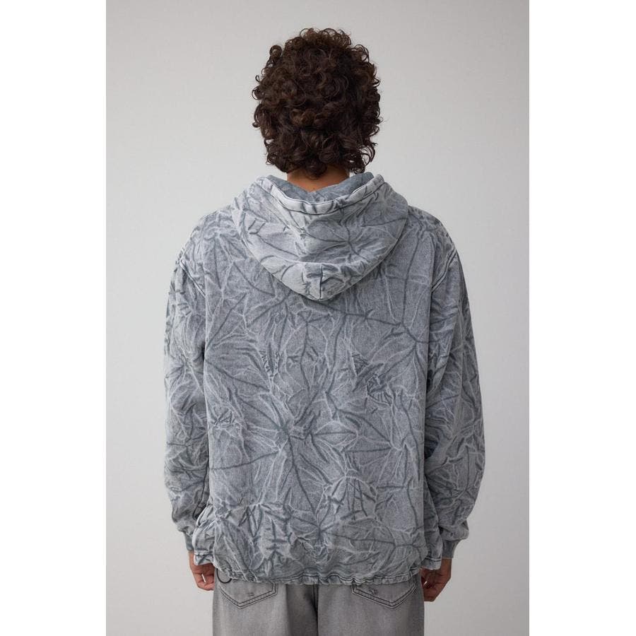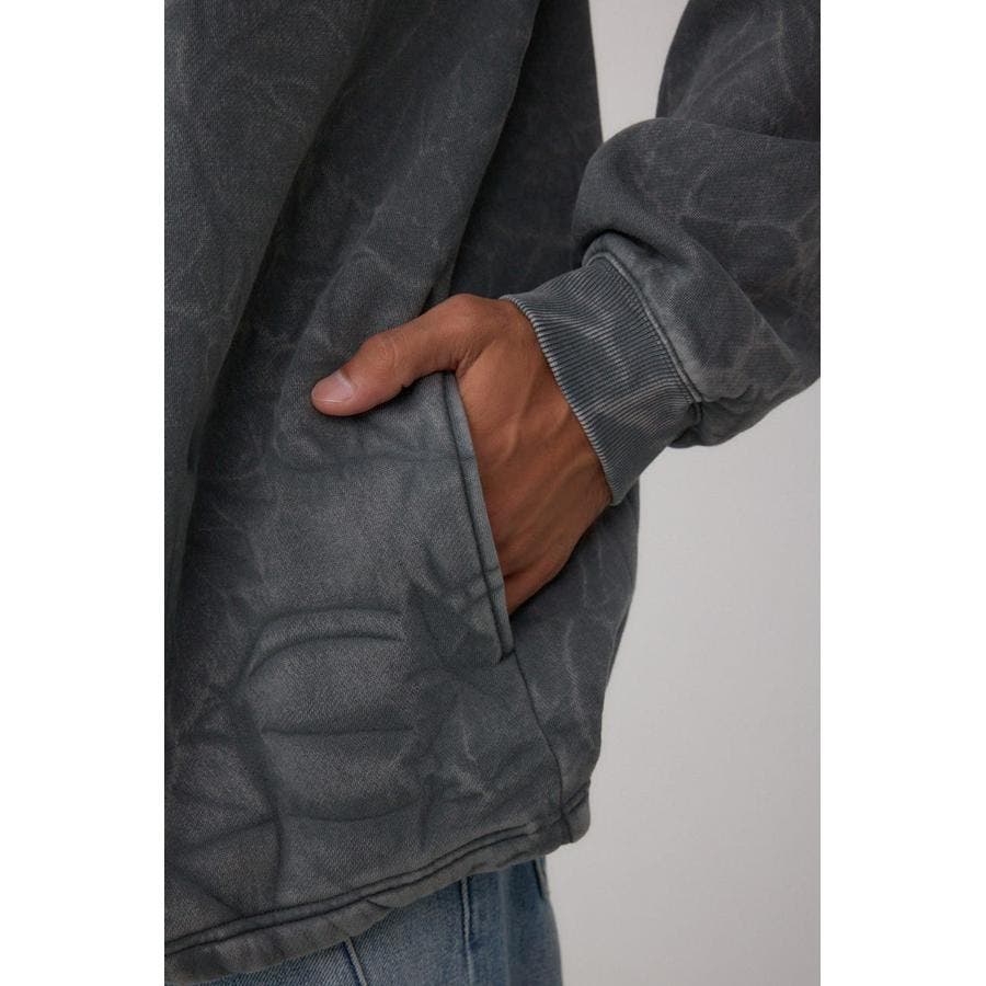 シャドー柄が表面に立体的に浮かぶフーディー。