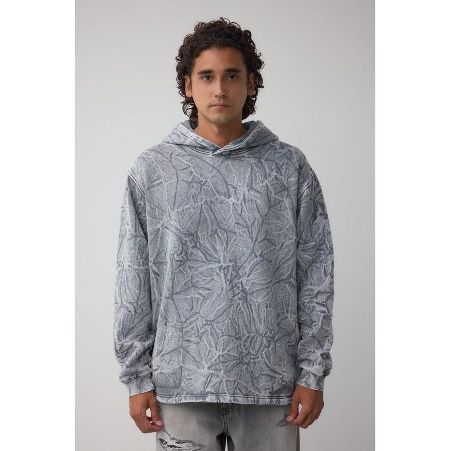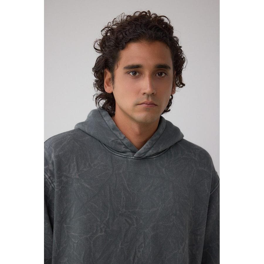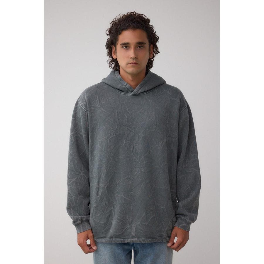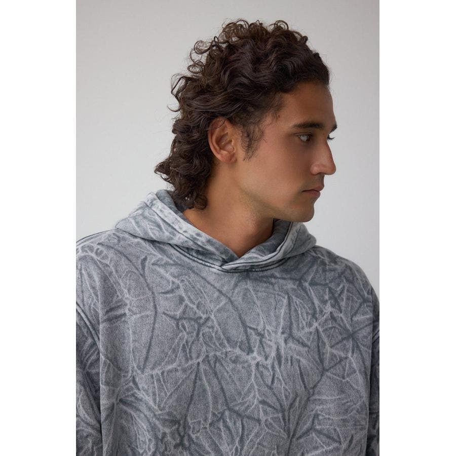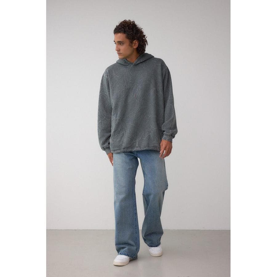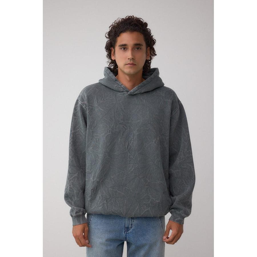 シャドー柄が表面に立体的に浮かぶフーディー。