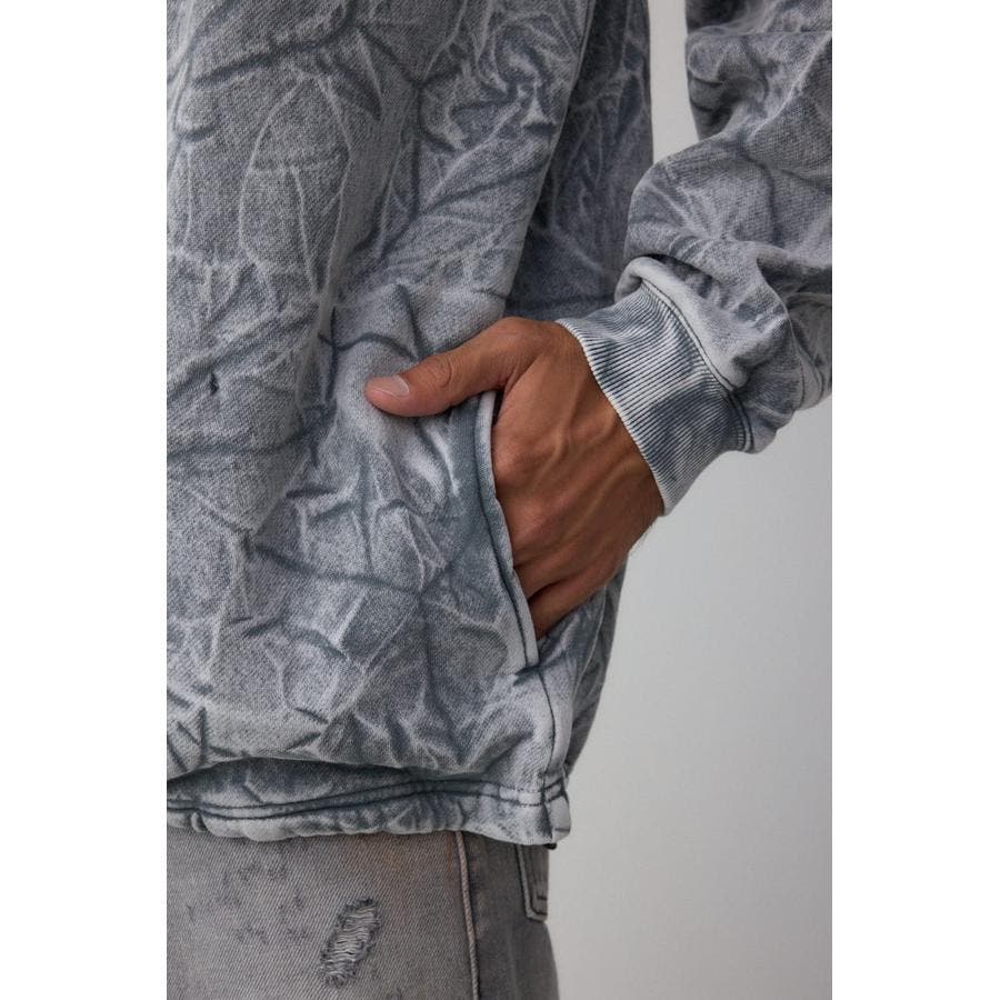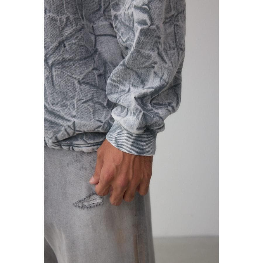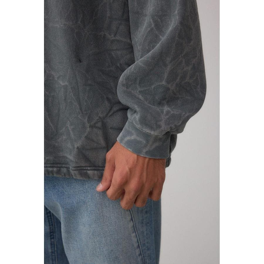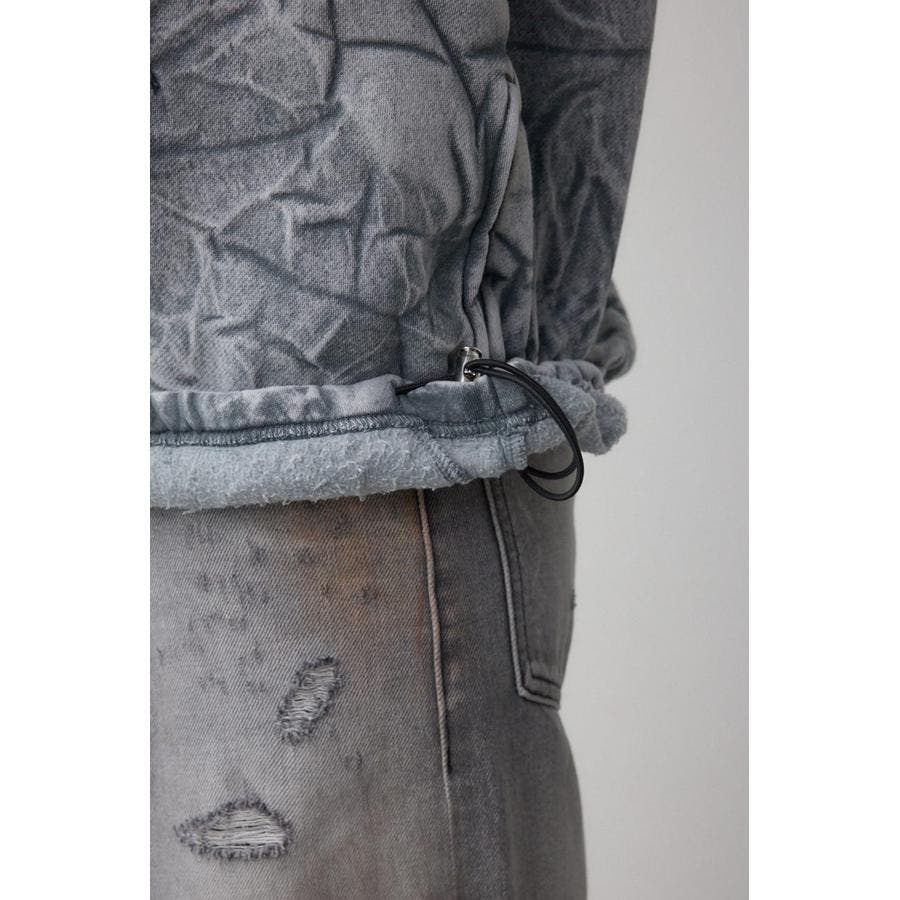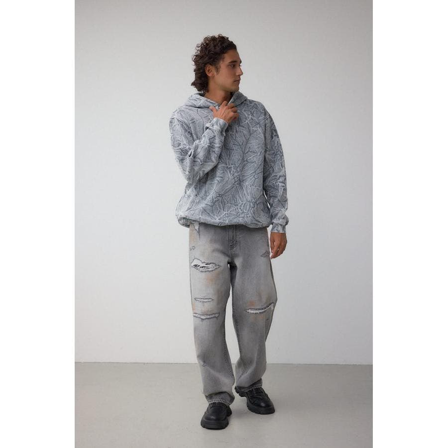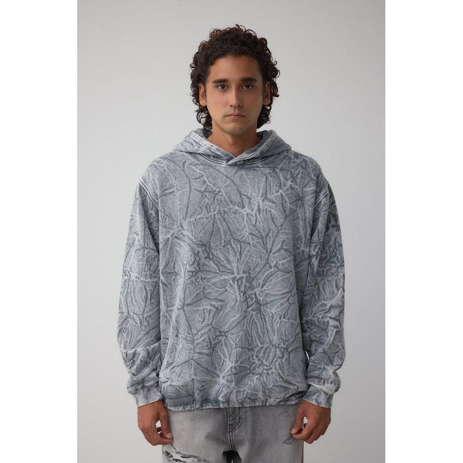 シャドー柄が表面に立体的に浮かぶフーディー。