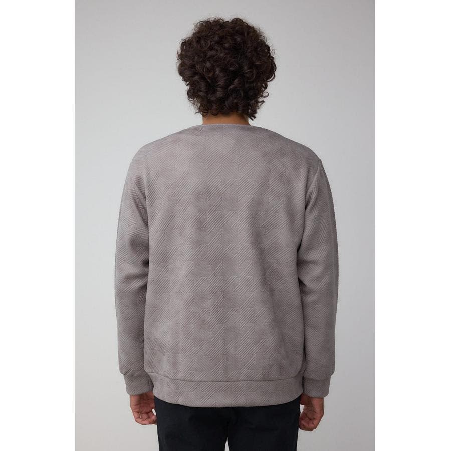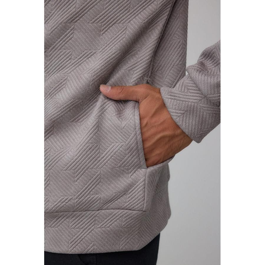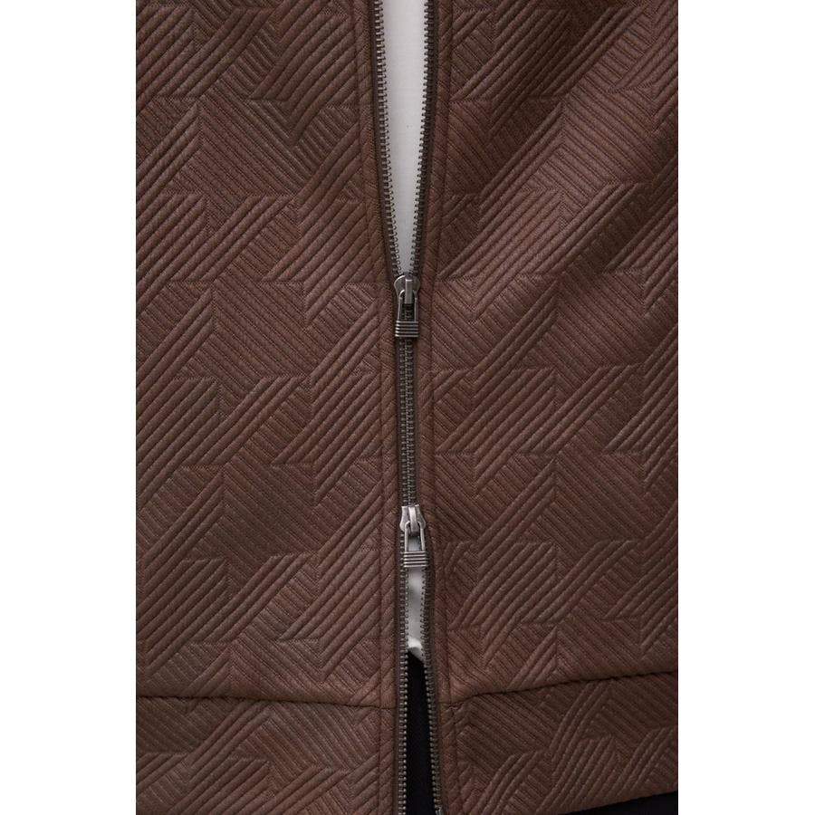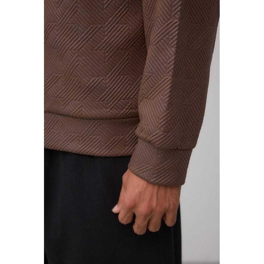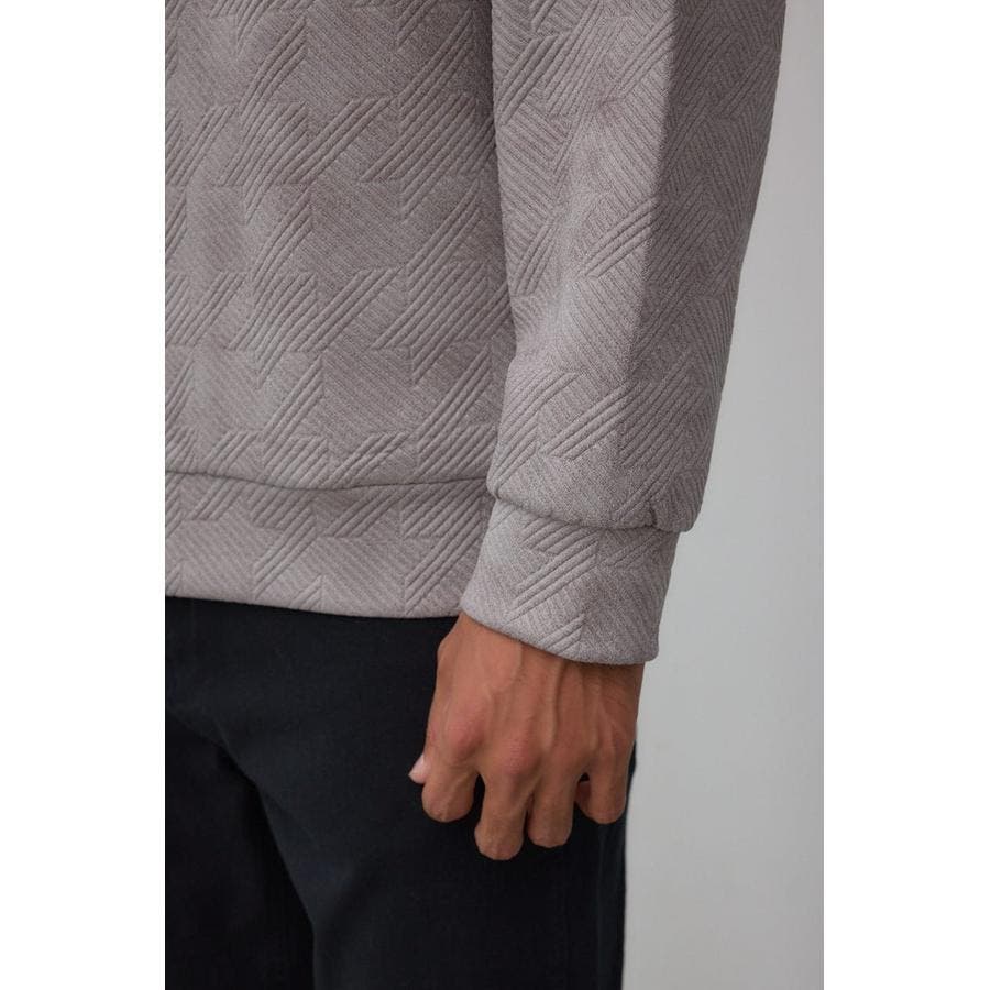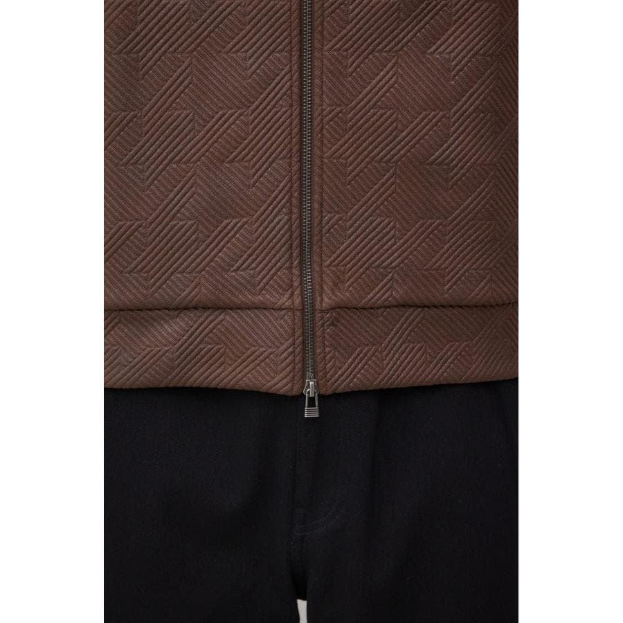 幾何学柄のふくれジャガード生地に、総柄プリント(生地コーティング)を施して、合成皮革のように見える生地です。